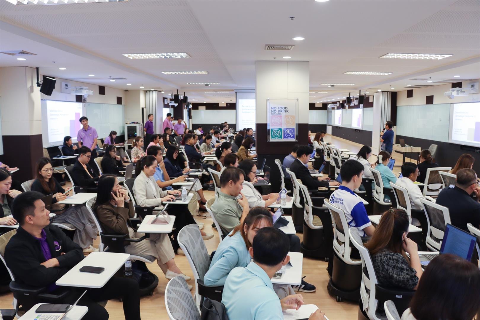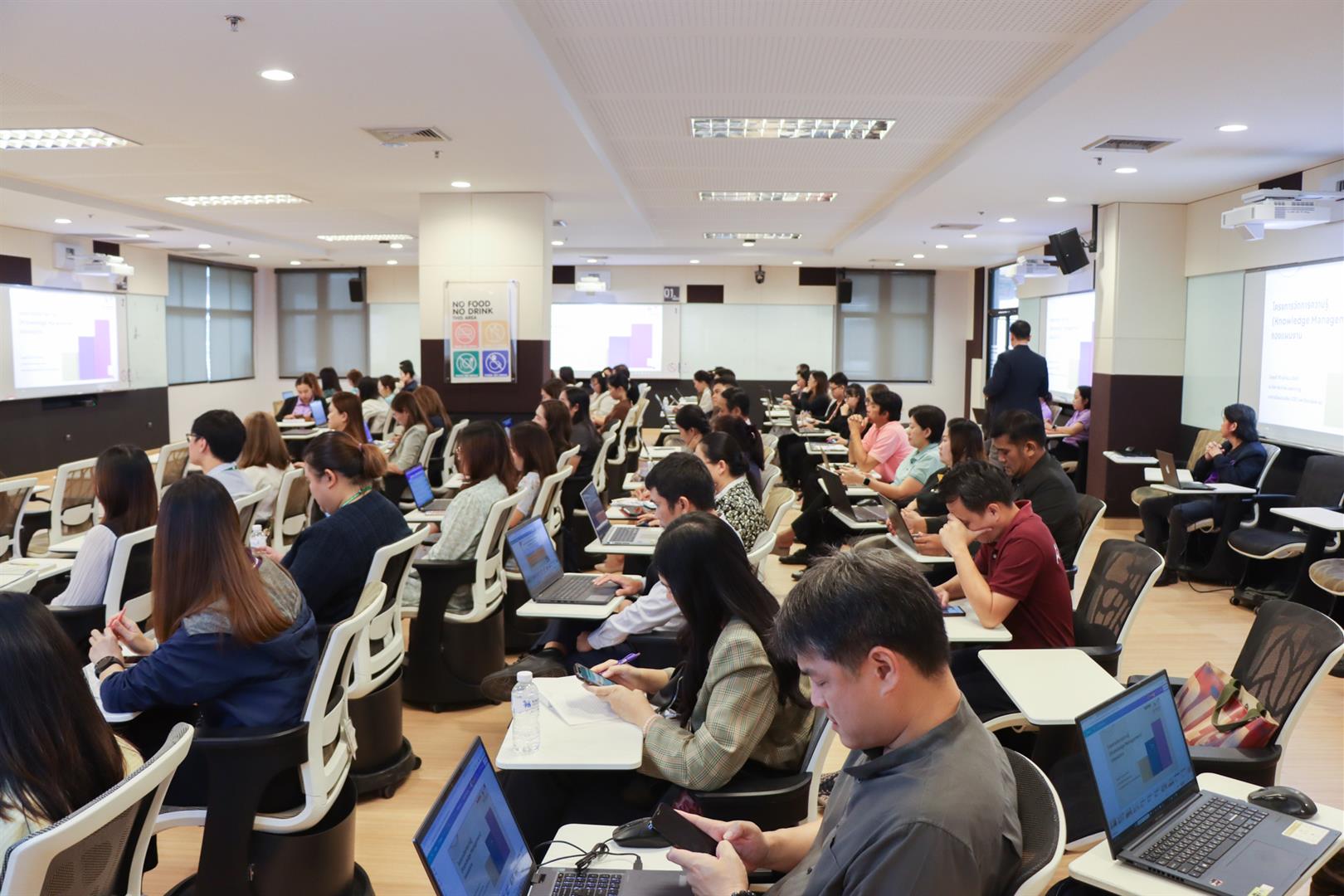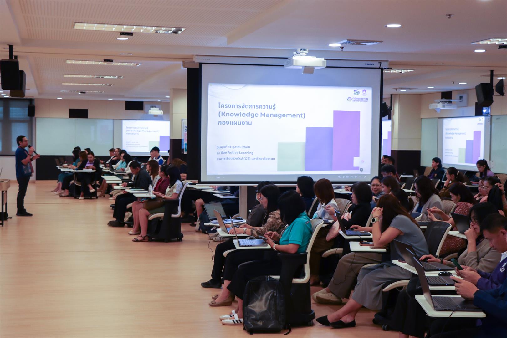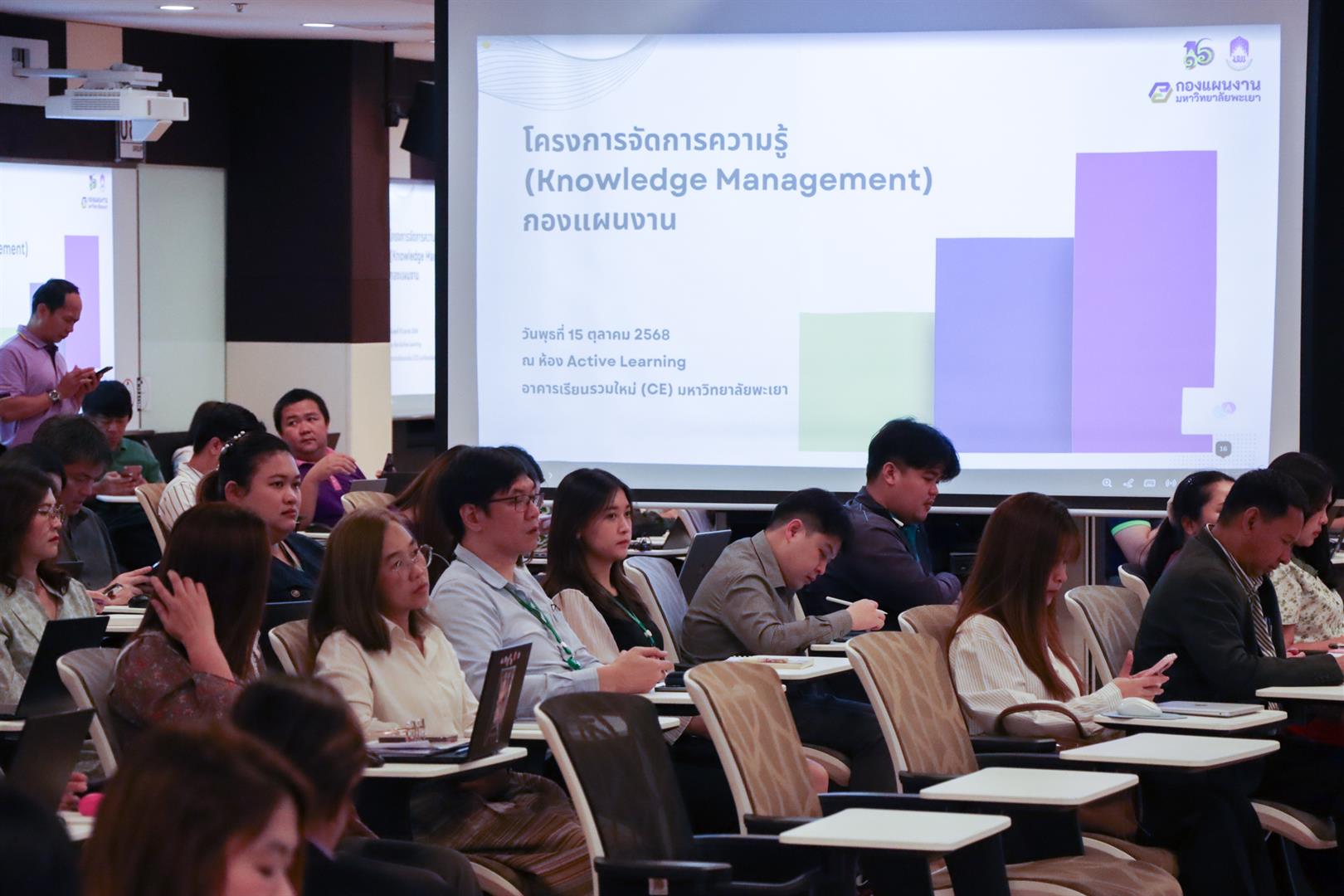 โครงการจัดการความรู้ (Knowledge Management) ในครั้งนี้มีผู้เข้าร่วมจำนวนทั้งสิ้น 140 คน ประกอบด้วย รองคณบดีด้านแผนงาน หัวหน้าสำนักงานและผู้ปฏิบัติงานด้านแผน จัดขึ้น ณ ห้อง active learning Classroom อาคาร เรียนรวมใหม่ (CE) มหาวิทยาลัยพะเยา