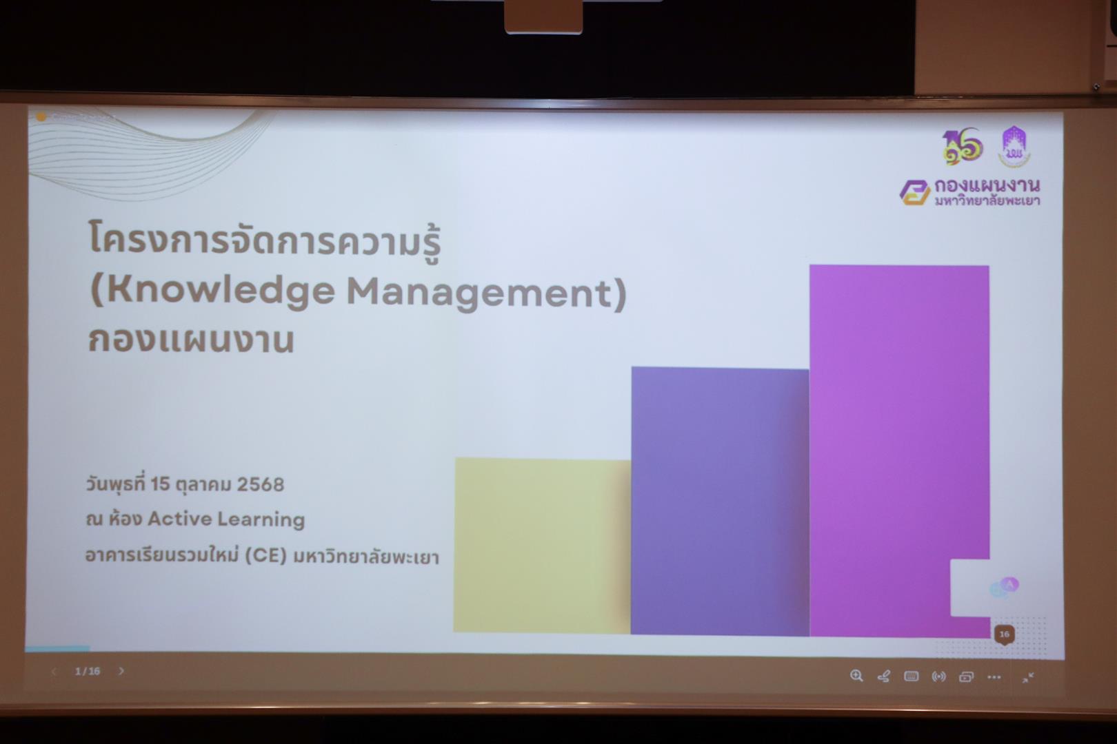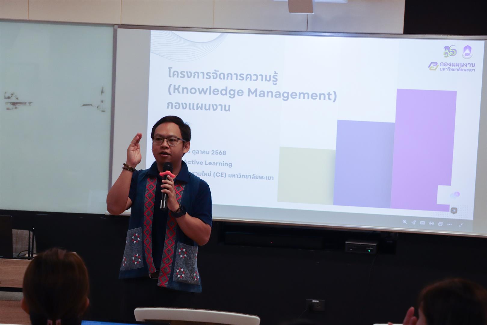 วันที่ 15 ตุลาคม 2568 เวลา 8.30 น. - 12.00 น. กองแผนงานจัดโครงการจัดการความรู้ (Knowledge Management) กองแผนงาน ครั้งที่ 1 ประจำปีงบประมาณ พ.ศ. 2569 โดยมีวัตถุประสงค์เพื่อชี้แจงปฏิทินการปฏิบัติงานกองแผนงาน ประจำปีงบประมาณ พ.ศ. 2569 นโยบายและแนวทางการบริหารมหาวิทยาลัยพะเยา ประจำปีงบประมาณ พ.ศ. 2569 – 2573 การกำหนดตัวชี้วัดยุทธศาสตร์ของส่วนงานให้เชื่อมโยงกับยุทธศาสตร์มหาวิทยาลัยพะเยา กรอบการดำเนินงานคำของบประมาณเงินแผ่นดิน ประจำปีงบประมาณ พ.ศ. 2570 การพิจารณาส่วนงานที่มีแนวปฏิบัติที่ดี ประจำปีงบประมาณ พ.ศ. 2568 และกระบวนการอนุมัติแผนจัดซื้อ-จัดจ้าง