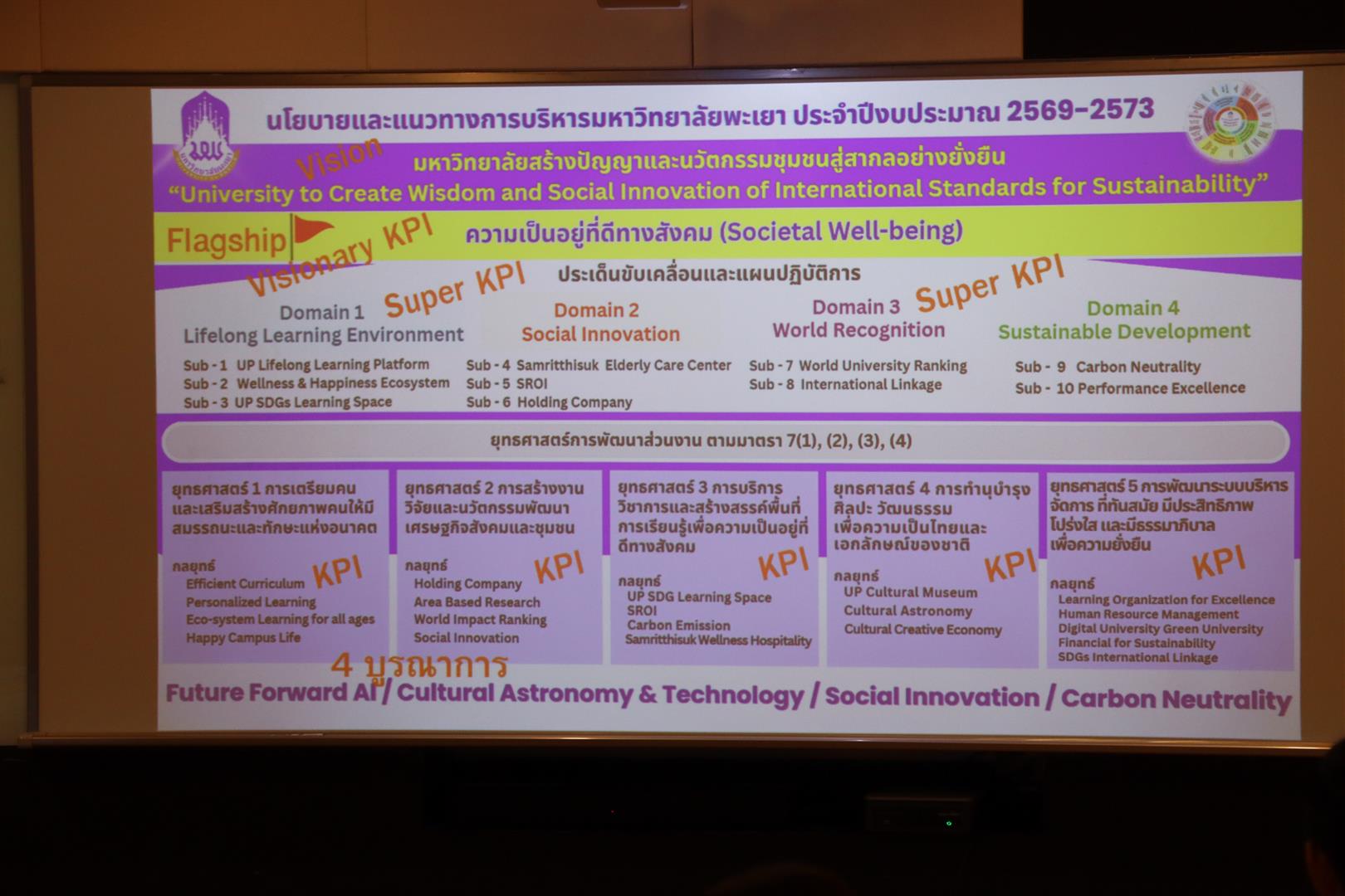 ชี้แจงโครงการในแผนปฏิบัติการประจำปีงบประมาณ พ.ศ. 2569 การสร้างตัวชี้วัดยุทธศาสตร์ส่วนงาน เชื่อมโยงกับยุทธศาสตร์มหาวิทยาลัยพะเยา