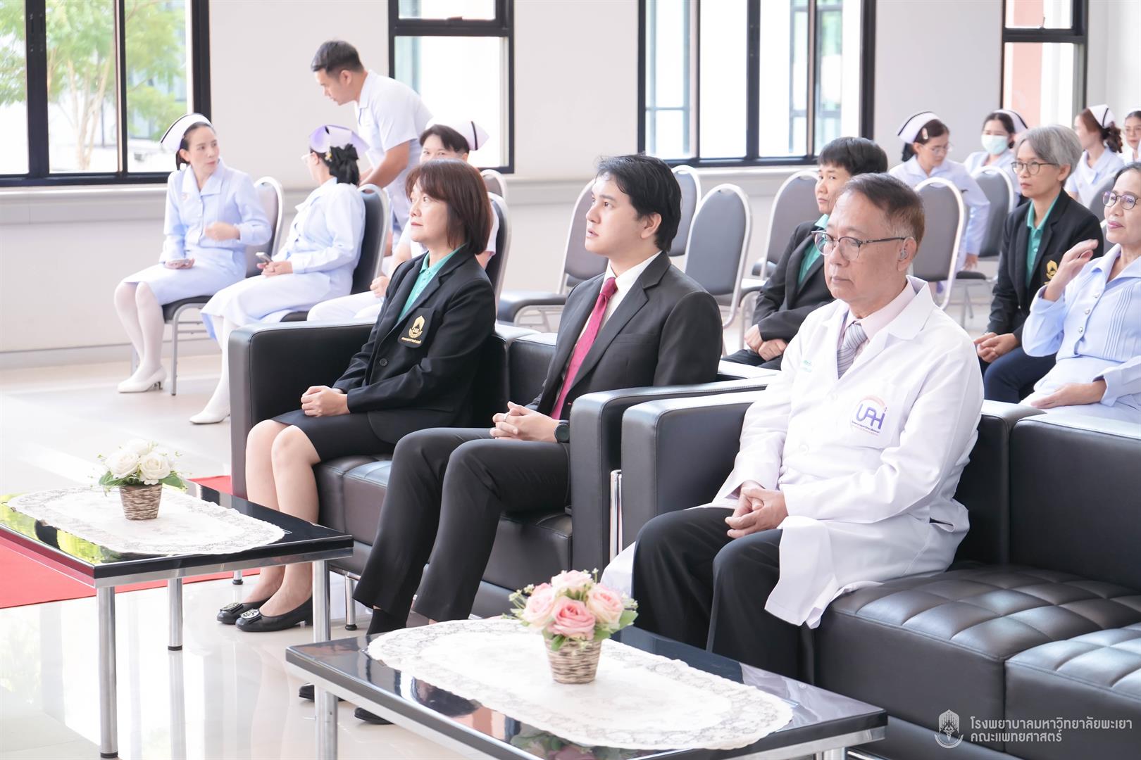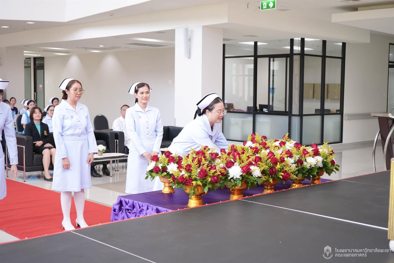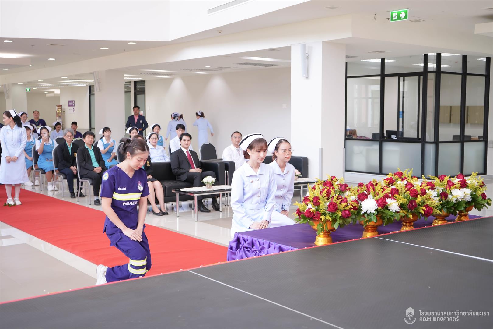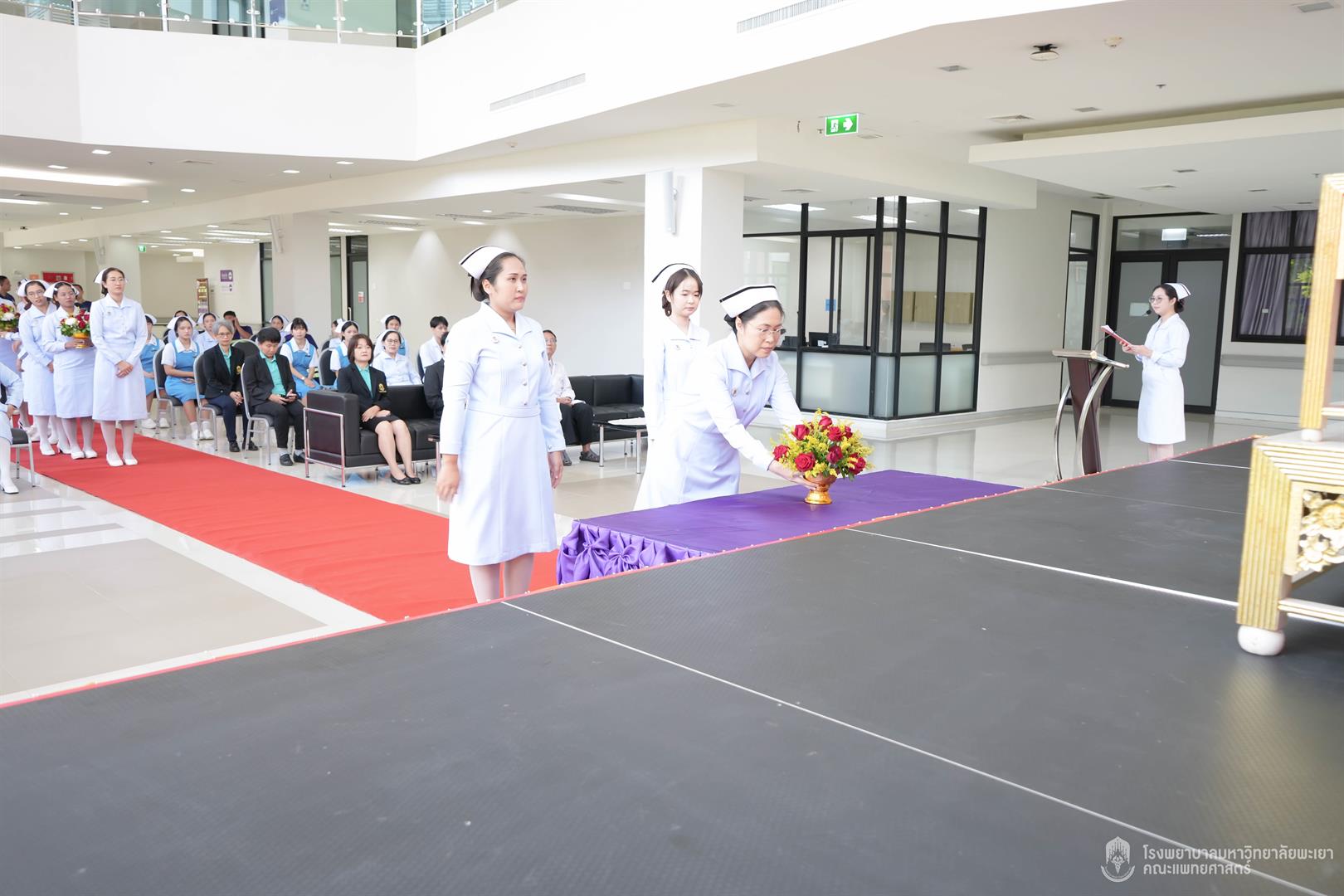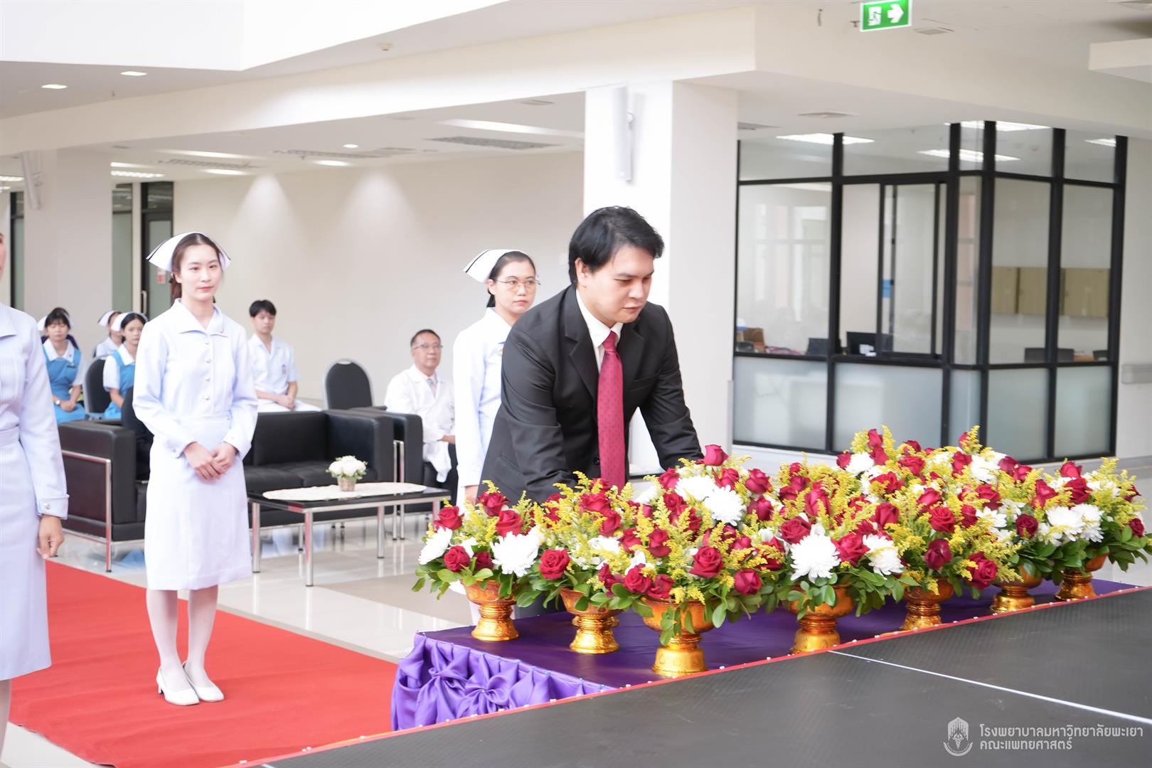 ทั้งนี้มี ดร.นภาพร เอี่ยมละออ รองคณบดีคณะพยาบาลศาสตร์ มหาวิทยาลัยพะเยา พร้อมด้วยบัคลากร นิสิต ที่เกี่ยวข้อง เข้าร่วมพิธีพร้อมเพรียงกัน