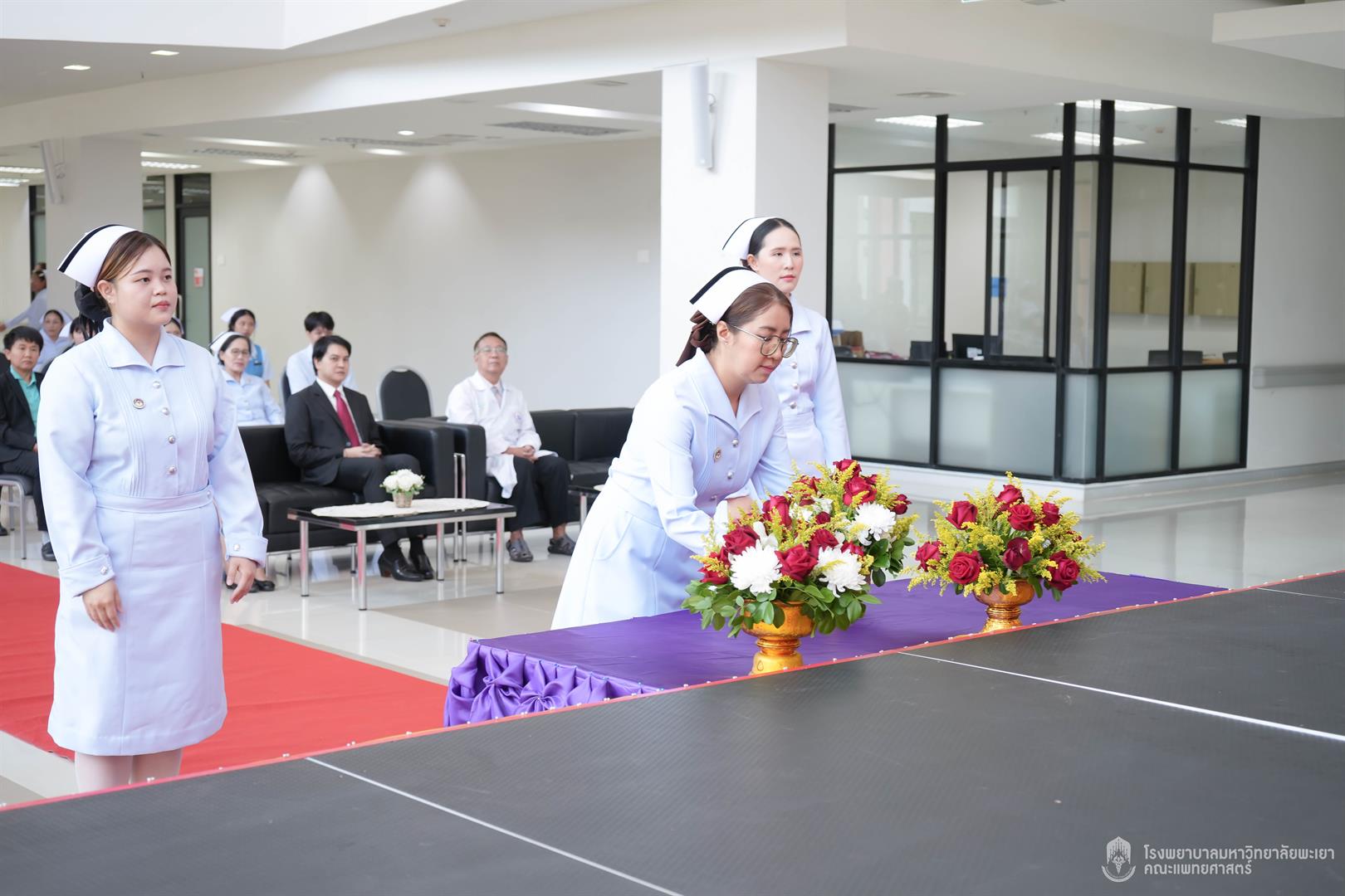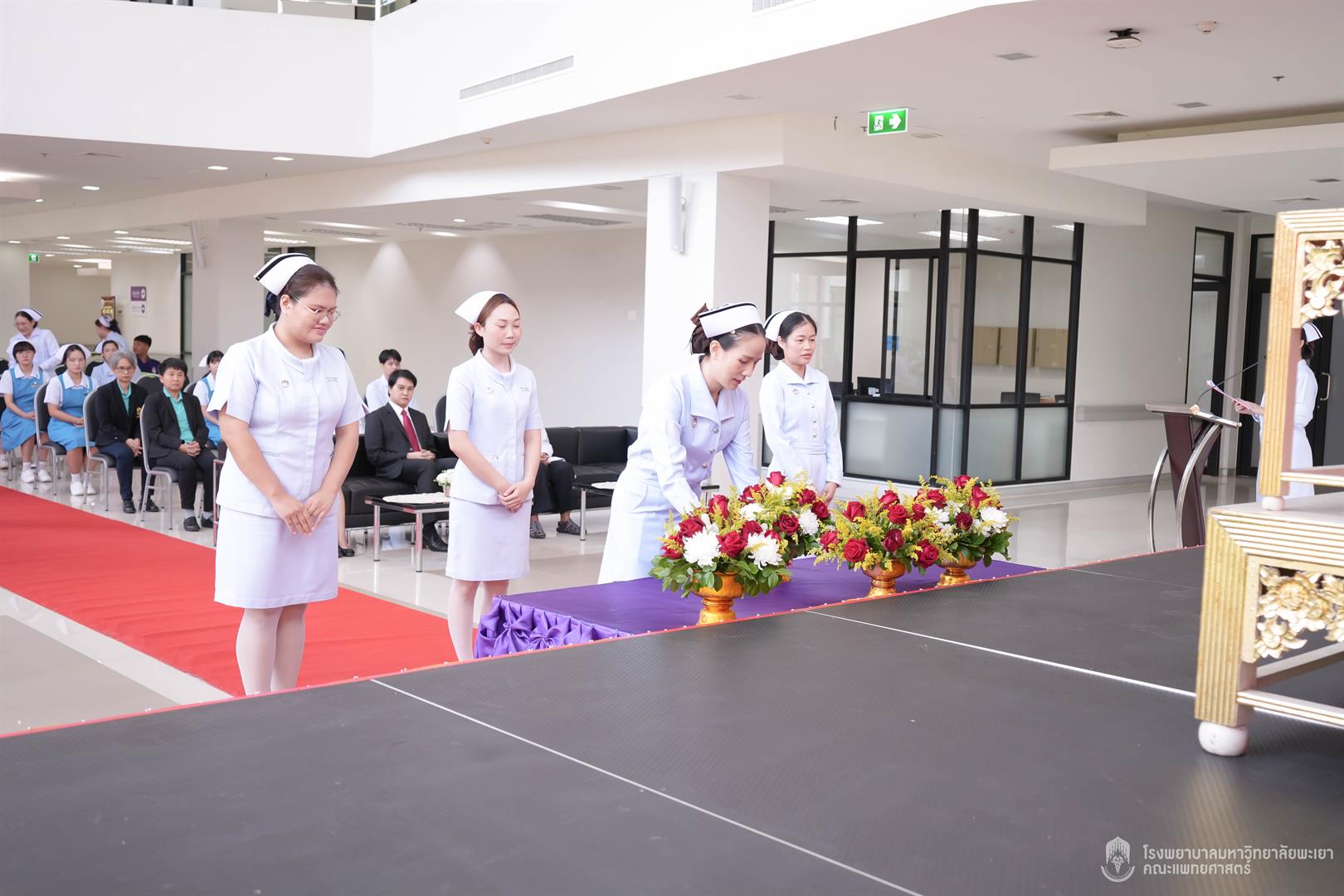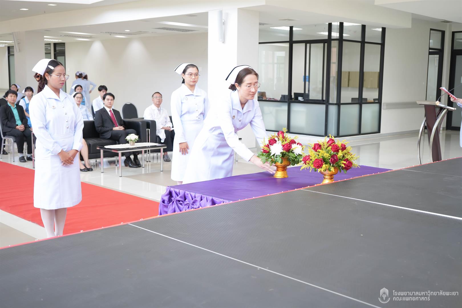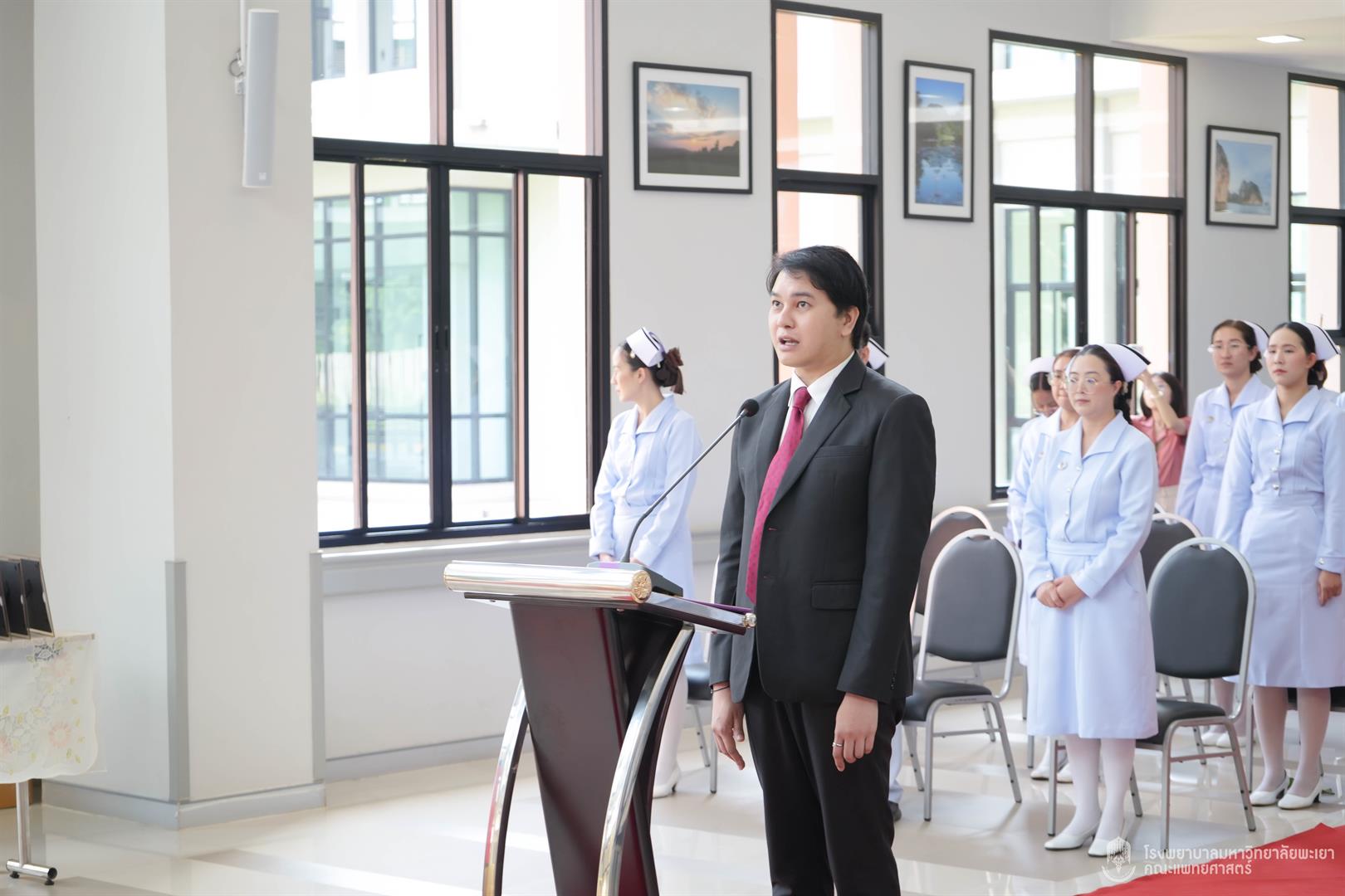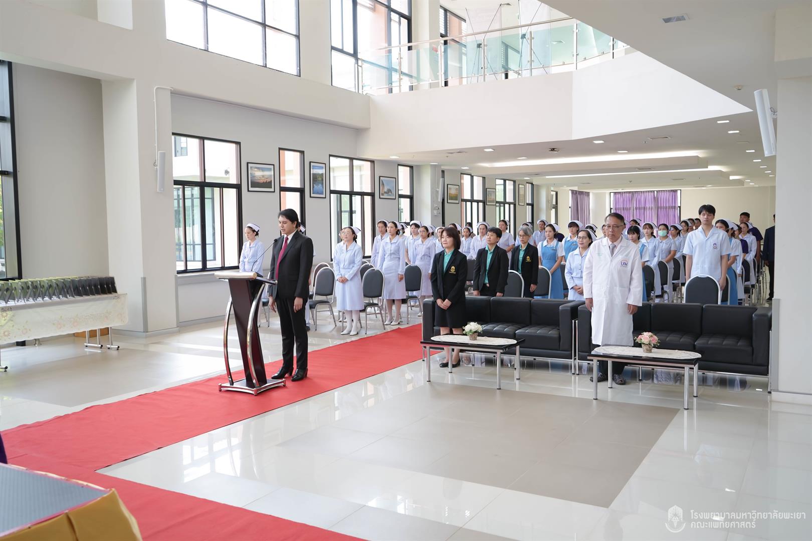 ทั้งนี้มี ดร.นภาพร เอี่ยมละออ รองคณบดีคณะพยาบาลศาสตร์ มหาวิทยาลัยพะเยา พร้อมด้วยบัคลากร นิสิต ที่เกี่ยวข้อง เข้าร่วมพิธีพร้อมเพรียงกัน