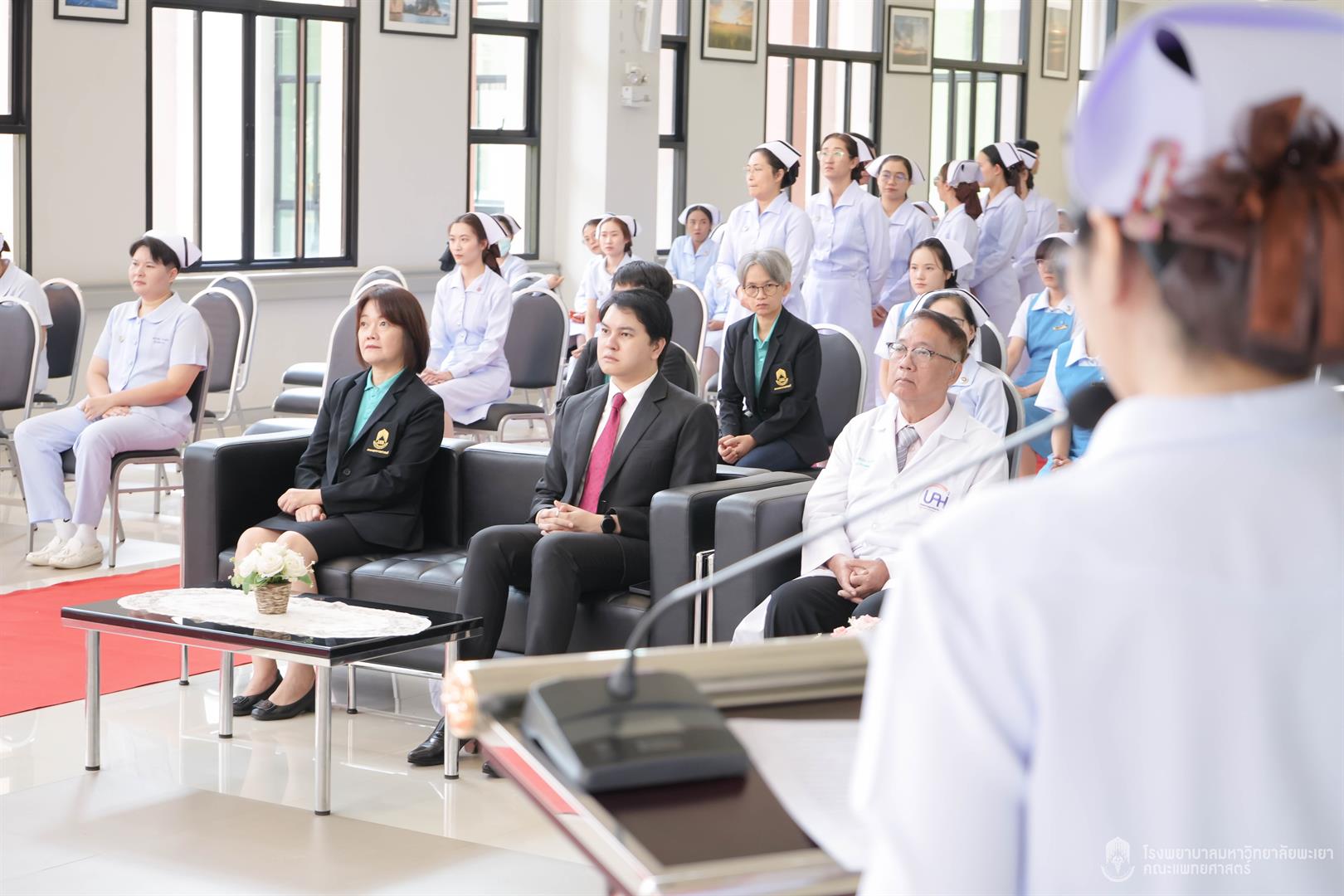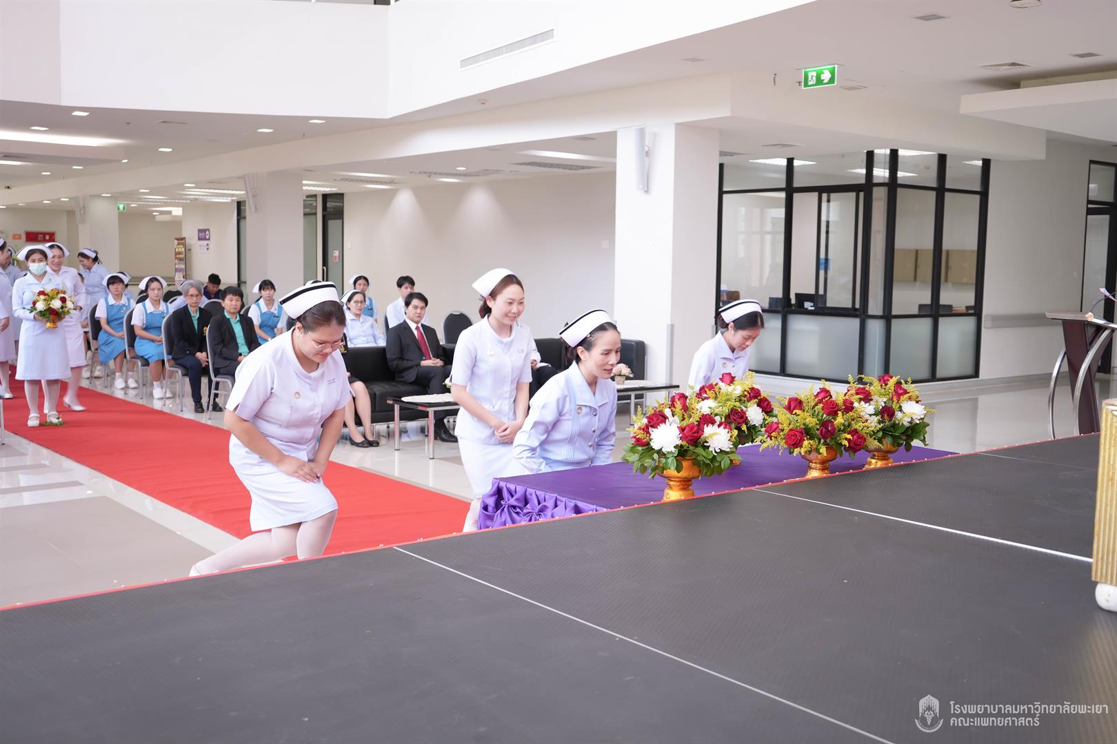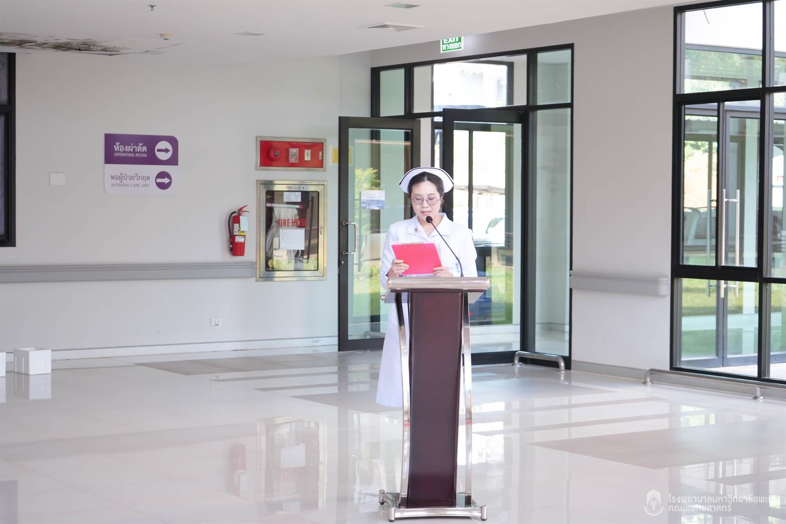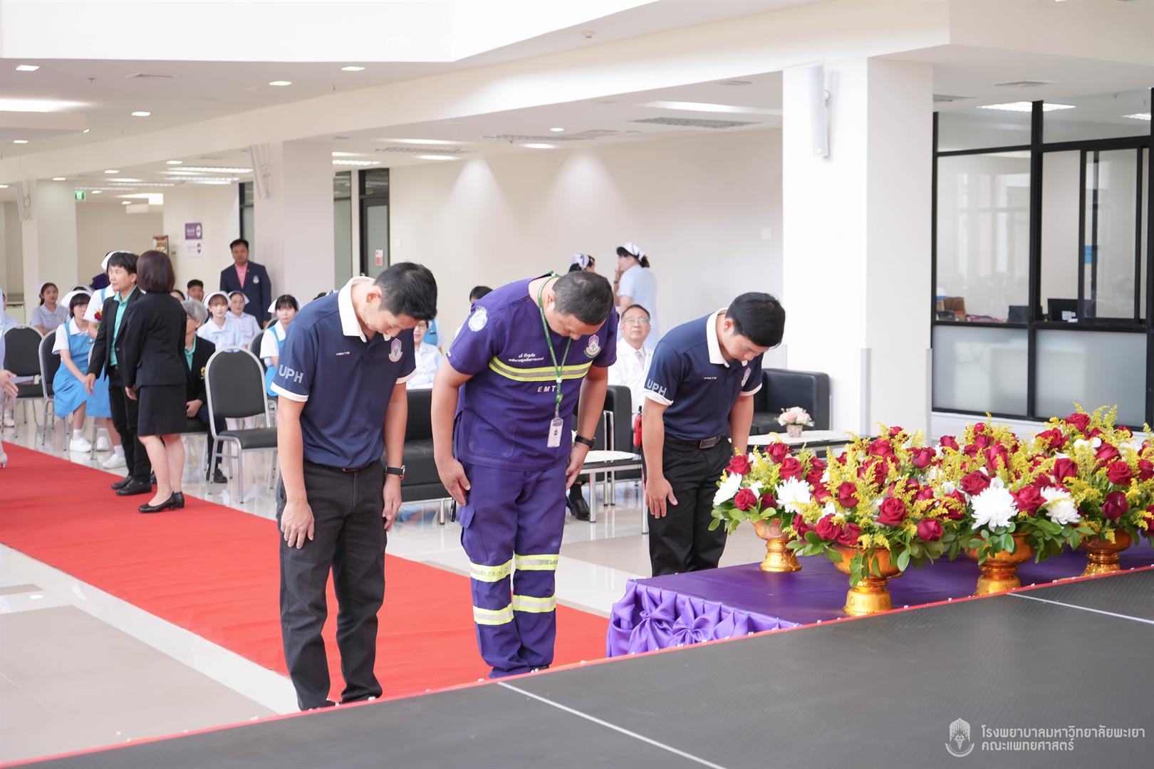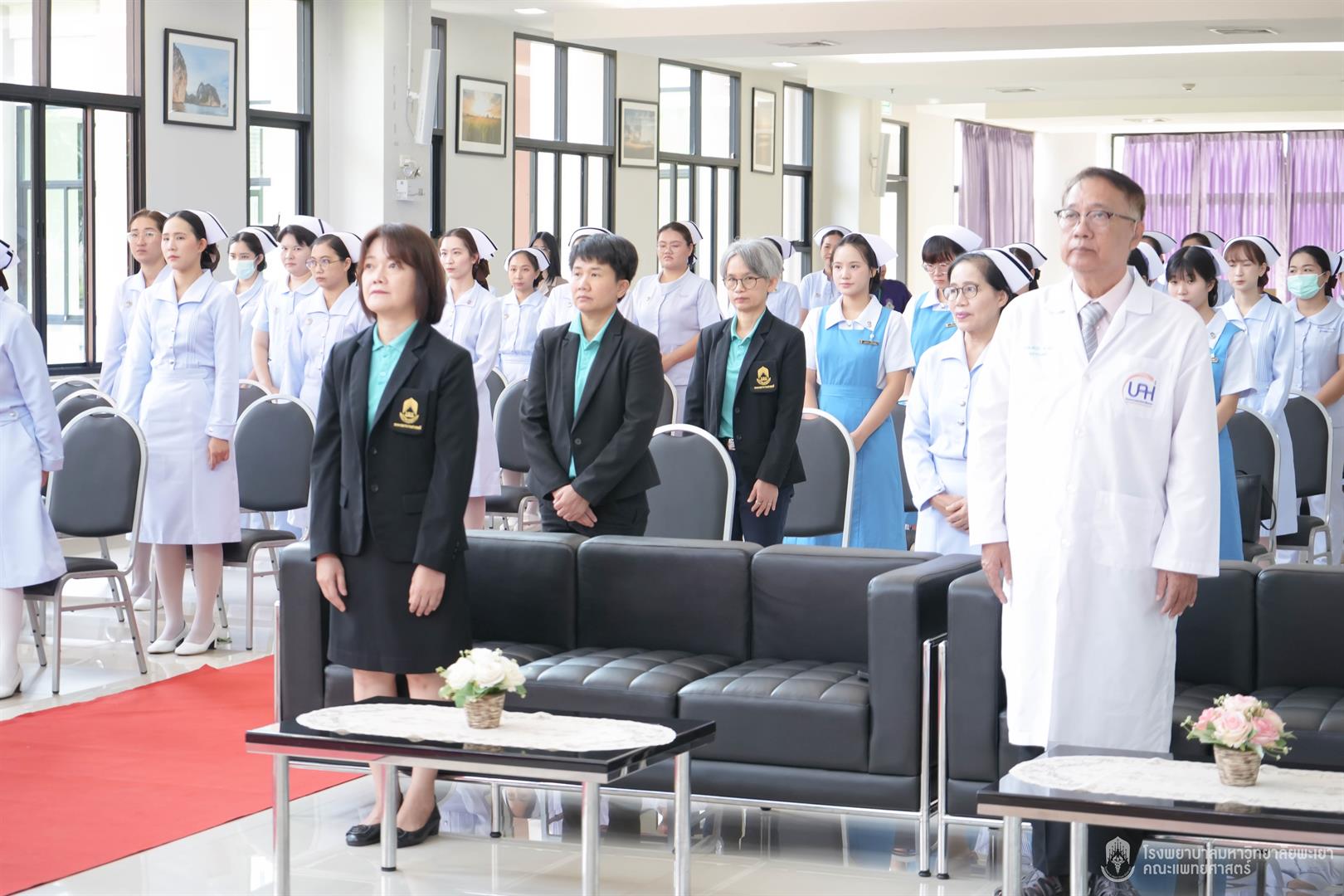 ทั้งนี้มี ดร.นภาพร เอี่ยมละออ รองคณบดีคณะพยาบาลศาสตร์ มหาวิทยาลัยพะเยา พร้อมด้วยบัคลากร นิสิต ที่เกี่ยวข้อง เข้าร่วมพิธีพร้อมเพรียงกัน