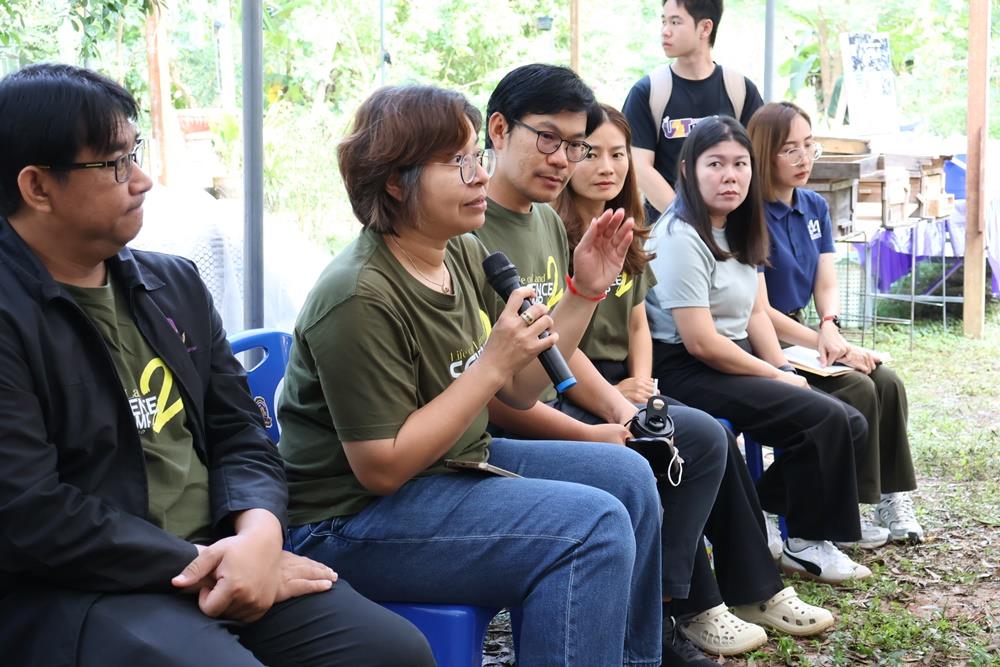 ผู้ช่วยศาสตราจารย์ ดร.เริงฤทัย ศิริรักษ์ หัวหน้าโครงการ นำเสนอความก้าวหน้าของโครงการที่มุ่งเน้นการฟื้นฟูพื้นที่ป่าและการสร้างความร่วมมือที่ยั่งยืนกับชุมชนท้องถิ่น โดยคุณจิระชัย ไชยวงค์ นวัตกรท้องถิ่นจากบ้านโซ้ ร่วมให้ข้อมูลเชิงลึกเกี่ยวกับพื้นที่