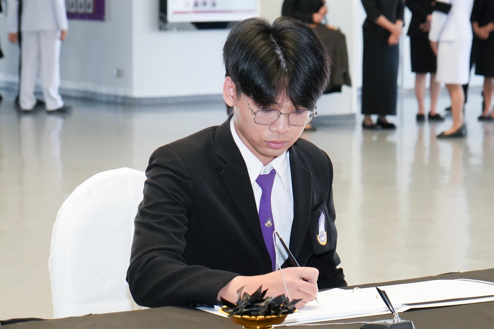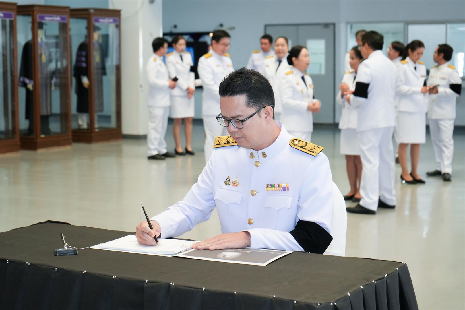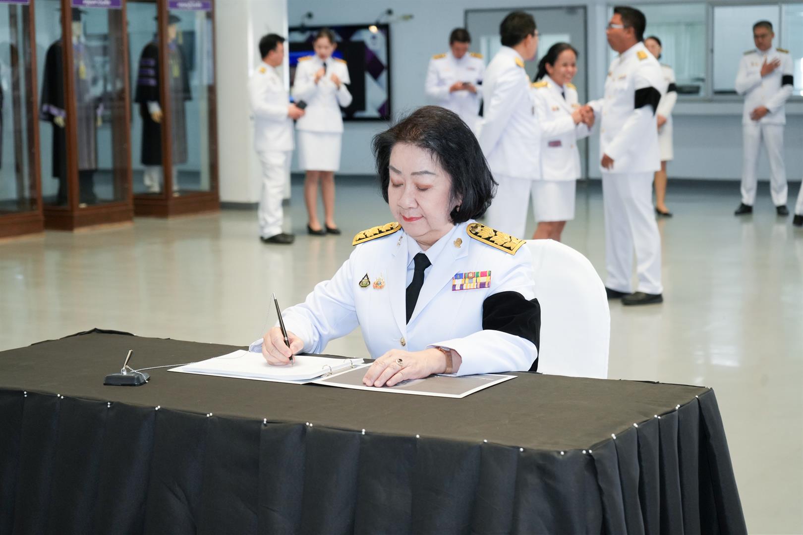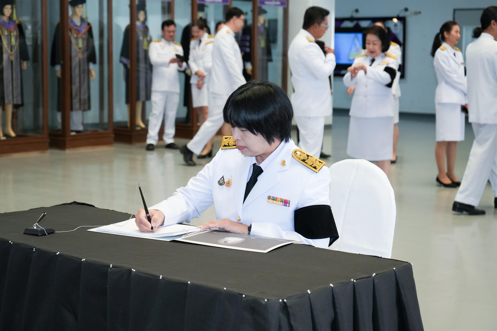 ในโอกาสนี้ อธิการบดีพร้อมด้วยคณะผู้บริหารและบุคลากร ร่วมถวายความอาลัยแด่ สมเด็จพระนางเจ้าสิริกิติ์ พระบรมราชินีนาถ พระบรมราชชนนีพันปีหลวง โดยยืนสงบนิ่งเป็นเวลา 1 นาที เพื่อน้อมรำลึกในพระมหากรุณาธิคุณอันหาที่สุดมิได้ จากนั้น อธิการบดีพร้อมด้วยคณะผู้บริหารและบุคลากร ร่วมพิธีลงนามถวายความอาลัยในสมุดลงนาม