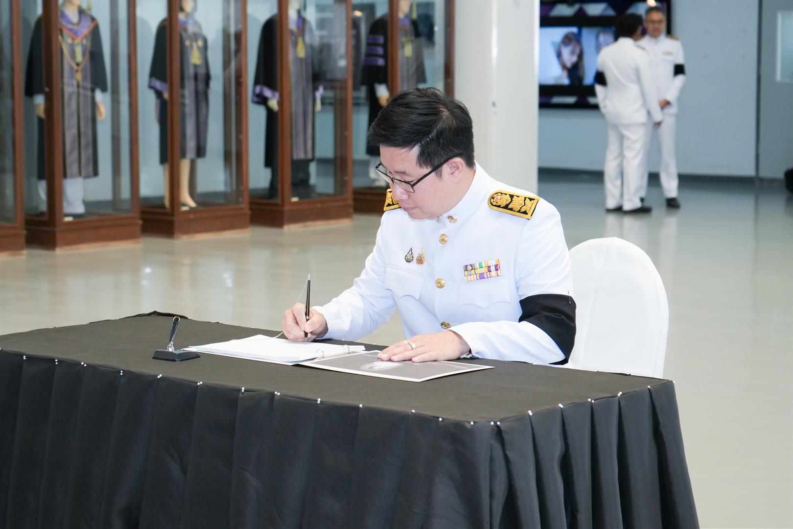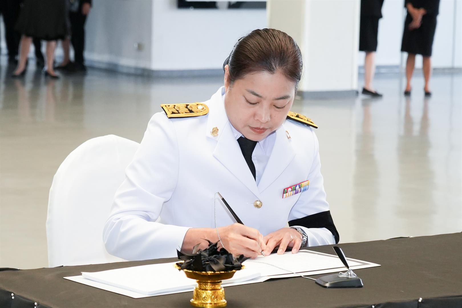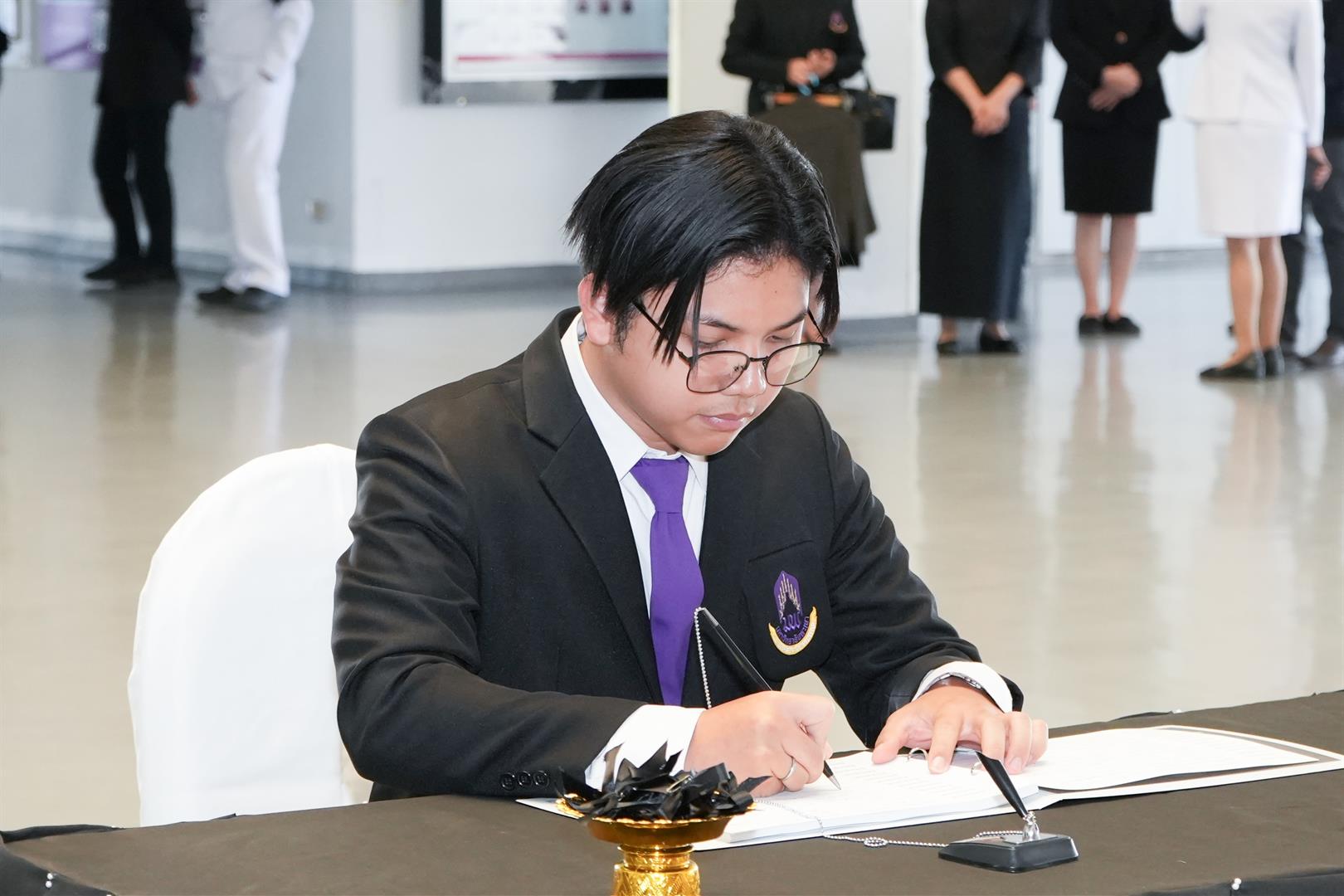 ในโอกาสนี้ อธิการบดีพร้อมด้วยคณะผู้บริหารและบุคลากร ร่วมถวายความอาลัยแด่ สมเด็จพระนางเจ้าสิริกิติ์ พระบรมราชินีนาถ พระบรมราชชนนีพันปีหลวง โดยยืนสงบนิ่งเป็นเวลา 1 นาที เพื่อน้อมรำลึกในพระมหากรุณาธิคุณอันหาที่สุดมิได้ จากนั้น อธิการบดีพร้อมด้วยคณะผู้บริหารและบุคลากร ร่วมพิธีลงนามถวายความอาลัยในสมุดลงนาม