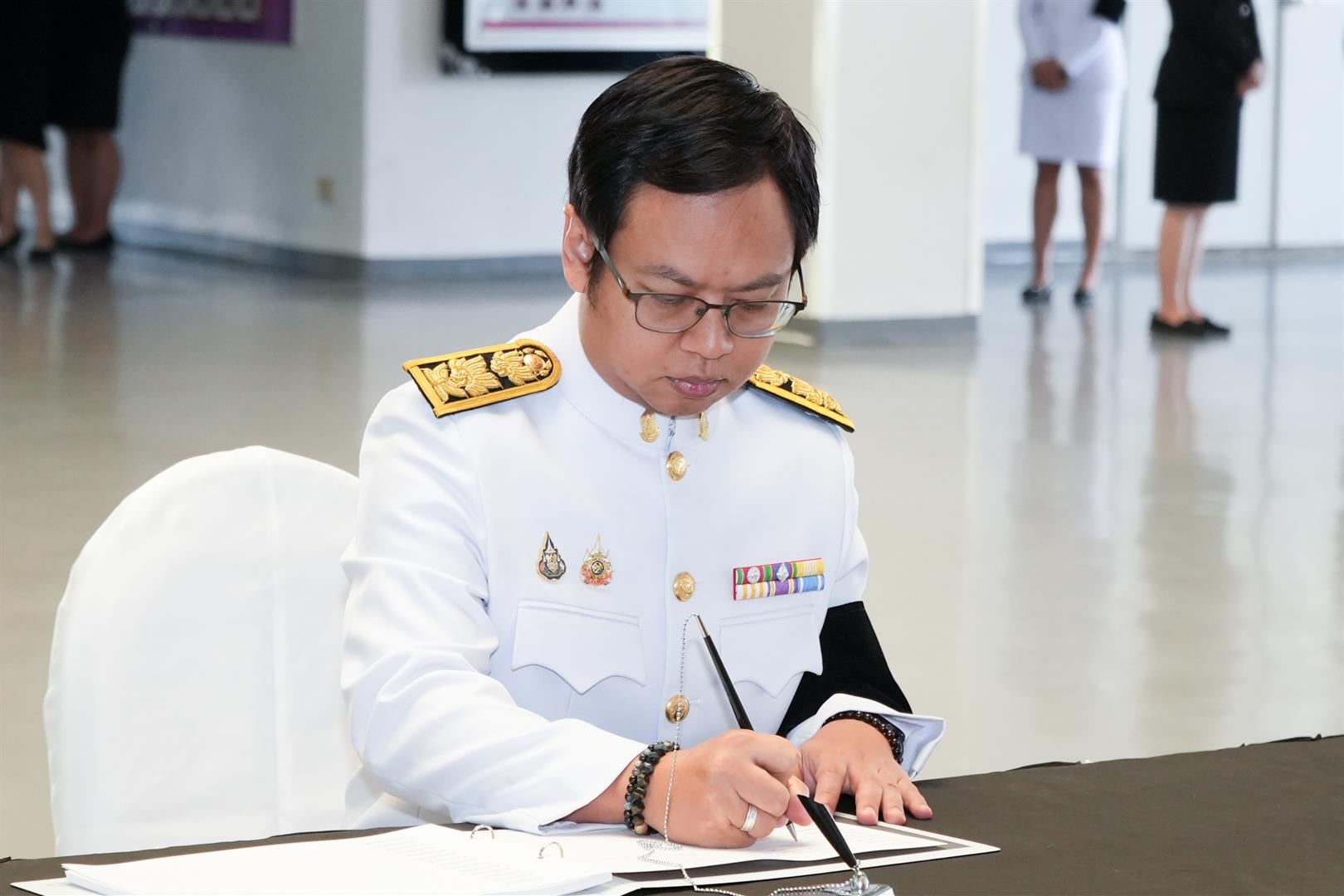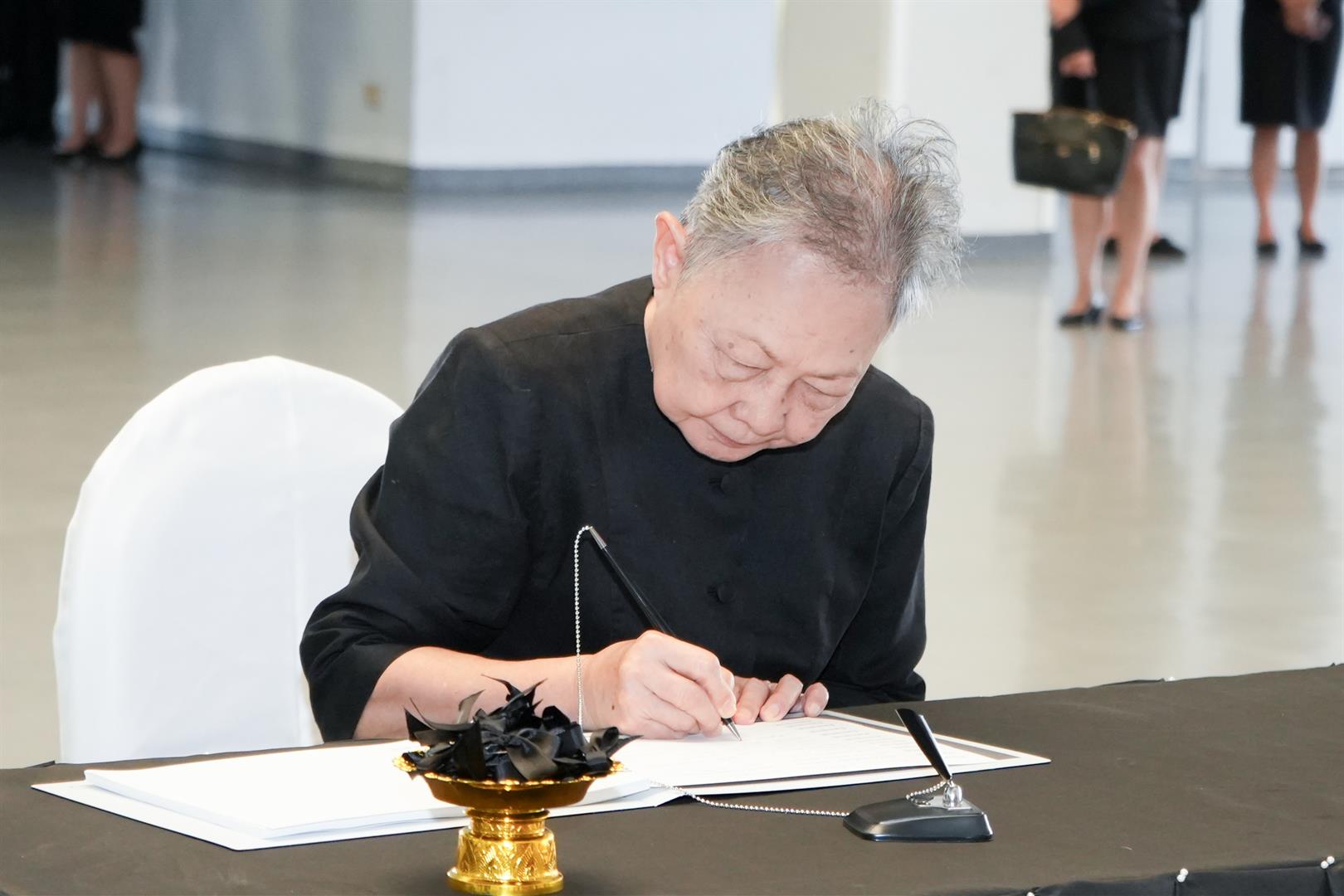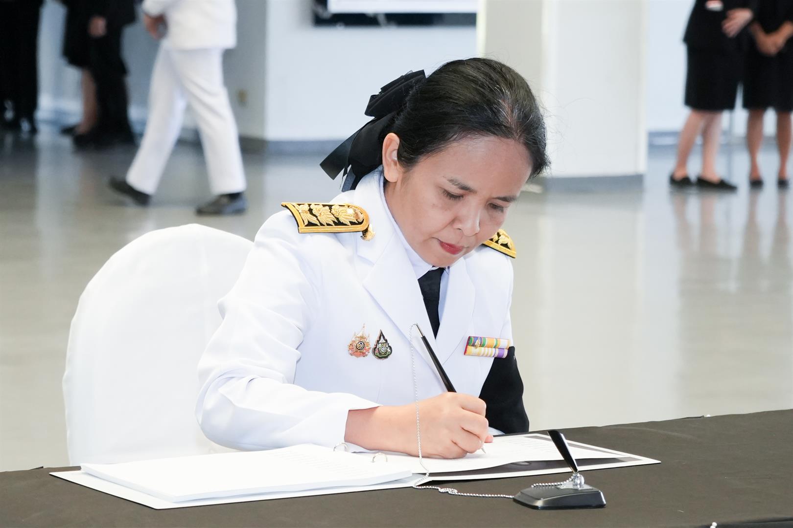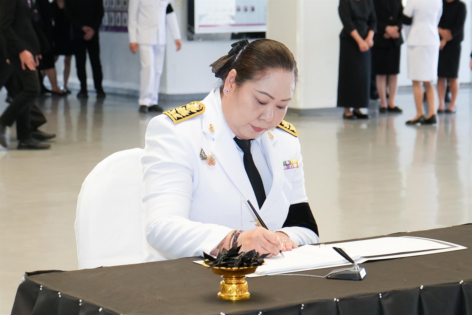 ในโอกาสนี้ อธิการบดีพร้อมด้วยคณะผู้บริหารและบุคลากร ร่วมถวายความอาลัยแด่ สมเด็จพระนางเจ้าสิริกิติ์ พระบรมราชินีนาถ พระบรมราชชนนีพันปีหลวง โดยยืนสงบนิ่งเป็นเวลา 1 นาที เพื่อน้อมรำลึกในพระมหากรุณาธิคุณอันหาที่สุดมิได้ จากนั้น อธิการบดีพร้อมด้วยคณะผู้บริหารและบุคลากร ร่วมพิธีลงนามถวายความอาลัยในสมุดลงนาม