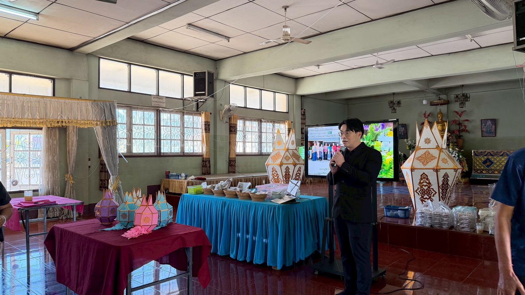 เมื่อวันที่ 27 ตุลาคม 2568 ที่ผ่านมา คณะเภสัชศาสตร์ มหาวิทยาลัยพะเยา ร่วมกับชุมชนวัดป่าลานคำ ร่วมนำเสนอความก้าวหน้าของโครงการ 1 คณะ 1 เป้าหมายการพัฒนาที่ยั่งยืน (SDG) ให้กับคณะกรรมการพัฒนาคุณภาพสู่ความสำเร็จโครงการ1 คณะ 1 เป้าหมายการพัฒนาที่ยั่งยืน (SDG) ในการพัฒนาโคมไฟล้านนาอโรมาเธอราพี และร่วมทำกิจกรรมการพัฒนาต่อยอดสมุนไพรในตำรายาเมืองเป็นผลิตภัณฑ์เพื่อสุขภาพ โดยมี ดร. เภสัชกร ภูวิช ไชยคำวัง รองคณบดีฝ่ายคุณภาพนิสิตและบูรณาการพันธกิจกับชุมชน พร้อมด้วยบุคลากรคณะเภสัชศาสตร์ เข้าร่วมในการจัดกิจกรรมดังกล่าว ณ วัดป่าลานคำ ตำบลแม่ต๋ำ อำเภอเมือง จังหวัดพะเยา
