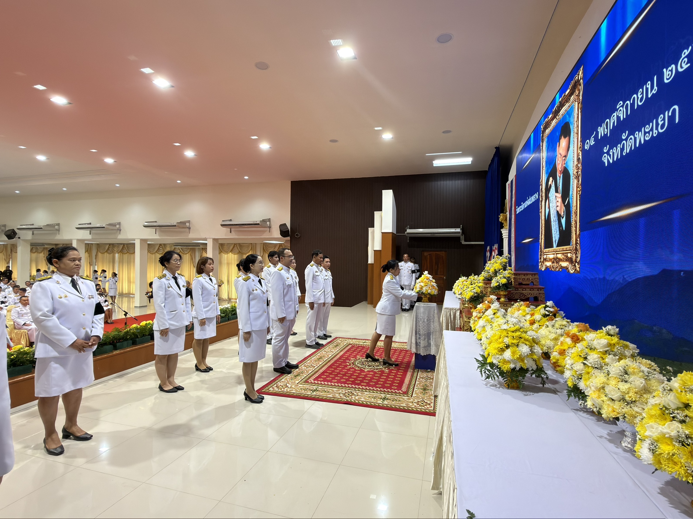 พิธีดังกล่าวมี นายภูธนะ ชมภูมิ่ง รองผู้ว่าราชการจังหวัดพะเยา รักษาราชการแทนผู้ว่าราชการจังหวัดพะเยา เป็นประธานในพิธี โดยได้ประกอบพิธีถวายความอาลัยแด่สมเด็จพระนางเจ้าสิริกิติ์ พระบรมราชินีนาถ พระบรมราชชนนีพันปีหลวง ด้วยการยืนสงบนิ่งเป็นเวลา 93 วินาที จากนั้นประธานในพิธีพร้อมข้าราชการพลเรือน ตุลาการ ทหาร ตำรวจ และผู้เข้าร่วมงาน ร่วมวางพานพุ่มถวายราชสักการะแด่พระบิดาแห่งฝนหลวงอย่างพร้อมเพรียง