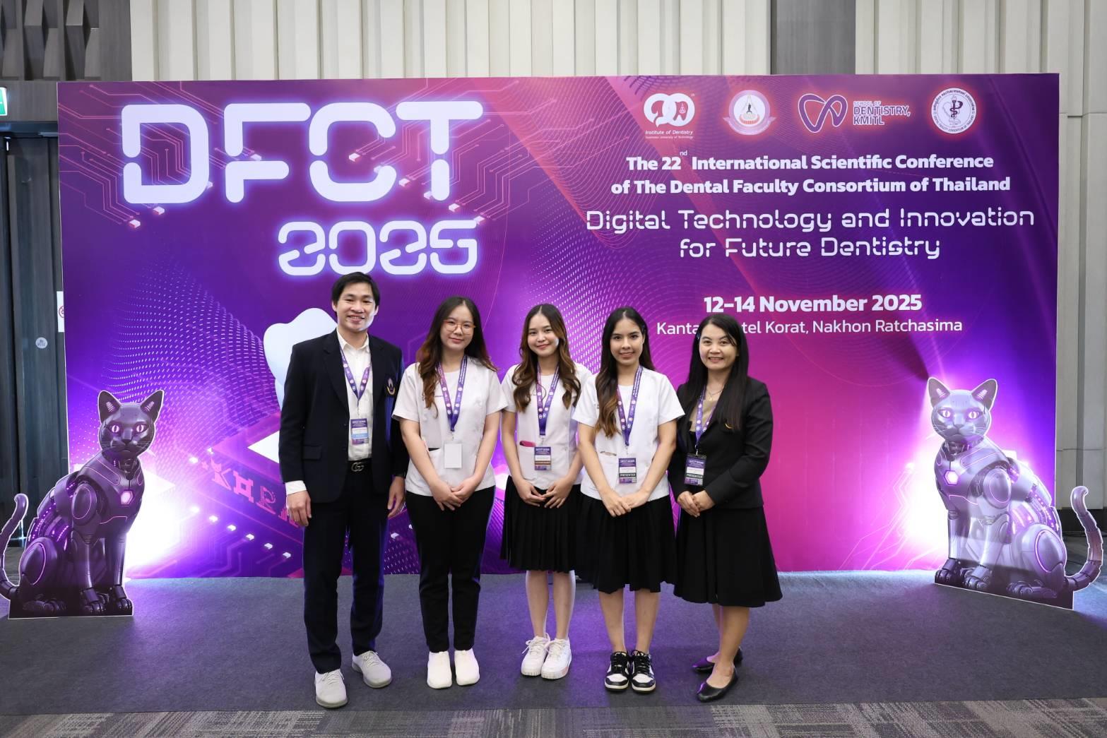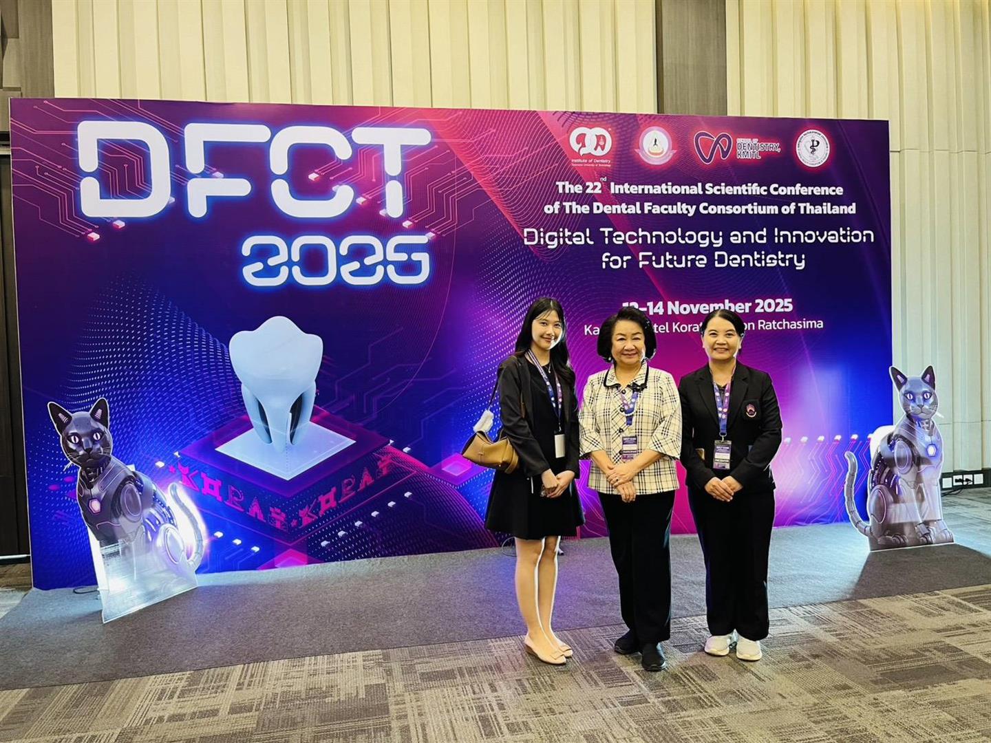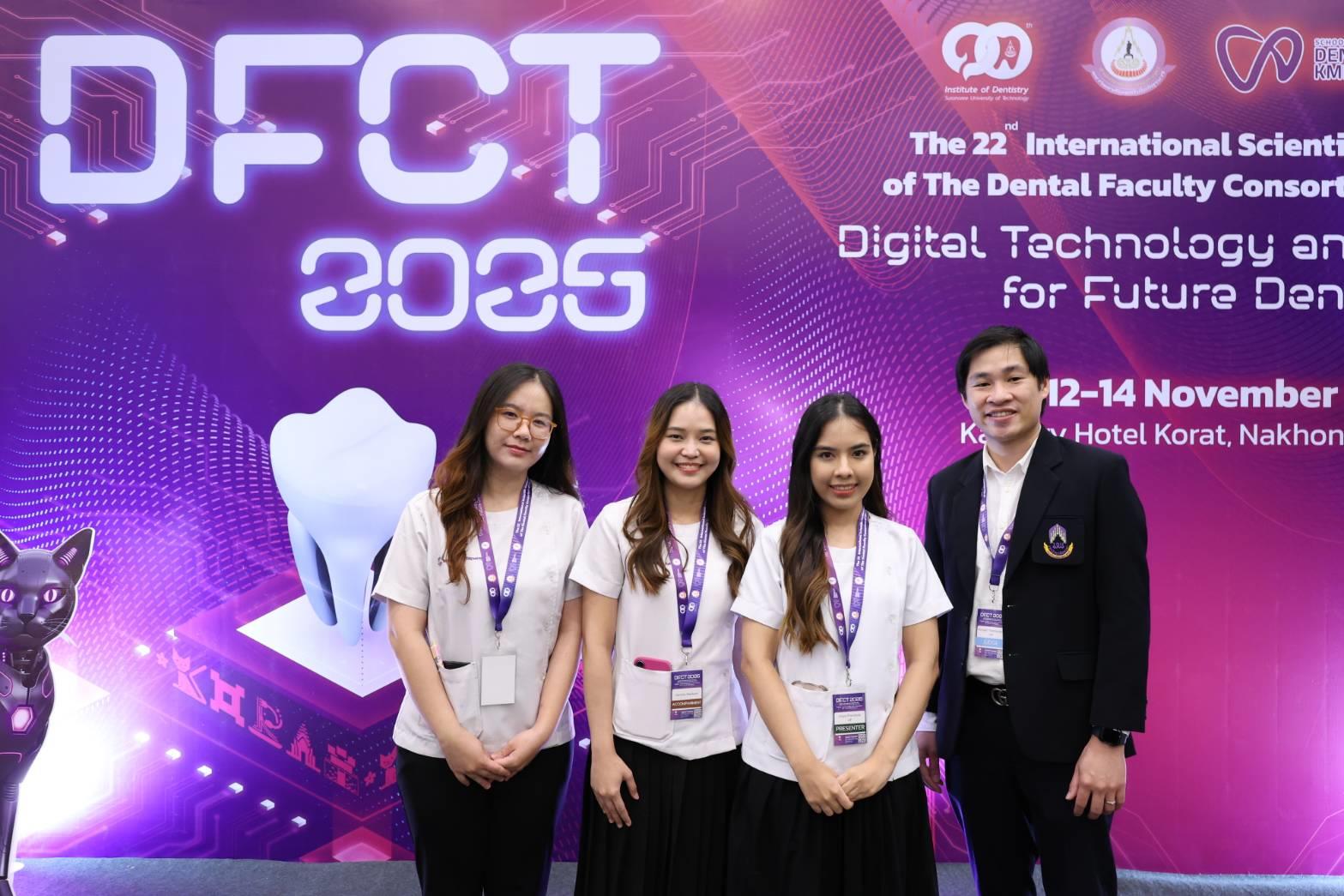 เมื่อวันที่ 12-14 พฤศจิกายน 2568 คณะทันตแพทยศาสตร์ มหาวิทยาลัยพะเยา นำโดย ศาสตราจารย์ ทันตแพทย์หญิง ดร.พัชราวรรณ ศรีศิลปนันทน์ พร้อมด้วยผู้บริหาร อาจารย์ บุคลากรและนิสิต เข้าร่วมการประชุมวิชาการและเสนอผลงานวิจัยสาขาทันตแพทยศาสตร์ ครั้งที่ 22 ระดับนานาชาติ ขององค์กรผู้บริหารคณะทันตแพทยศาสตร์แห่งประเทศไทย (อ.บ.ท.ท.) หรือ The 22nd International Scientific Conference of the Dental Faculty Consortium of Thailand (DFCT 2025) ภายใต้ธีม "Digital Technology and Innovation for Future Dentistry" ณ โรงแรมแคนทารี โคราช อำเภอเมือง จังหวัดนครราชสีมา
