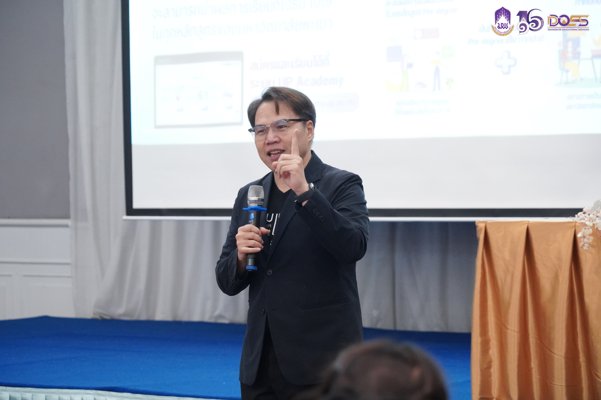 สิ่งอำนวยความสะดวก ผู้สอนและโค้ช หลักสูตร CWIE (Cooperative and Work Integrated Education) คือ หลักสูตรที่บูรณาการการเรียนรู้ในมหาวิทยาลัยกับประสบการณ์ทำงานจริงในสถานประกอบการ โดยมีหลายรูปแบบ เช่น เรียนสลับกับทำงาน (Parallel) หรือเรียนทฤษฎีให้ครบแล้วไปทำงาน (Separate) โดยเน้นสร้างสมรรถนะให้บัณฑิตพร้อมทำงานได้ทันที และ Skill Transcript การรวบรวมและแสดงทักษะที่จำเป็นสำหรับแต่ละตำแหน่งงานในปัจจุบัน (Demand Side) และทักษะที่หลักสูตรแต่ละหลักสูตรเสริมสร้างให้ผู้เรียน (Supply Side) เพื่อช่วยในการวางแผนทรัพยากรบุคคลของประเทศ และการออกแบบแนวทางการเรียนรู้ที่ตอบสนองความต้องการอย่างแท้จริง จากนั้น ผู้อำนวยการสถาบันนวัตกรรมการเรียนรู้ ผู้ช่วยศาสตราจารย์ ดร.น้ำเงิน จันทรมณี ได้กล่าวถึง UP AI Connect AI สำหรับนิสิตและบุคลสกรมหาวิทยาลัยพะเยา หลักสูตร Pre-Degree ให้นักเรียนที่กำลังศึกษาในระดับชั้นมัธยมศึกษาตอนปลาย ที่กำลังจะเข้าศึกษามหาวิทยาลัยพะเยา สามารถลงทะเบียนเรียนก่อนได้ และสามารถเลือกรับผลการเรียน เมื่อมาเป็นนิสิตมหาวิทยาลัยพะเยา