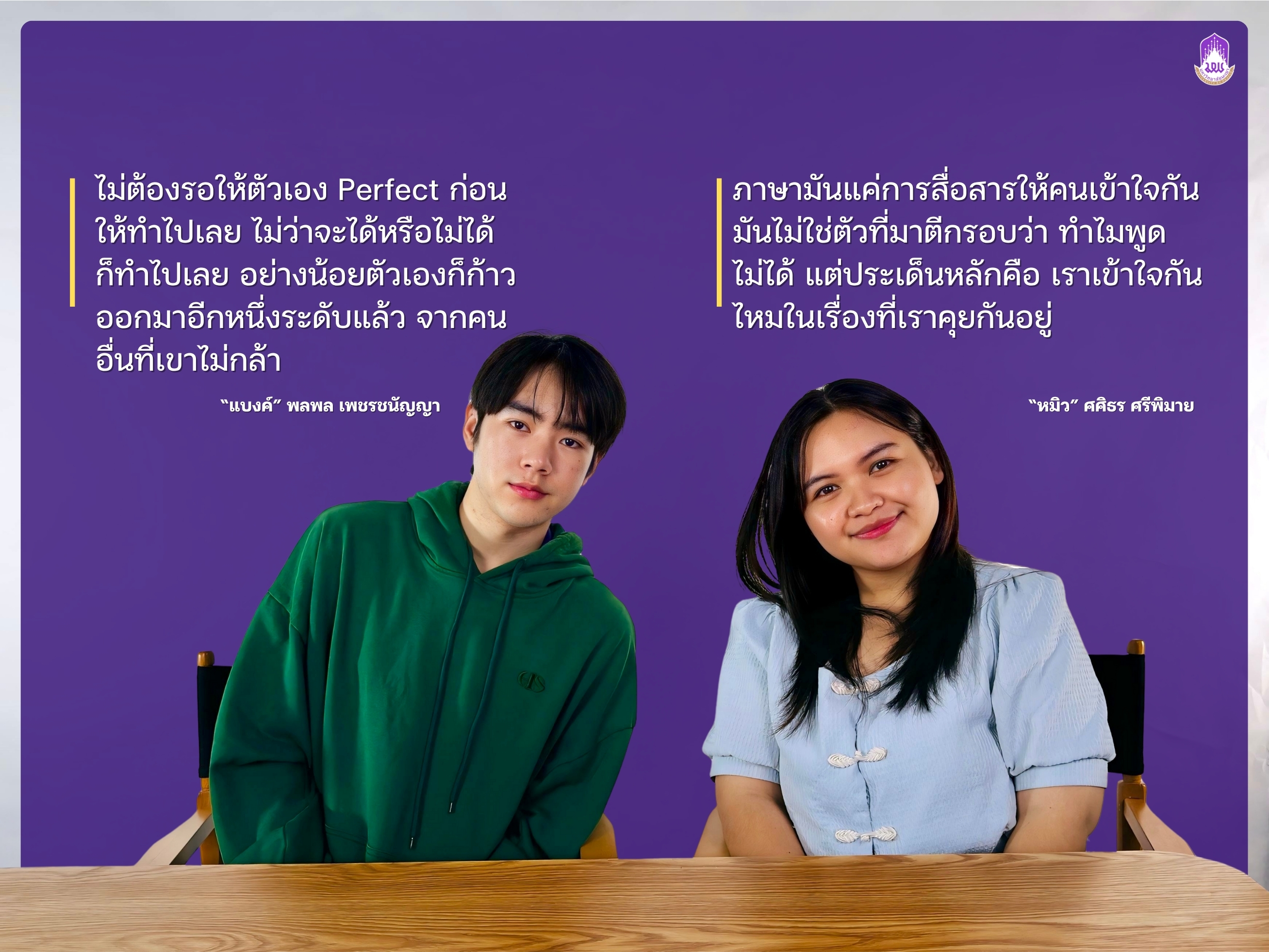 น้องหมิวเสริมว่าเธอเคยเป็นเด็กที่ท่อง ABC ไม่ได้เลยตอนประถม แต่วันนี้สามารถใช้ชีวิตและสื่อสารภาษาอังกฤษได้ มันเพราะเธอนั่งเรียนกับตัวเอง มี YouTube ก็นั่งเรียนไปเรื่อย ฟังบ่อยๆ ฟังเยอะๆ ฝึกฟัง ฝึกแปล และเธอชอบคุยคนเดียวในหัวเป็นภาษาอังกฤษ เพราะในชีวิตประจำวันไม่มีคนให้คุยด้วยเป็นภาษาอังกฤษ