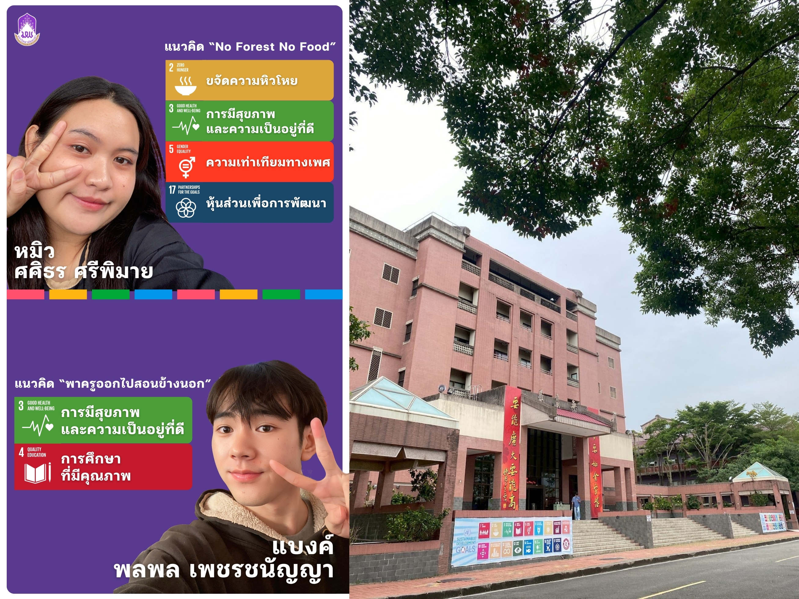 น้องหมิวเลือก SDG 2, 3, 5 และ 17 ใช้แนวคิด “No Forest No Food” เชื่อมโยงการเผาป่ากับความมั่นคงทางอาหาร สิ่งแวดล้อม ความเท่าเทียมทางเพศ และความร่วมมือ เธอบอกว่าผู้หญิงมักเข้าป่าเก็บพืชผัก ส่วนผู้ชายดับไฟป่า จึงเล่นประเด็นความเท่าเทียมได้