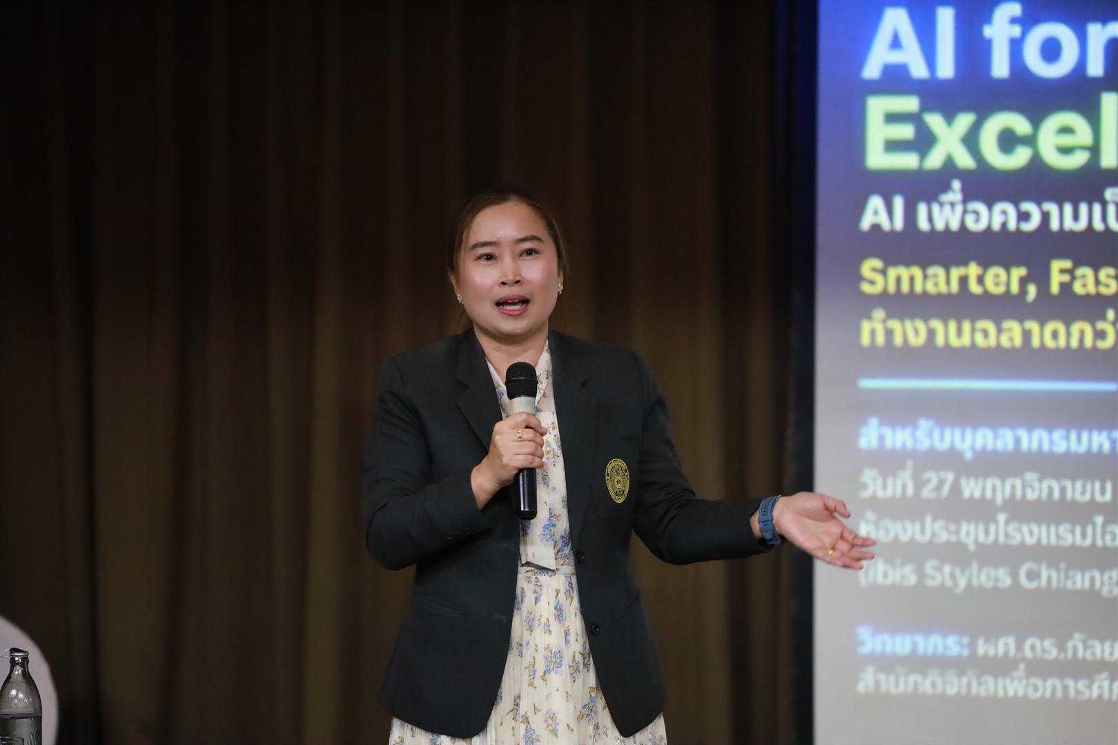 ซึ่งมุ่งเน้นให้บุคลากรเข้าใจละสามารถประยุกต์ใช้เทคโนโลยี AI เพื่อเพิ่มคุณภาพงานในทุกด้าน ทั้งด้านการเขียน การวิเคราะห์ การวางแผน การสื่อสาร และการจัดการงานประจำวัน