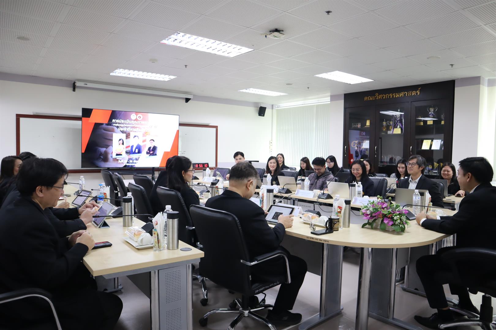 การประเมินดังกล่าวนำโดย รองศาสตราจารย์ ดร.ณัฐพงศ์ ดำรงวิริยะนุภาพ คณบดีคณะวิศวกรรมศาสตร์ พร้อมด้วยทีมผู้บริหารที่ร่วมกันนำเสนอภาพรวมการดำเนินงานในปีที่ผ่านมา ทั้งด้านการบริหารจัดการ การพัฒนานิสิต การวิจัย บริการวิชาการ ตลอดจนการบริหารทรัพยากร เพื่อสะท้อนผลลัพธ์ตามกรอบ EdPEx ซึ่งให้ความสำคัญกับความเป็นเลิศเชิงกระบวนการและผลลัพธ์