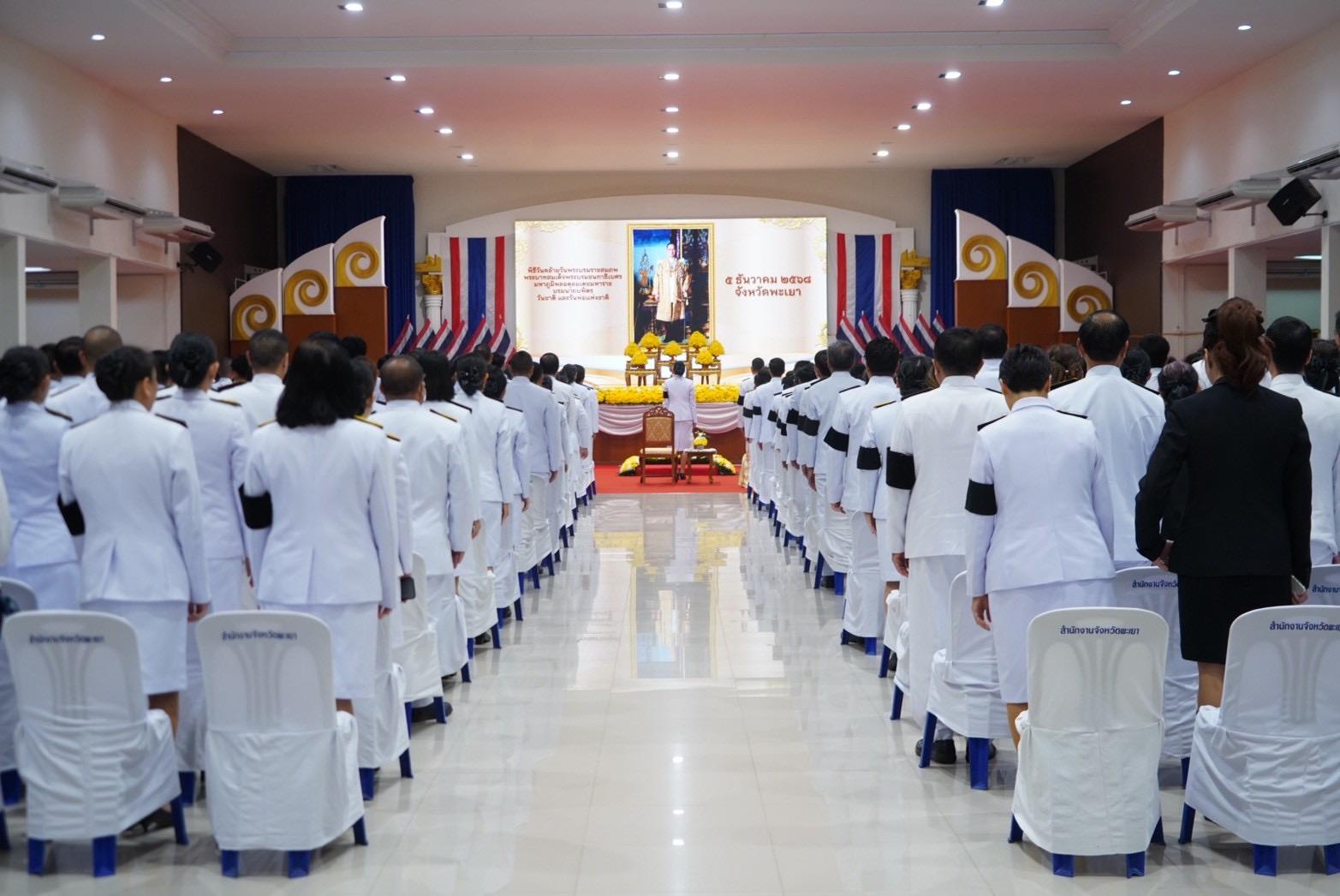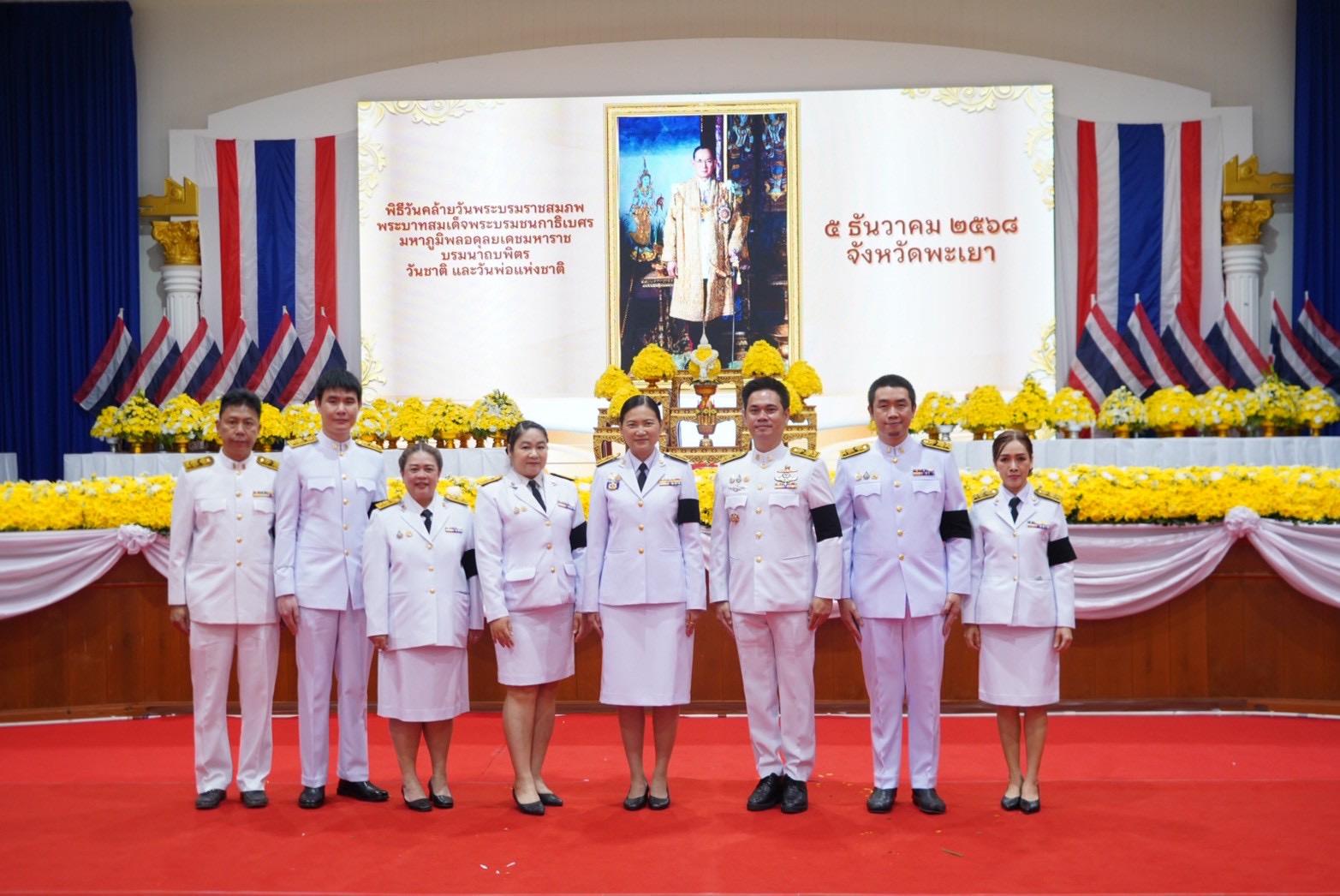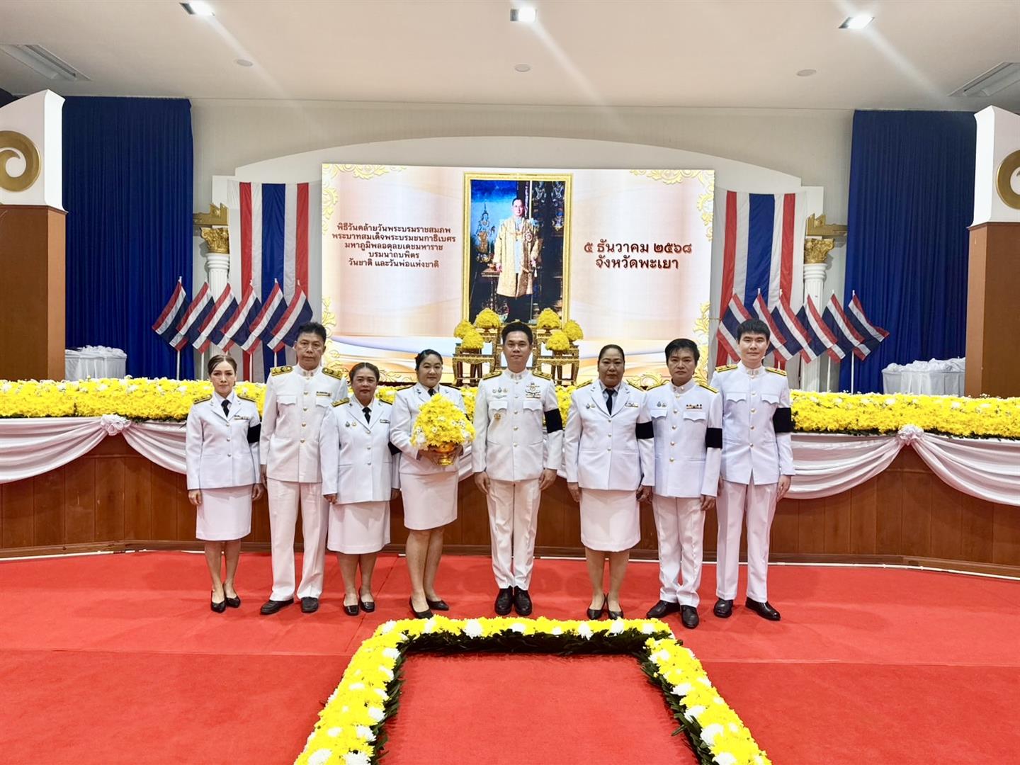 วันศุกร์ที่ 5 ธันวาคม 2568 รองศาสตราจารย์ ดร.สุภกร พงศบางโพธิ์ อธิการบดีมหาวิทยาลัยพะเยา มอบหมายให้ ดร.วุฒิชัย ไชยรินคำ รองอธิการบดีฝ่ายคุณภาพนิสิต พร้อมด้วย ดร.จารุวรรณ โปษยานนท์ ผู้ช่วยอธิการบดี และคณะผู้บริหาร บุลคากรจากคณะสหเวชศาสตร์ สำนักงานสภามหาวิทยาลัย เข้าร่วมพิธีเจริญพระพุทธมนต์ ทำบุญตักบาตรข้าวสารอาหารแห้ง และพิธีวางพานพุ่มดอกไม้ถวายราชสักการะ เนื่องในวันคล้ายวันพระราชสมภพ พระบาทสมเด็จพระบรมชนกาธิเบศร มหาภูมิพลอดุลยเดชมหาราช บรมนาถบพิตร วันชาติ และวันพ่อแห่งชาติ 5 ธันวาคม 2568 เพื่อน้อมรำลึกถึงพระมหากรุณาธิคุณ และถวายราชสดุดี แด่พระองค์พระมหากษัตริย์ ผู้ทรงสร้างสรรค์ความเจริญรุ่งเรืองแก่ประชาชนและประเทศไทย โดยมี นางสาวอรอาภา โล่ห์วีระ รองผู้ว่าราชการจังหวัดพะเยา รักษาราชการแทนผู้ว่าราชการจังหวัดพะเยา เป็นประธานในพิธี ณ ศาลาประชาคมจังหวัดพะเยา อำเภอเมืองพะเยา จังหวัดพะเยา