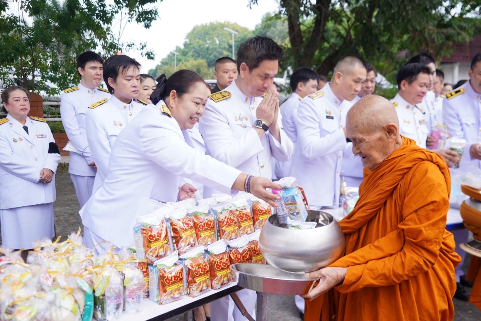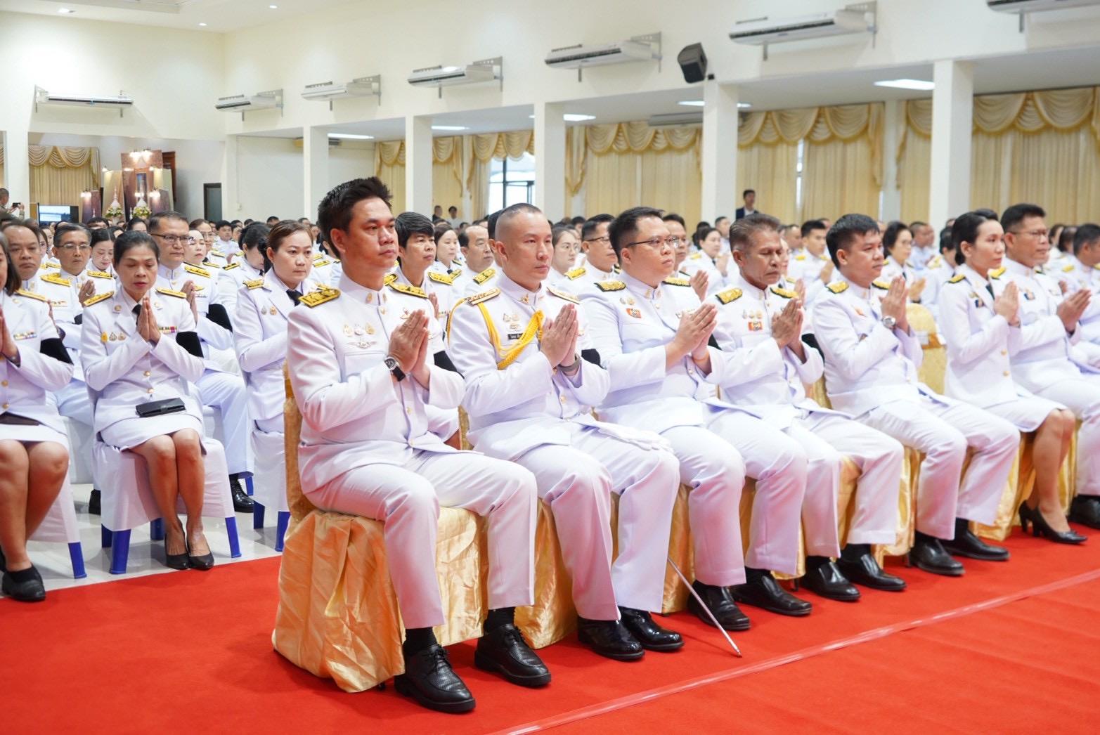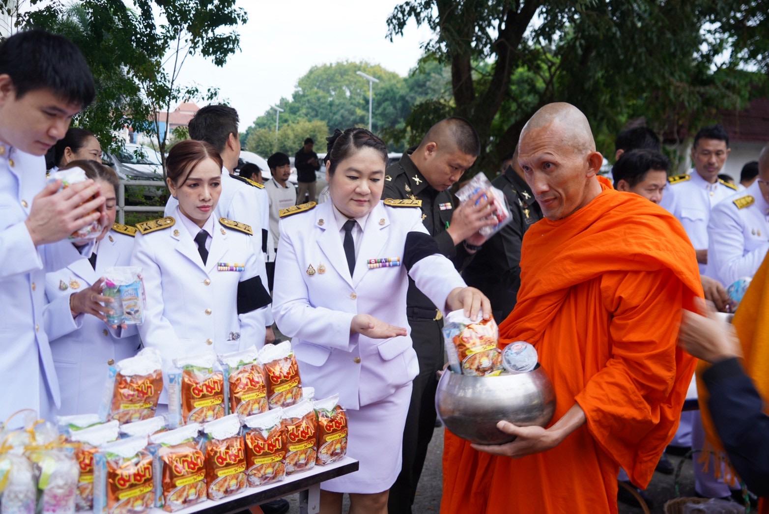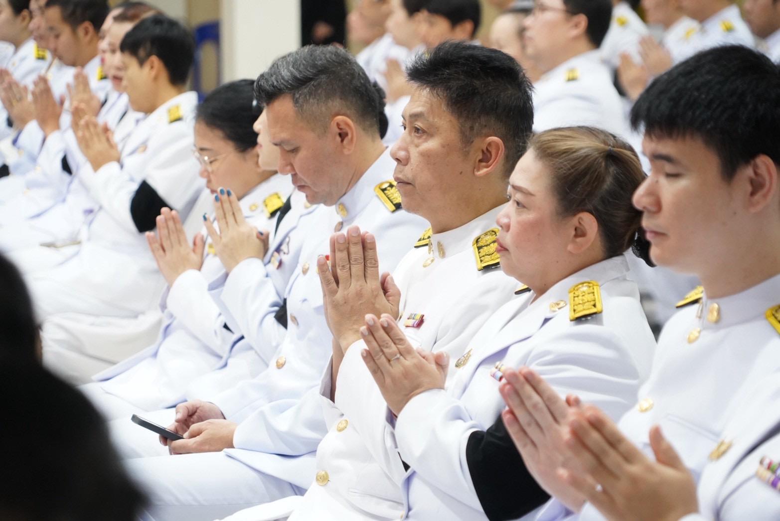วันศุกร์ที่ 5 ธันวาคม 2568 รองศาสตราจารย์ ดร.สุภกร พงศบางโพธิ์ อธิการบดีมหาวิทยาลัยพะเยา มอบหมายให้ ดร.วุฒิชัย ไชยรินคำ รองอธิการบดีฝ่ายคุณภาพนิสิต พร้อมด้วย ดร.จารุวรรณ โปษยานนท์ ผู้ช่วยอธิการบดี และคณะผู้บริหาร บุลคากรจากคณะสหเวชศาสตร์ สำนักงานสภามหาวิทยาลัย เข้าร่วมพิธีเจริญพระพุทธมนต์ ทำบุญตักบาตรข้าวสารอาหารแห้ง และพิธีวางพานพุ่มดอกไม้ถวายราชสักการะ เนื่องในวันคล้ายวันพระราชสมภพ พระบาทสมเด็จพระบรมชนกาธิเบศร มหาภูมิพลอดุลยเดชมหาราช บรมนาถบพิตร วันชาติ และวันพ่อแห่งชาติ 5 ธันวาคม 2568 เพื่อน้อมรำลึกถึงพระมหากรุณาธิคุณ และถวายราชสดุดี แด่พระองค์พระมหากษัตริย์ ผู้ทรงสร้างสรรค์ความเจริญรุ่งเรืองแก่ประชาชนและประเทศไทย โดยมี นางสาวอรอาภา โล่ห์วีระ รองผู้ว่าราชการจังหวัดพะเยา รักษาราชการแทนผู้ว่าราชการจังหวัดพะเยา เป็นประธานในพิธี ณ ศาลาประชาคมจังหวัดพะเยา อำเภอเมืองพะเยา จังหวัดพะเยา