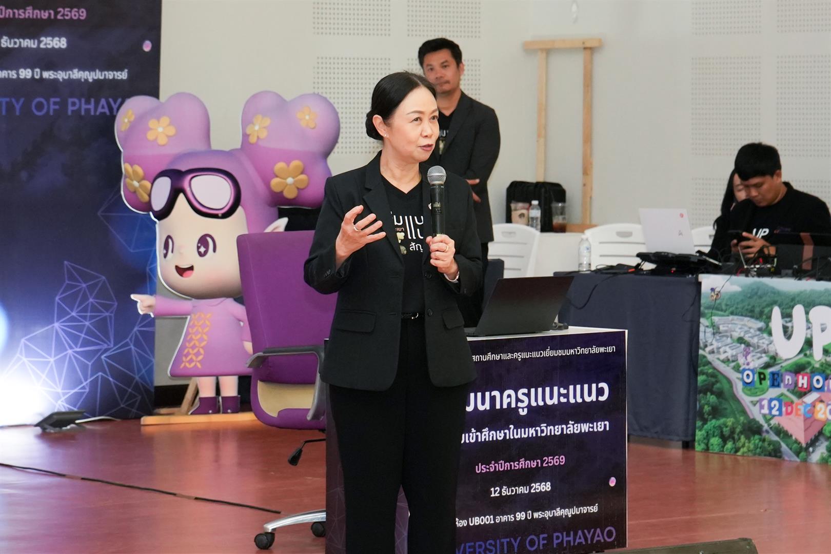 วันศุกร์ที่ 12 ธันวาคม 2568 มหาวิทยาลัยพะเยา โดยกองบริการการศึกษา จัดกิจกรรม UP Open House 2026 ภายใต้โครงการผู้บริหารสถานศึกษาและครูแนะแนวเยี่ยมชมมหาวิทยาลัยพะเยา โดยรองศาสตราจารย์ ดร.สุภกร พงศบางโพธิ์ อธิการบดีมหาวิทยาลัยพะเยา นำทีมผู้บริหาร คณาจารย์ และบุคลากร เข้าร่วมต้อนรับผู้บริหารสถานศึกษา คุณครูแนะแนว และนักเรียนจากจังหวัดพะเยาและจังหวัดใกล้เคียงที่ให้ความสนใจเข้าร่วมงานเป็นจำนวนมาก
