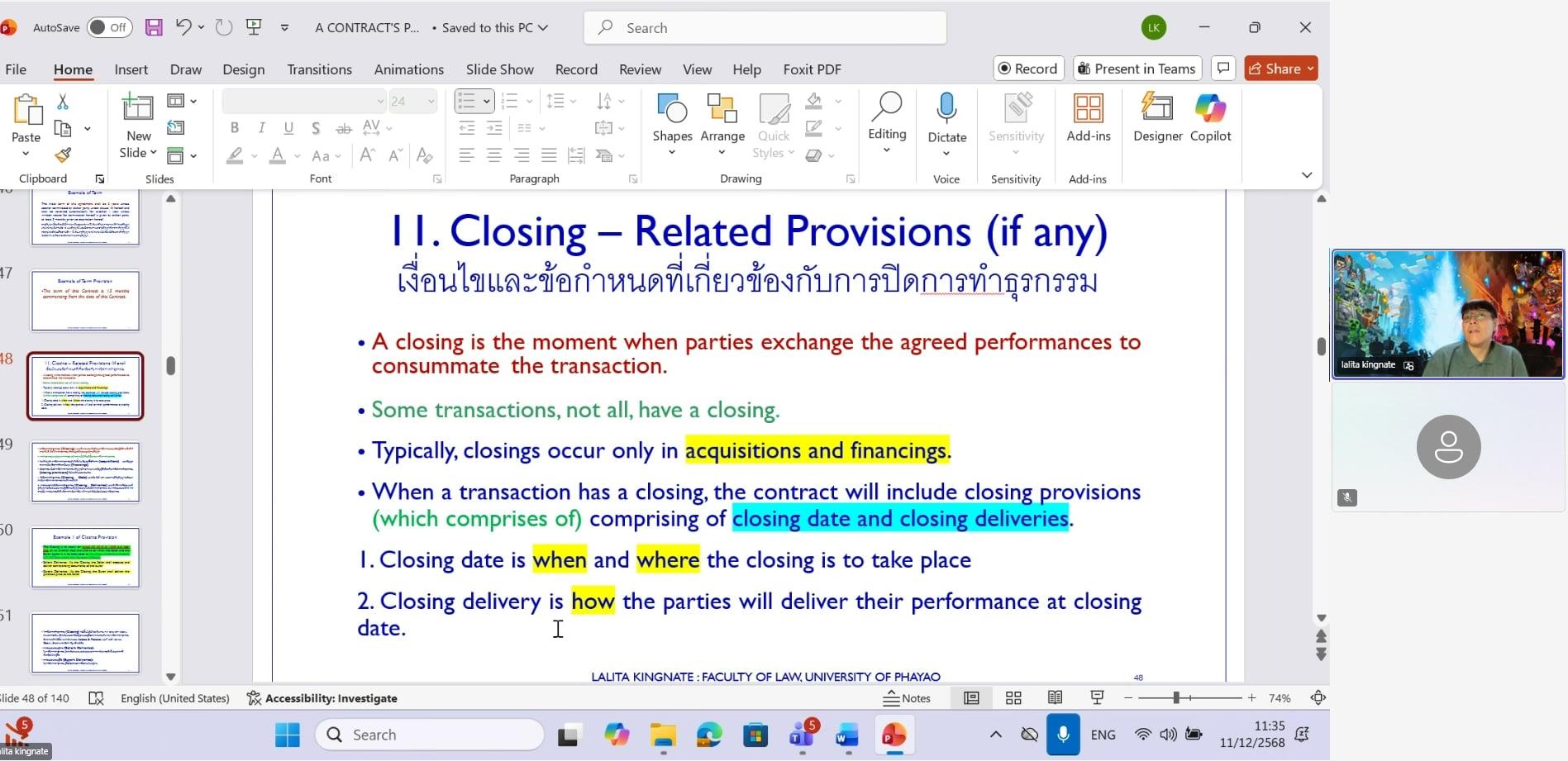 วันพฤหัสบดี ที่ 4 และ 11 ธันวาคม พ.ศ. 2568 คณะนิติศาสตร์ได้จัดกิจกรรมหลักเกณฑ์สัญญาซื้อขาย และการร่างสัญญาภาษาอังกฤษเพื่อปิดทางข้อพิพาท ภายใต้ โครงการคลินิกกฎหมายเอกชน ณ ห้องประชุมคลินิกกฎหมายคณะนิติศาสตร์ โดยมี ผู้ช่วยศาสตราจารย์นิภาภรณ์ ลาภเสถียร เป็นหัวหน้าโครงการ และผู้ช่วยศาสตราจารย์จีรวรรณ สุวรรณสุจริต เป็นผู้รับผิดชอบรายวิชา