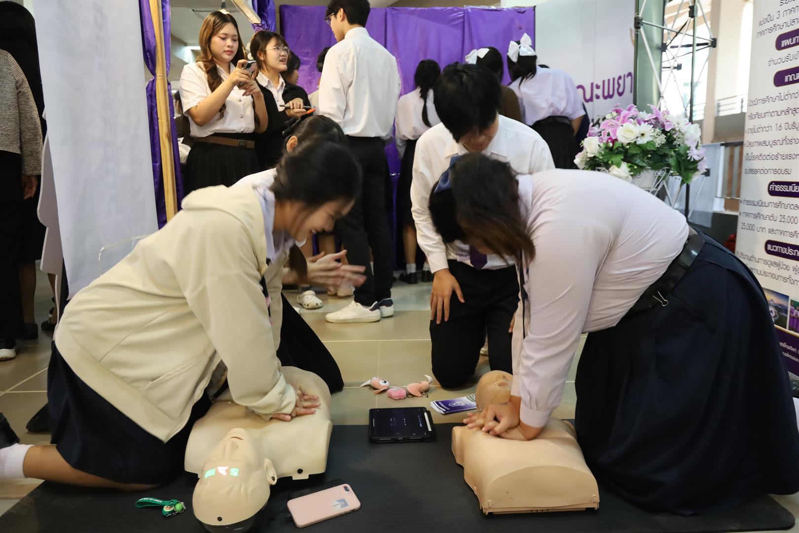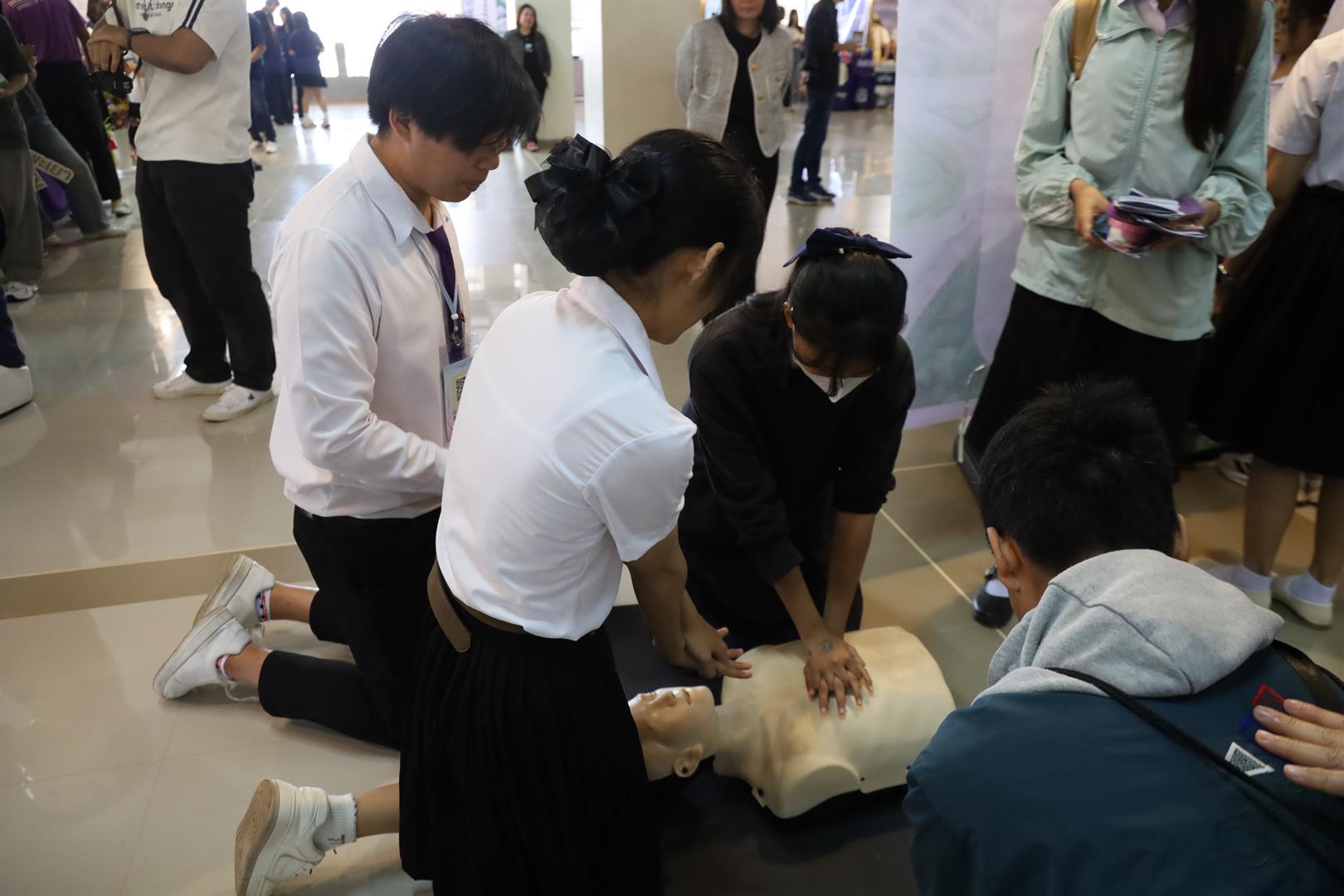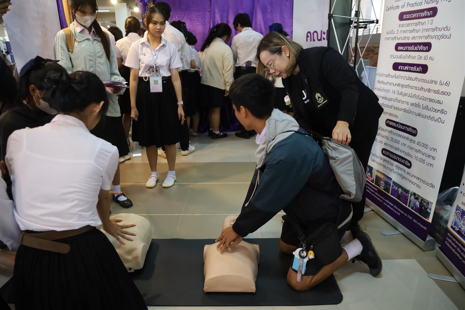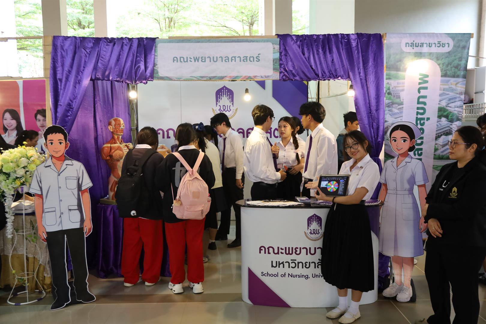 ภายในบูธมีกิจกรรมแนะนำหลักสูตรพยาบาลศาสตรบัณฑิต และหลักสูตรประกาศนียบัตรผู้ช่วยพยาบาล พร้อมทั้งให้ความรู้และสาธิตการช่วยฟื้นคืนชีพขั้นพื้นฐาน (CPR) อย่างถูกต้อง เพื่อเพิ่มโอกาสรอดชีวิตให้แก่ผู้ที่มีภาวะหัวใจหยุดเต้นเฉียบพลันหรือหยุดหายใจ โดยมุ่งเน้นการถ่ายทอดความรู้ให้กับน้อง ๆ นักเรียนที่เข้าร่วมงาน
