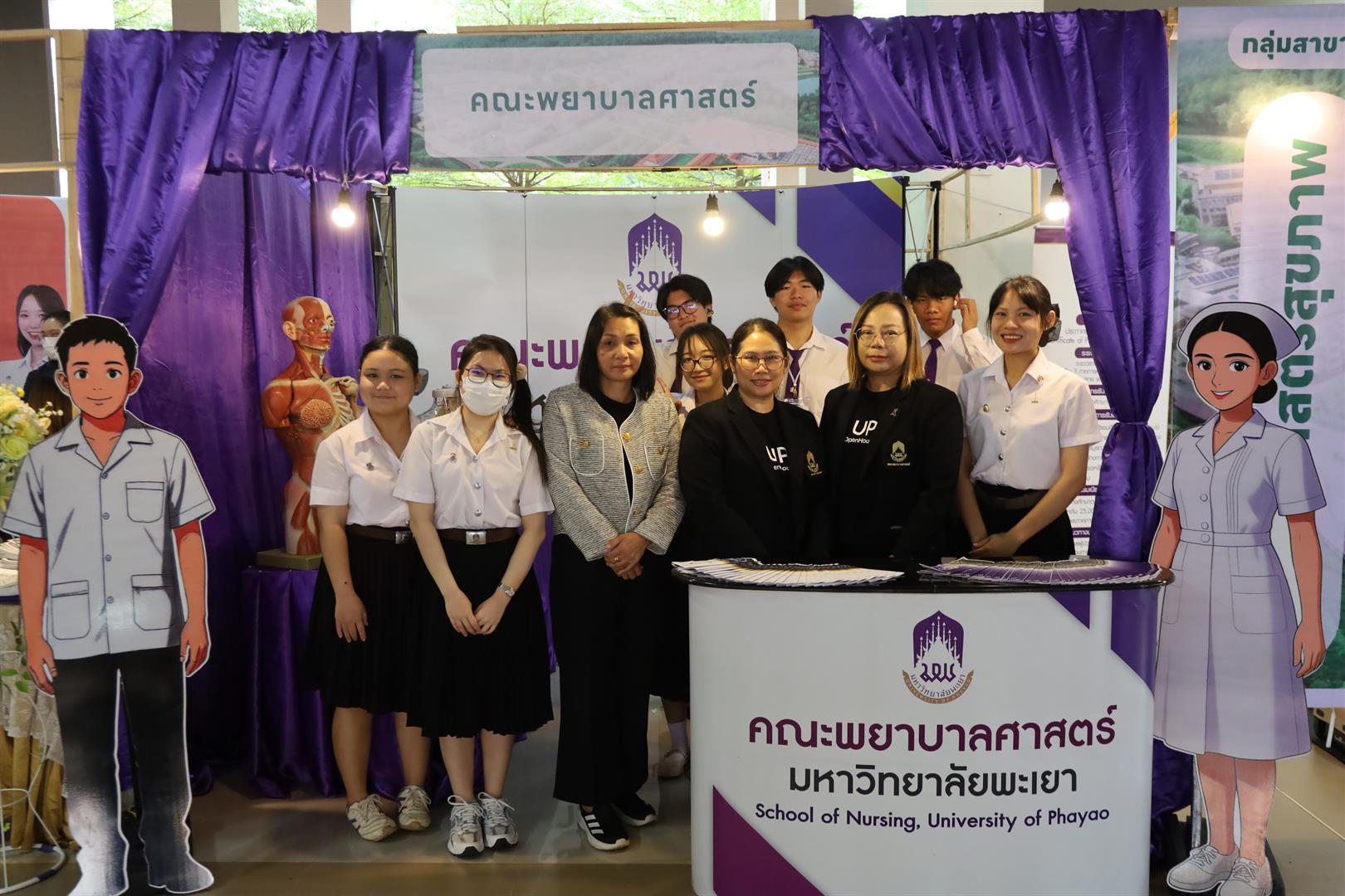 วันศุกร์ที่ 12 ธันวาคม 2568 คณะพยาบาลศาสตร์ มหาวิทยาลัยพะเยา นำโดย ผู้ช่วยศาสตราจารย์ ดร.ดาว เวียงคำ คณบดีคณะพยาบาลศาสตร์ พร้อมด้วย ผู้ช่วยศาสตราจารย์ ดร.อิชยา มอญแสง ประธานหลักสูตรพยาบาลศาสตรบัณฑิต, ดร.กฤติพิชญ์ ฐิติพิชญานันท์ ประธานหลักสูตรประกาศนียบัตรผู้ช่วยพยาบาล คณาจารย์ บุคลากร และนิสิตคณะพยาบาลศาสตร์ ได้เข้าร่วมจัดบูธกิจกรรมในงาน UP OpenHouse 2026