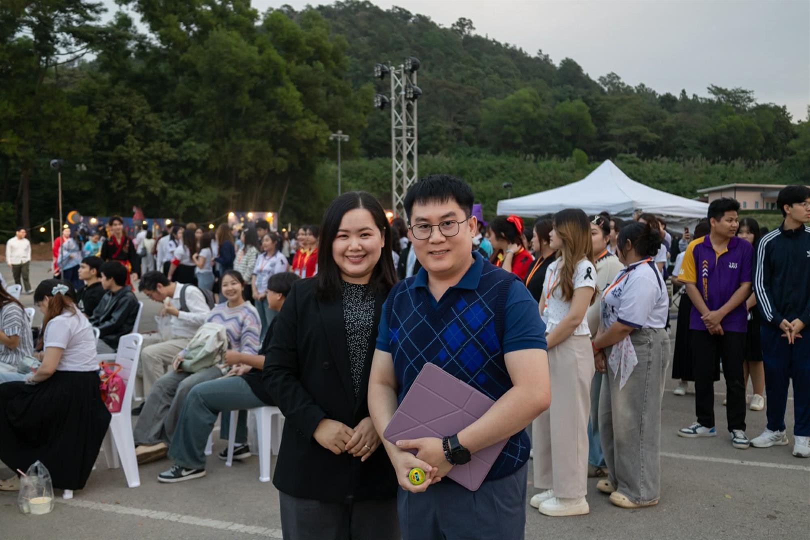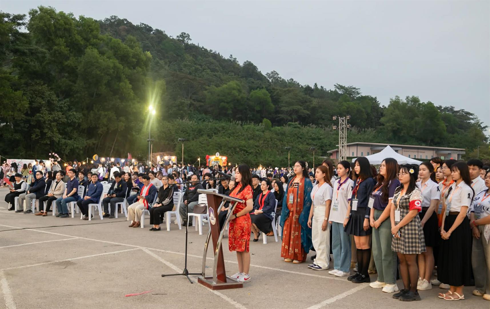 The festival took place from 4:30 PM to 9:30 PM at the UB Quadrangle of the University of Phayao. The event featured an official opening ceremony, various language and cultural performances from different programs within the School of Liberal Arts such as Thai, Japanese, French as well as performances by international students. The agenda also included competitive activities, such as a singing contest for Royal Composition Songs and International Songs, and an International Costume Competition, which attracted significant interest from students and attendees.