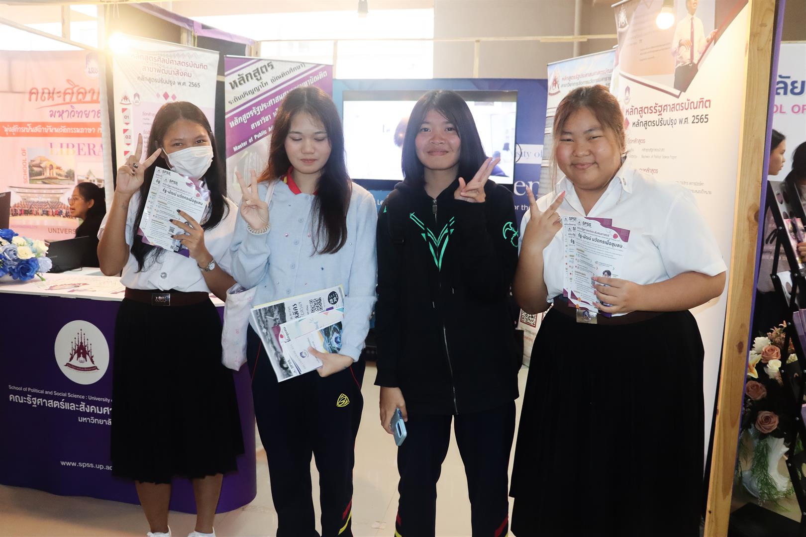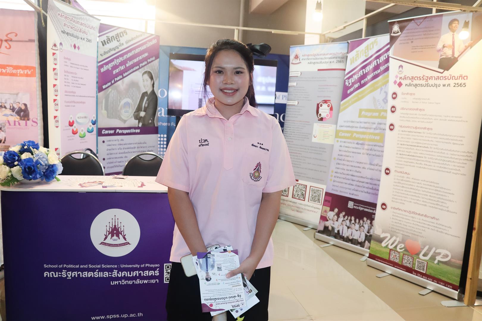 งานในครั้งนี้ได้รับเกียรติจาก รองศาสตราจารย์ ดร.สุภกร พงศบางโพธิ์ อธิการบดีมหาวิทยาลัยพะเยา นำทีมผู้บริหาร คณาจารย์ และบุคลากรของมหาวิทยาลัย ร่วมให้การต้อนรับผู้บริหารสถานศึกษา คุณครูแนะแนว และนักเรียนจากจังหวัดพะเยา อย่างอบอุ่น พร้อมกันนี้ รองศาสตราจารย์ ดร.มนตรา พงษ์นิล คณบดีคณะรัฐศาสตร์และสังคมศาสตร์ พร้อมด้วยคณาจารย์และบุคลากรของคณะ ร่วมให้ข้อมูลและตอบข้อซักถามเกี่ยวกับการจัดการศึกษาอย่างละเอียด