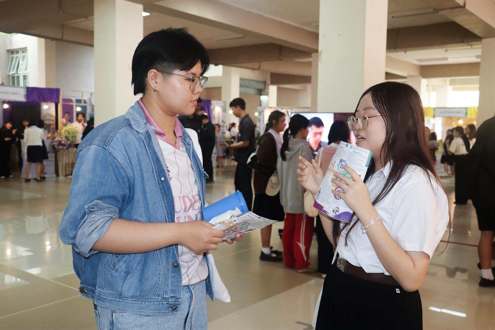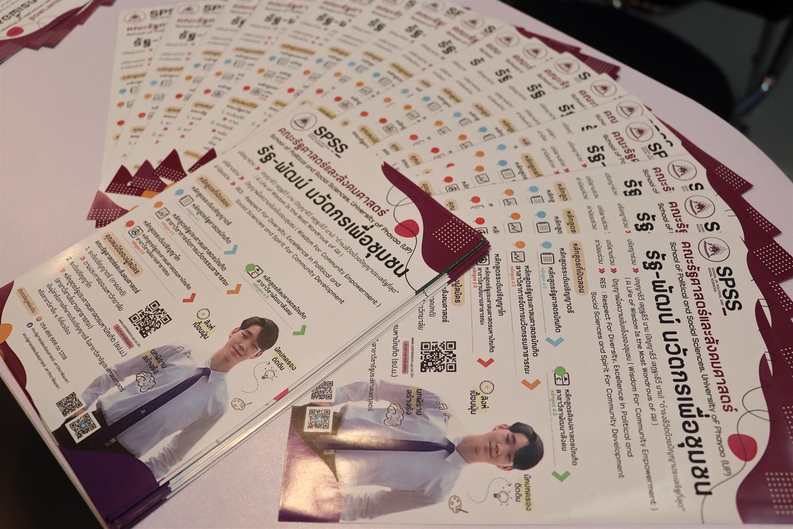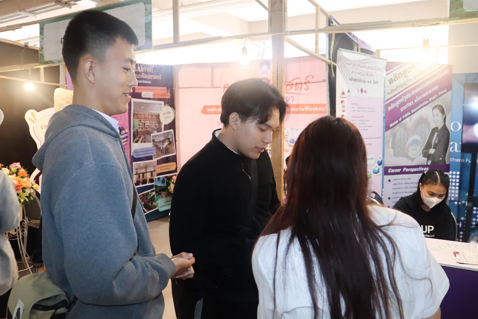 ภายในบูธของคณะรัฐศาสตร์และสังคมศาสตร์ได้มีการแนะนำและตอบข้อซักถามเกี่ยวกับการจัดการศึกษาให้กับคณะผู้บริหารสถานศึกษา ครูแนะแนว และนักเรียน โดยนำเสนอทั้ง 4 หลักสูตร ได้แก่