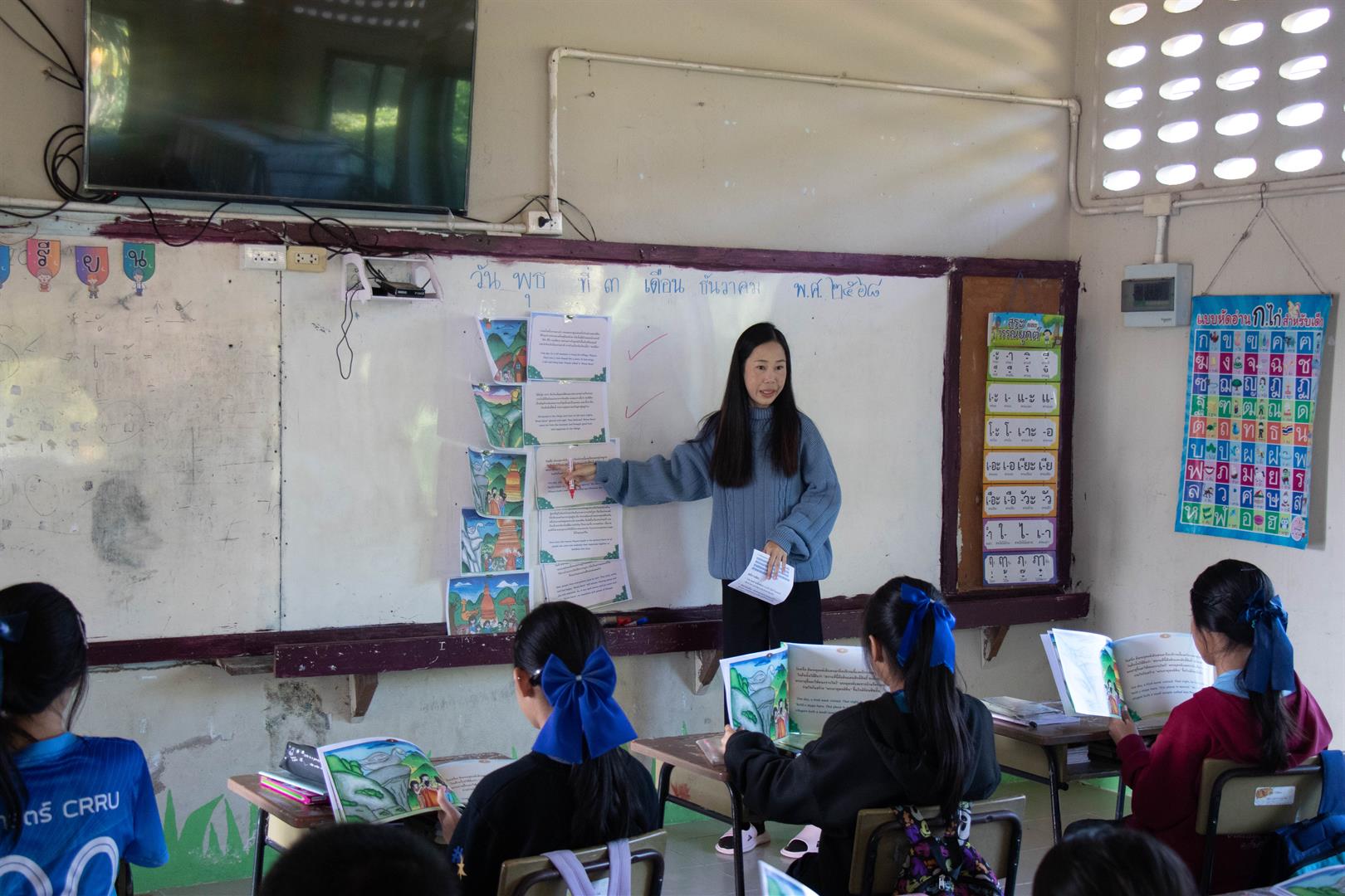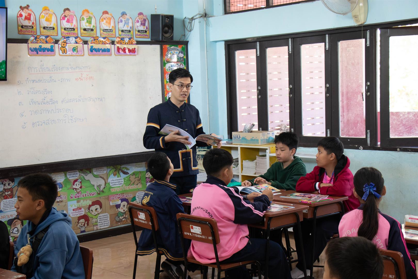 เมื่อวันที่ 2-4 ธันวาคม 2568 คณะศิลปศาสตร์ นำโดย ผู้ช่วยศาสตราจารย์ ดร.คมกฤช ตาชม รองคณบดีฝ่ายวิชาการ พร้อมด้วยบุคลากรสายสนับสนุน ได้ลงพื้นที่ติดตามผลการดำเนินโครงการ เรื่องเล่าสองภาษาจากซอฟต์พาวเวอร์พะเยา: การพัฒนาครูสู่ผู้เรียนด้านทักษะการอ่าน การเขียน และการคิดวิเคราะห์ ภายใต้โครงการพัฒนาคุณภาพการศึกษาและการพัฒนาท้องถิ่น โดยมีสถาบันอุดมศึกษาเป็นพี่เลี้ยง ประจำปีงบประมาณ พ.ศ. 2568 ในกลุ่มโรงเรียนสังกัด สพป. พะเยา เขต 2 ที่เข้าร่วมโครงการ จำนวน 5 โรงเรียน ประกอบด้วย โรงเรียนบ้านขุนกำลัง อ.ปง โรงเรียนบ้านหลวง อ.ปง โรงเรียนบ้านสักทุ่ง อ.จุน โรงเรียนบ้านพวงพะยอม อ.จุน และ โรงเรียนอนุบาลภูซาง (บ้านดอนตัน) อ.ภูซาง ซึ่งในต้นปีงบประมาณ 2568 คณะศิลปศาสตร์ ได้เชิญคณาจารย์และตัวแทนนักเรียนจากกลุ่มโรงเรียนดังกล่าวฯ เข้าร่วมผลิตนิทานสองภาษา เพื่อพัฒนาการอ่านออกเขียนได้ และการคิดวิเคราะห์ของนักเรียน ครั้งนี้จึงเป็นการติดตามความคืบหน้าและประเมินผลการดำเนินโครงการ โดยได้มีการเข้าร่วมสังเกตการณ์ การจัดการเรียนการสอนด้วยนิทานเรื่องเล่าสองภาษาที่แต่ละโรงเรียนได้จัดทำขึ้น รวมถึงให้นักเรียนทำแบบประเมินความพึงพอใจ และสัมภาษณ์ผู้อำนวยการโรงเรียน ครูผู้สอน และนักเรียน ด้านประสิทธิภาพในการใช้นิทานเรื่องเล่าสองภาษาจากชุมชนเพื่อพัฒนาการอ่านออกเขียนได้ ทั้งภาษาไทยและภาษาอังกฤษ