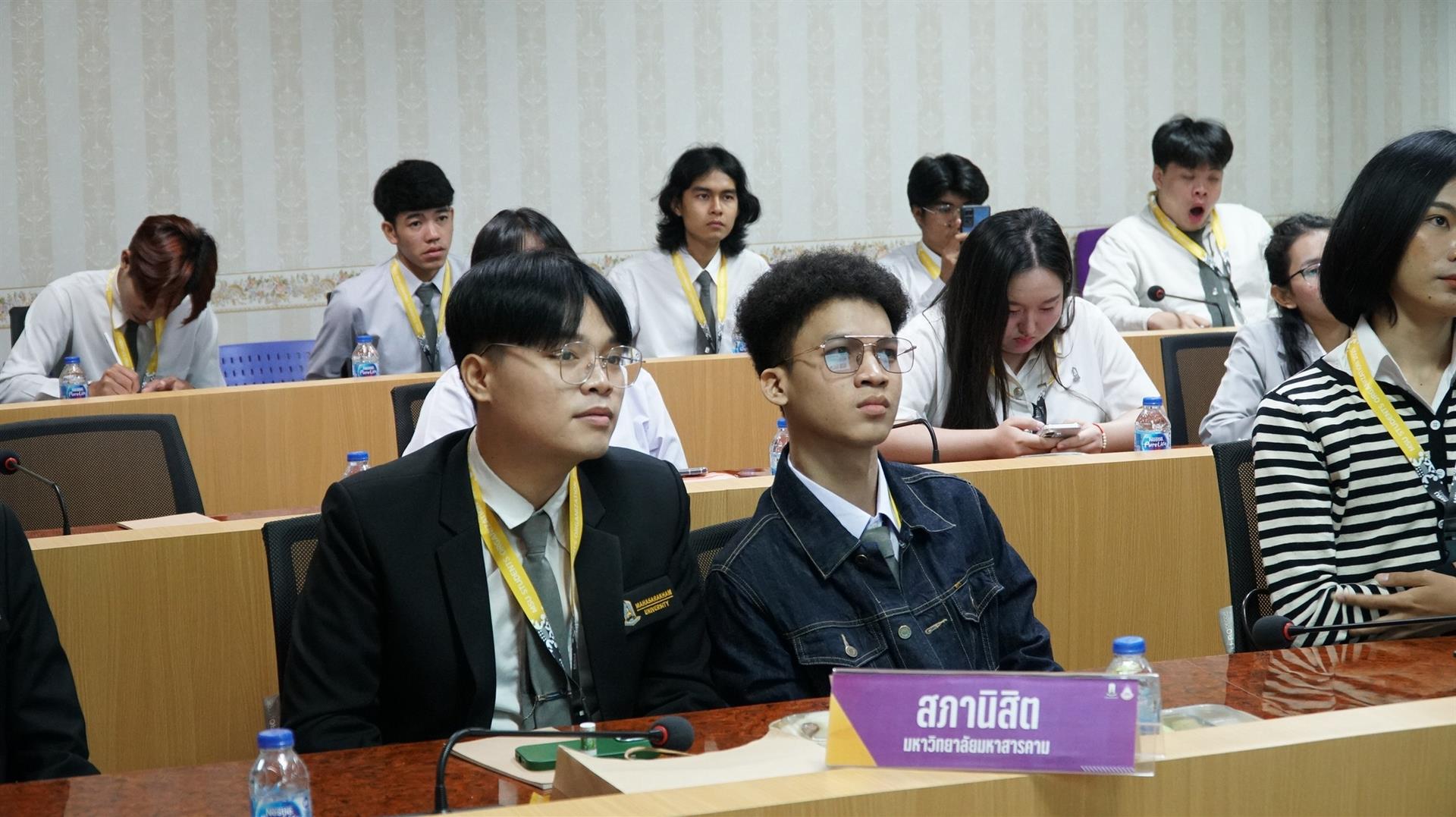 วันอังคาร ที่ 23 ธันวาคม 2568 ณ ห้องประชุมฟ้ามุ่ย อาคารสงวนเสริมศรี มหาวิทยาลัยพะเยา กองกิจการนิสิตได้เปิดบ้านต้อนรับคณะศึกษาดูงานจากมหาวิทยาลัยมหาสารคาม ภายใต้โครงการพัฒนาศักยภาพผู้นำนิสิต สู่การเป็นผู้นำ Smart MSU เพื่อแลกเปลี่ยนเรียนรู้และพัฒนาระบบการบริหารจัดการกิจกรรมนิสิตนักศึกษาร่วมกัน กล่าวต้อนรับโดย ดร.วุฒิชัย ไชยรินคำ รองอธิการบดีฝ่ายคุณภาพนิสิต และ ดร.จารุวรรณ โปษยานนท์ ผู้ช่วยอธิการบดีและมอบของที่ระลึกแก่คณะศึกษาดูงาน ซึ่งนำโดย ดร.อนงค์ภานุช ปะนะทังถิรวิทย์ ผู้อำนวยการกองกิจการนิสิต มหาวิทยาลัยมหาสารคาม พร้อมด้วยบุคลากรและนิสิต