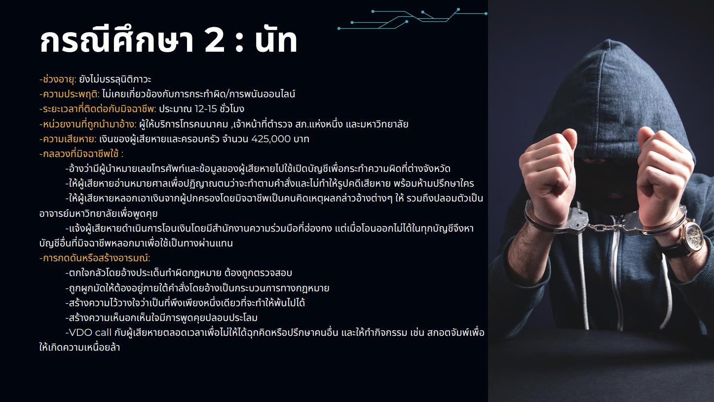 2. Policy Watch, (2568). “รับมืออาชญากรรมออนไลน์ แค่กฎหมายยังไม่พอ.” https://policywatch.thaipbs.or.th/article/government-250?fbclid=IwY2xjawO4fFRleHRuA2FlbQIxMABicmlkETEwYmpNQ0M2MnFmZE41c1U5c3J0YwZhcHBfaWQQMjIyMDM5MTc4ODIwMDg5MgABHsS96WJHXNuCQEOtZlmwQAAJ3Xtg15EYLCPSQFJM15wi4x0cQvV-5bTnbAAJ_aem_CU2as0HLIu3pZggYubxSCQ