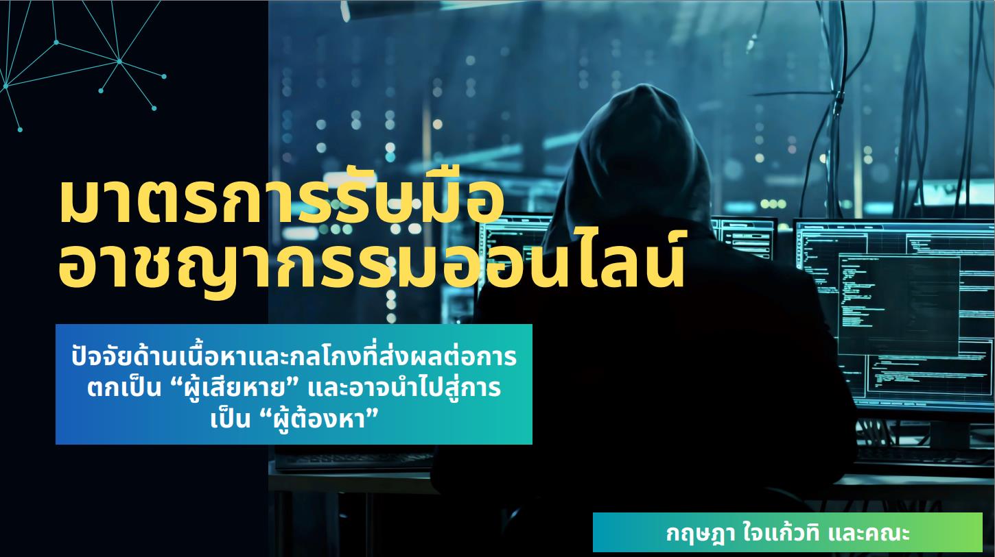 หมายเหตุ: การนำเสนองานวิจัยในหัวข้อ“ปัจจัยด้านเนื้อหาและกลโกงที่ส่งผลต่อการตกเป็นผู้เสียหายและอาจนำไปสู่การเป็นผู้ต้องหา” เป็นส่วนหนึ่งของ โครงการวิจัย “การศึกษาปัจจัยด้านเนื้อหาหรือกลโกงที่ส่งผลต่อการตกเป็นผู้เสียหายในอาชญากรรมออนไลน์” โดย ผศ. กฤษฎา ใจแก้วทิ หัวหน้าโครงการวิจัย และผู้วิจัยร่วม ได้แก่ อ. ปิยอร เปลี่ยนผดุง อ. พรณัชชา ทับพันบุบผา อ. พลอยขวัญ เหล่าอมต และ ผศ. ดร. ณัฐ สุขเวชชวรกิจ คณะนิติศาสตร์ มหาวิทยาลัยพะเยา ภายใต้ “โครงการศึกษาสถานการณ์ภัยคุกคามทางออนไลน์” ของคณะเศรษฐศาสตร์ จุฬาลงกรณ์มหาวิทยาลัย โดยได้รับการสนับสนุนงบประมาณโดย สำนักงานกองทุนสนับสนุนการสร้างเสริมสุขภาพ (สสส.) ร่วมกับสำนักงานกองทุนสนับสนุนการสร้างเสริมสุขภาพ (สสส.)