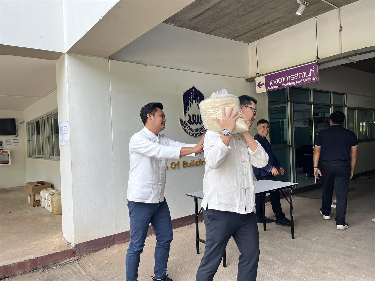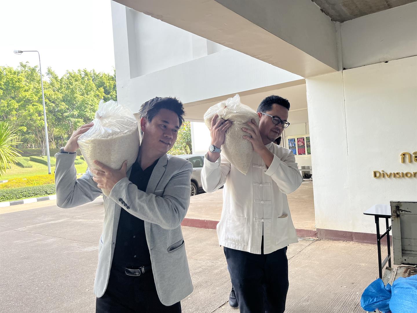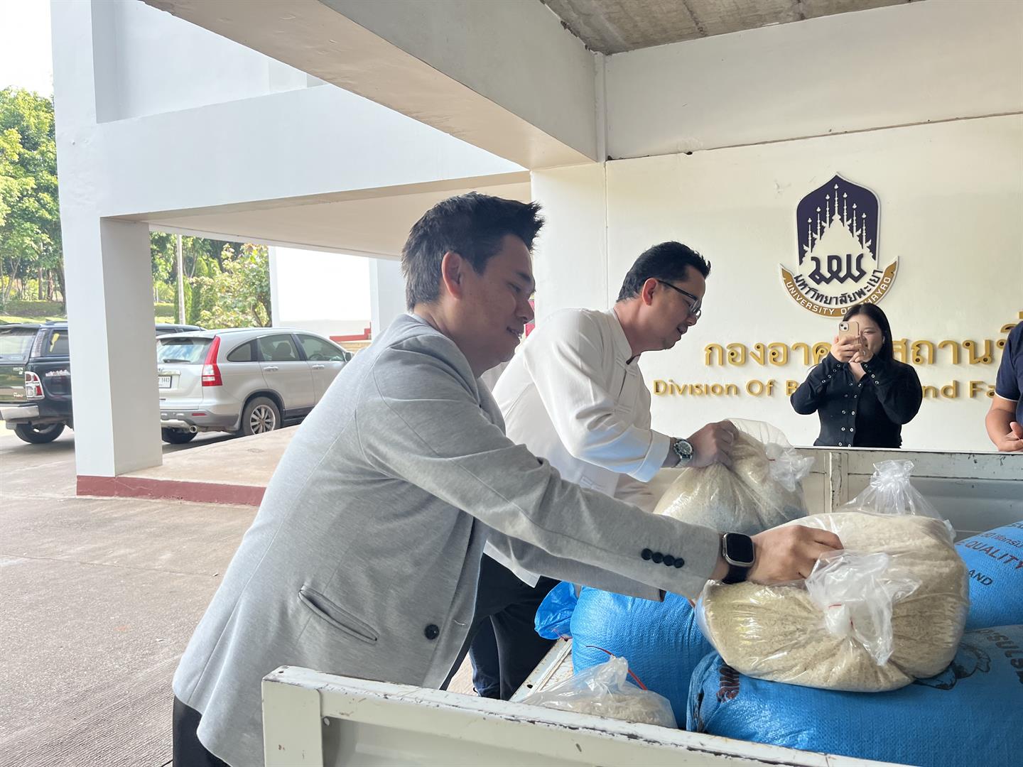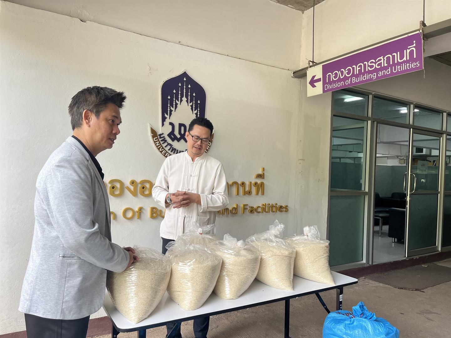 กองอาคารสถานที่ส่งมอบข้าวหอมสยามจากแปลงสาธิตนาขั้นบันได สู่ โรงครัวอิ่มใจ๋ เพื่อสวัสดิการนิสิต