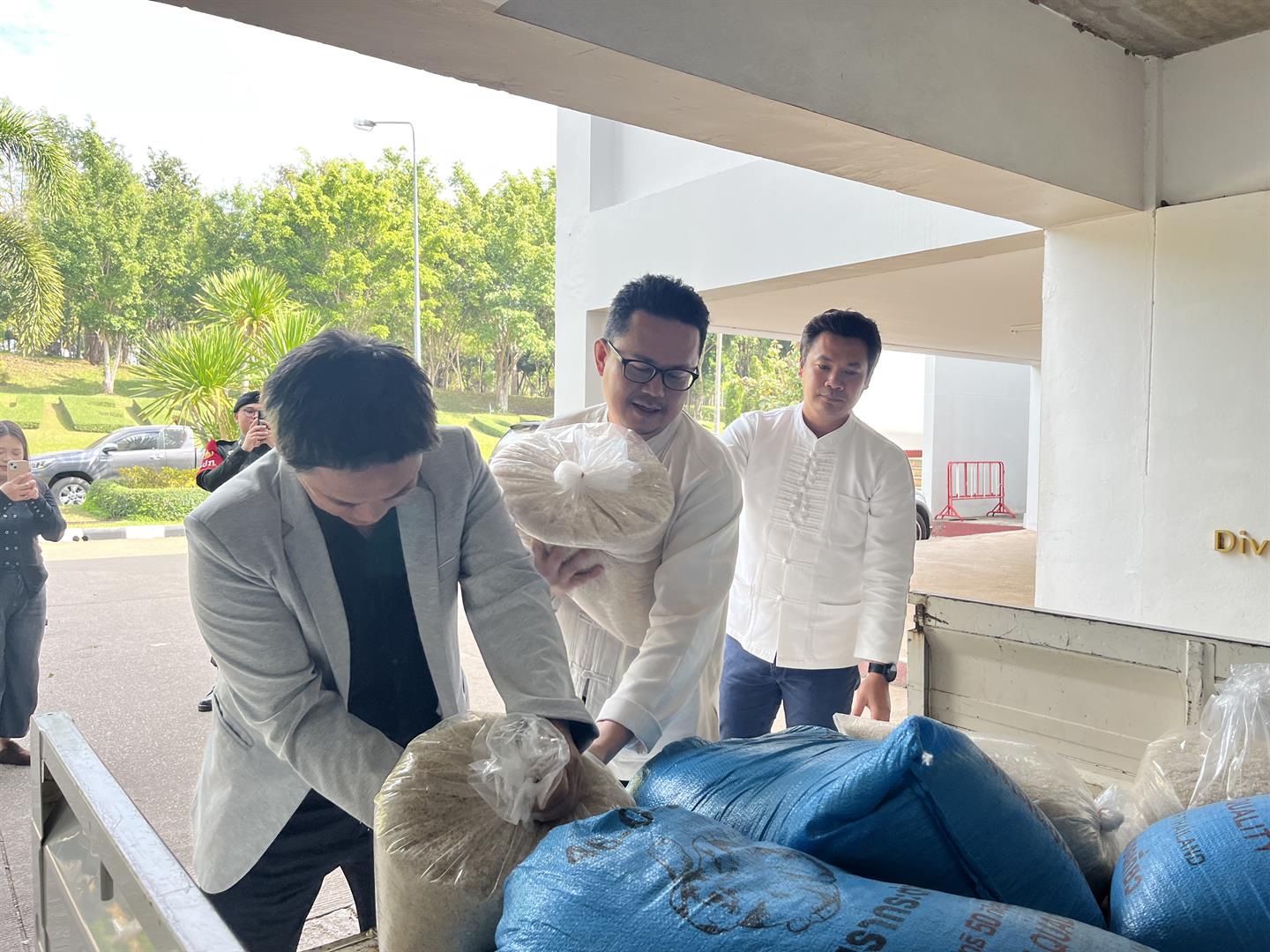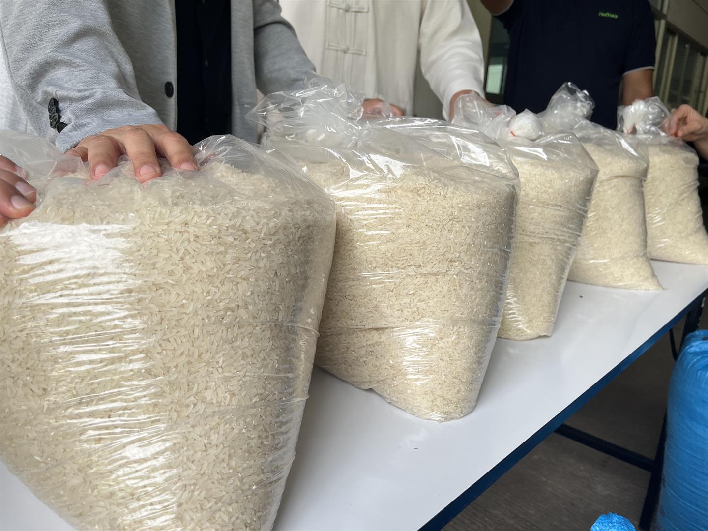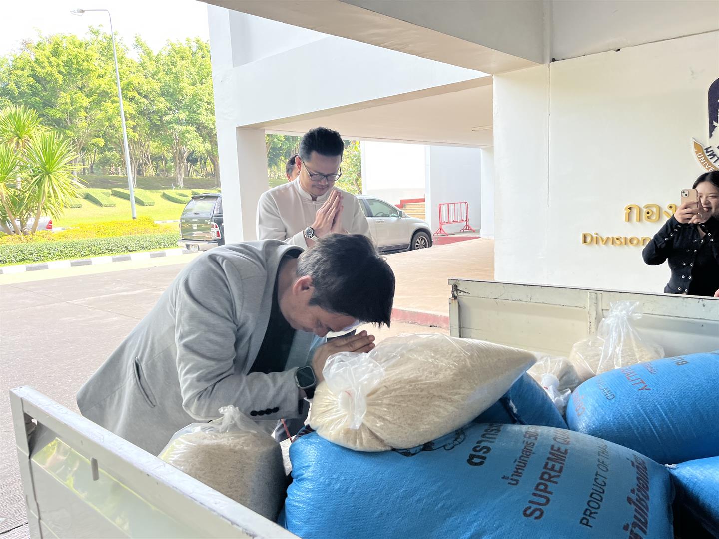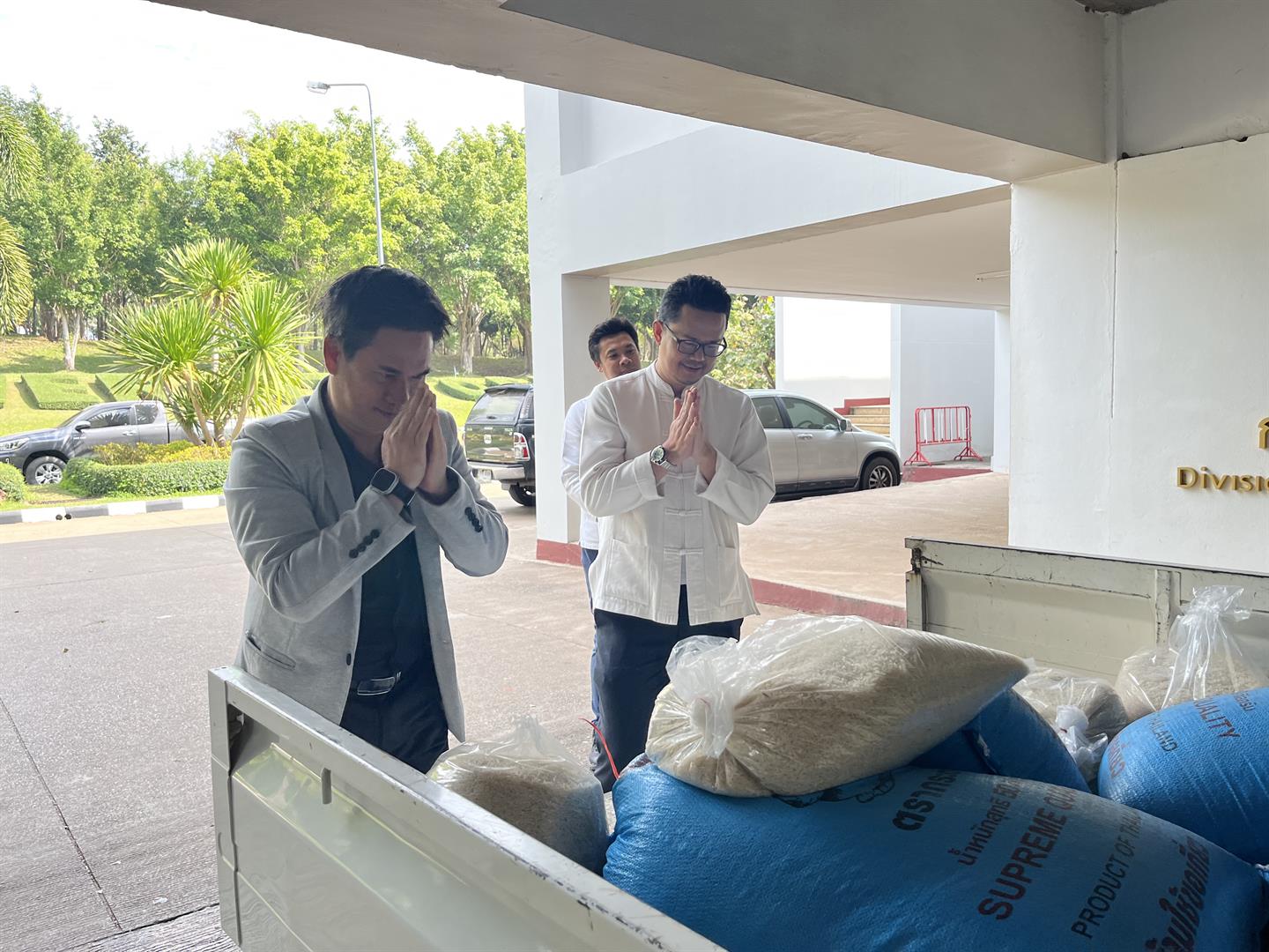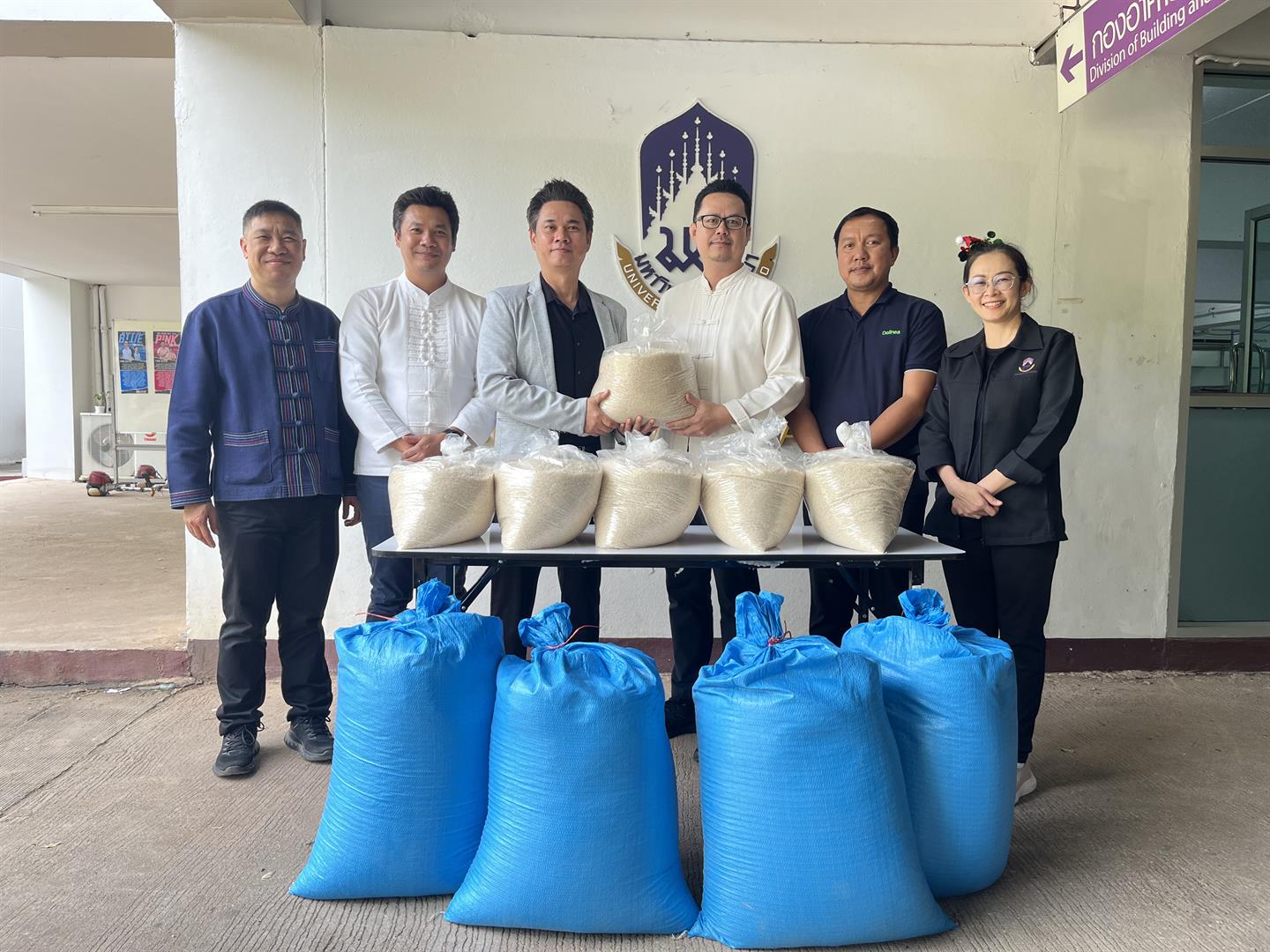 กองอาคารสถานที่ส่งมอบข้าวหอมสยามจากแปลงสาธิตนาขั้นบันได สู่ โรงครัวอิ่มใจ๋ เพื่อสวัสดิการนิสิต