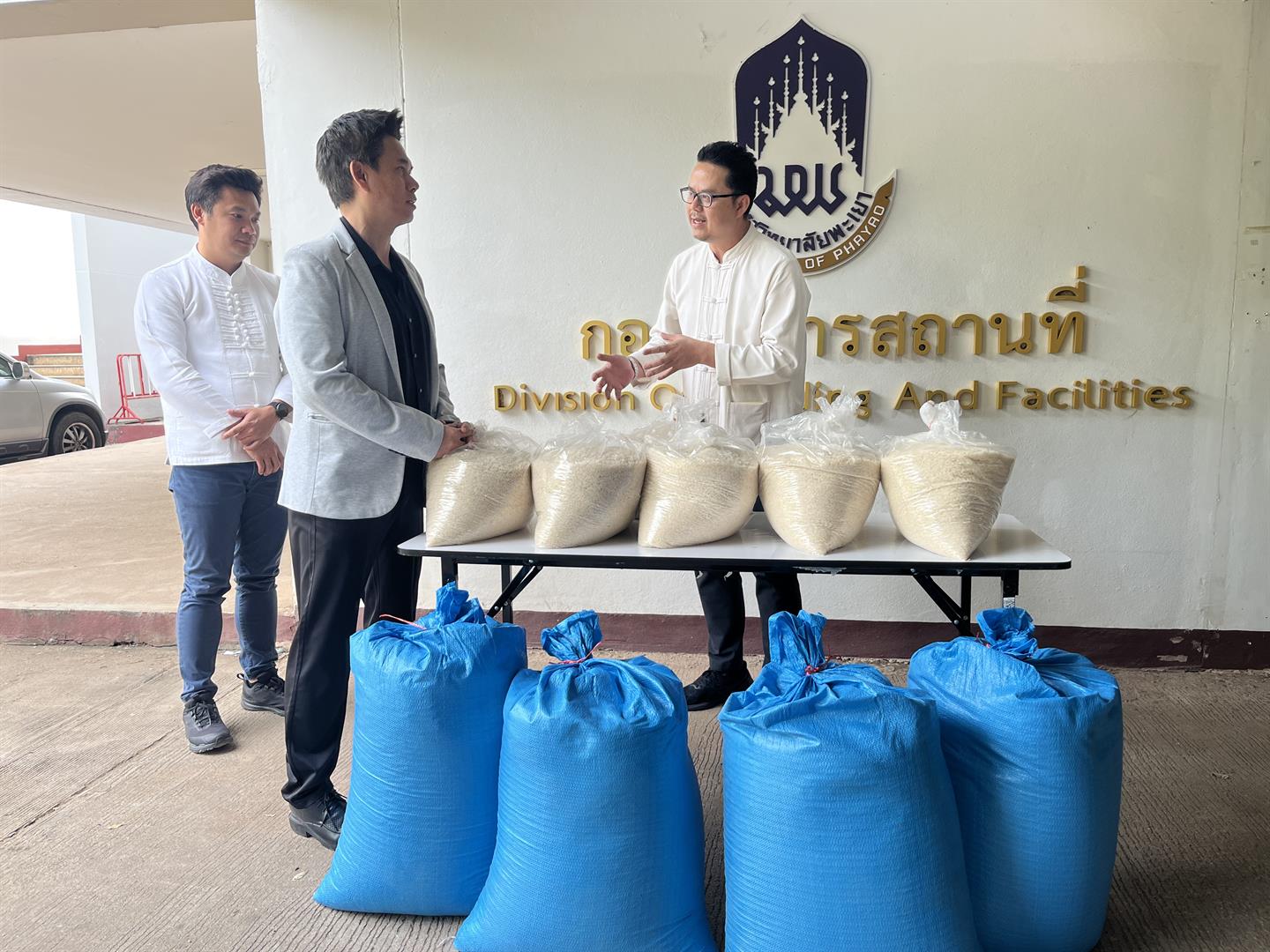 กองอาคารสถานที่ มหาวิทยาลัยพะเยา นำโดย ผู้ช่วยศาสตราจารย์สุวิทย์ ปัญญาวงศ์ รองอธิการบดีฝ่ายสิ่งแวดล้อมและภูมิทัศน์ พร้อมด้วย นายณัฐวุฒิ สมยาโรน ผู้ช่วยอธิการบดี, นายจีระวัฒน์ หมั่นงาน ผู้อำนวยการกองอาคารสถานที่ และหัวหน้างานกองอาคารสถานที่ ร่วมส่งมอบ ข้าวพันธุ์หอมสยาม จำนวนกว่า 400 กิโลกรัม ให้แก่กองกิจการนิสิต โดยมี ดร.วุฒิชัย ไชยรินคำ รองอธิการบดีฝ่ายคุณภาพนิสิต เป็นผู้รับมอบ