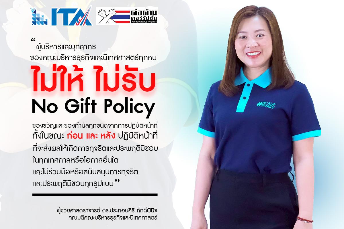 คณะบริหารธุรกิจและนิเทศศาสตร์ มหาวิทยาลัยพะเยา ขอประกาศเจตนารมณ์ในการดำเนินงานตามนโยบาย No Gift Policy เพื่อส่งเสริมคุณธรรม ความโปร่งใส และการป้องกันการทุจริต โดยมีแนวปฏิบัติ ดังนี้