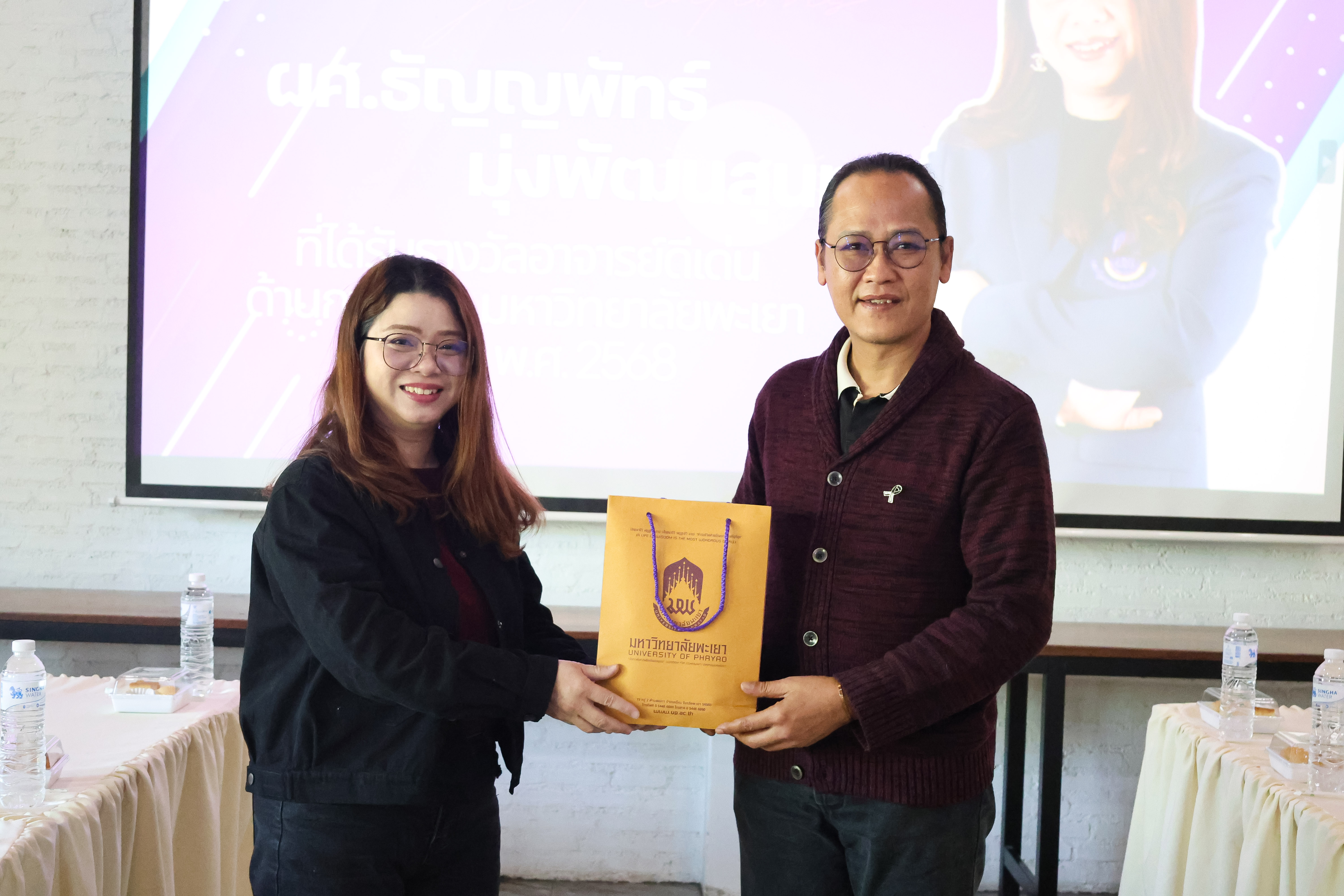 ภายในการประชุมยังมีการมอบของที่ระลึกแก่บุคลากรที่มีผลงานดีเด่น ได้แก่ ผู้ช่วยศาสตราจารย์ธัญญพัทธ์ มุ่งพัฒนสุนทร อาจารย์ประจำหลักสูตรศิลปศาสตรบัณฑิต สาขาวิชาพัฒนาสังคม ในโอกาสได้รับรางวัลอาจารย์ดีเด่นด้านการสอน มหาวิทยาลัยพะเยา ประจำปี พ.ศ. 2568 และดร.กฤติยา อนุวงศ์อาจารย์ประจำหลักสูตรศิลปศาสตรบัณฑิต สาขาวิชาพัฒนาสังคม ในโอกาสได้รับตำแหน่งผู้ช่วยศาสตราจารย์(เทียบ) และผู้ช่วยศาสตราจารย์ ดร.ดารารัตน์ คำเป็ง อาจารย์ประจำหลักสูตรรัฐศาสตรบัณฑิตในโอกาสผ่านการประเมินอาจารย์มืออาชีพ (UP-PSF2) ระดับ 2