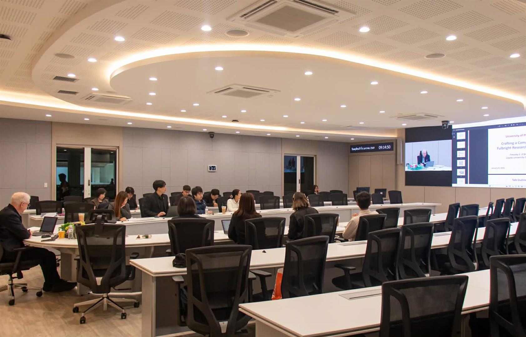 การบรรยายได้รับเกียรติจาก Professor Dr. Timothy E. O’Brien อาจารย์ผู้ทรงคุณวุฒิจาก Loyola University Chicago ประเทศสหรัฐอเมริกา เป็นวิทยากร ซึ่งได้ถ่ายทอดความรู้และประสบการณ์เกี่ยวกับการเขียนข้อเสนอโครงการวิจัยเพื่อขอรับทุน Fulbright อย่างมีประสิทธิภาพ ครอบคลุมการออกแบบโจทย์วิจัย การกำหนดวัตถุประสงค์ การสร้างความโดดเด่นของโครงการ ตลอดจนข้อควรคำนึงในการแข่งขันในระดับนานาชาติ