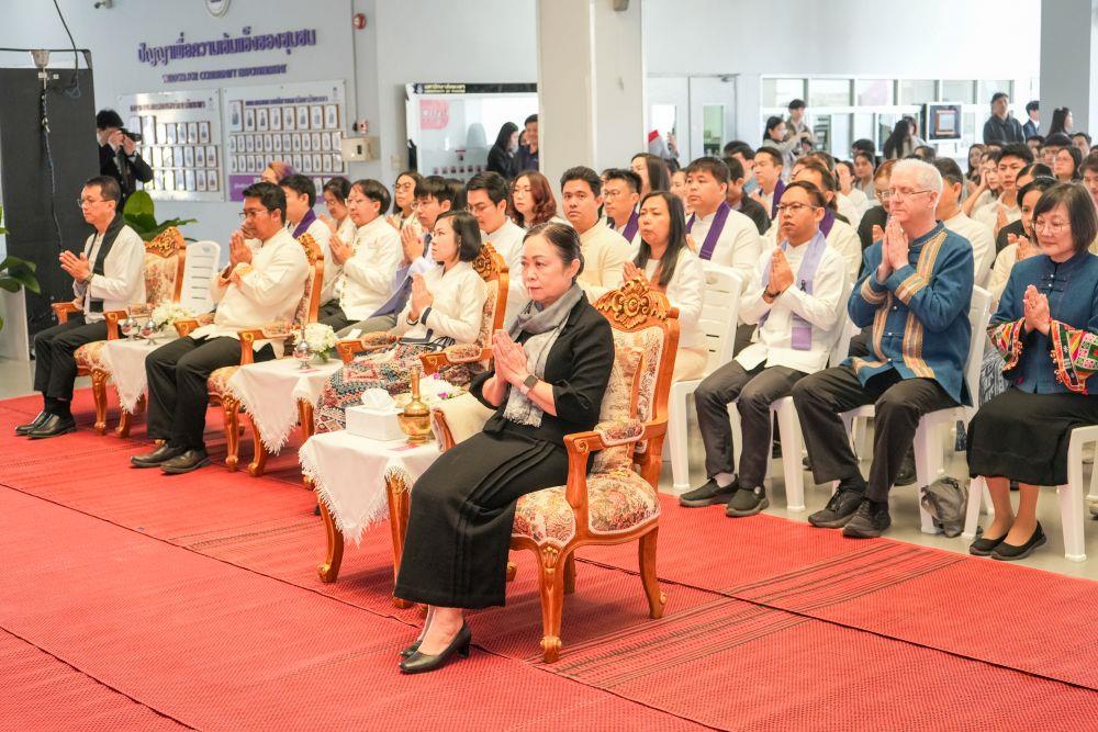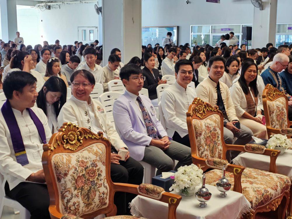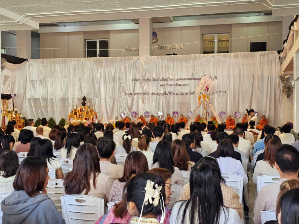 เมื่อวันที่ 9 มกราคม 2569 เวลา 9.00 น. คณบดีคณะสหเวชศาสตร์ ผู้ช่วยศาสตราจารย์ ดร.พุทธิพงษ์ พลคำฮัก พร้อมด้วยบุคลากรสำนักงานคณะสหเวชศาสตร์ เข้าร่วมทำบุญ เนื่องในวันขึ้นปีใหม่ พ.ศ.2569 เฉลิมฉลองครบรอบ 16 ปี มหาวิทยาลัยพะเยา “ม.พะเยาร่วมใจ๋ ฮ่วมบุญขึ้นปี๋ใหม่ น้อมเทิดไท้ พระพันปีหลวง” ซึ่งจัดขึ้น ณ ลานอเนกประสงค์ ชั้น 1 อาคารสำนักงานอธิการบดี โดยกิจกรรมนี้จัดขึ้นเพื่อให้บุคลากรในมหาวิทยาลัยฯ ได้ร่วมพิธีทำบุญปีใหม่ เพื่อเป็นสิริมงคลแก่ชีวิต อีกทั้งร่วมกันธำรงรักษามรดกทางวัฒนธรรมของชาวล้านนา นอกจากนี้เป็นการน้อมรำลึกใน พระมหากรุณาธิคุณอันหาที่สุดมิได้แด่ สมเด็จพระนางเจ้าสิริกิติ์ พระบรมราชินีนาถ พระบรมราชชนนีพันปีหลวง เพื่อเป็นสิริมงคลแก่บุคลากร และสืบสานวัฒนธรรมอันดีงามสืบไป
