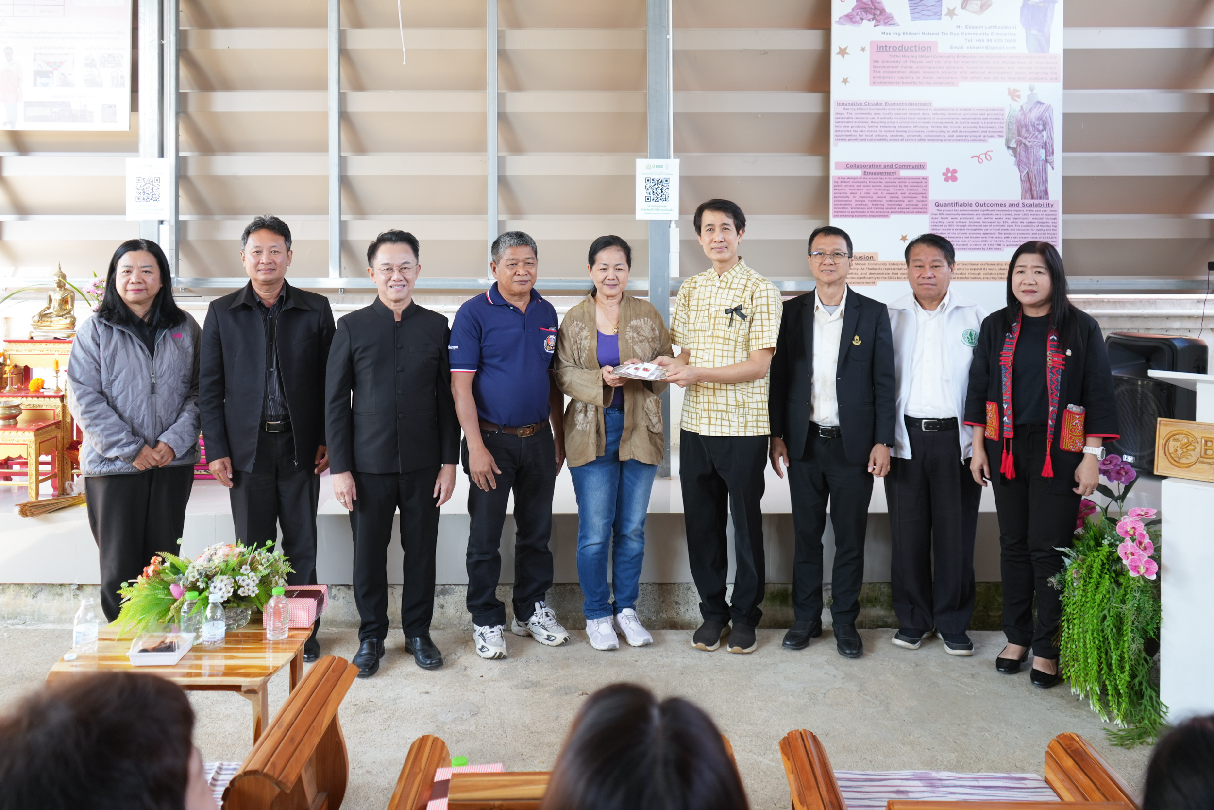 ศูนย์เรียนรู้แห่งนี้จะทำหน้าที่เป็นพื้นที่เรียนรู้และถ่ายทอดองค์ความรู้แบบครบวงจร ตั้งแต่การสำรวจและคัดเลือกวัตถุดิบชีวภาพในท้องถิ่น การพัฒนากระบวนการสกัดและสูตรสีธรรมชาติที่มีคุณภาพและปลอดภัย การออกแบบลวดลายผ้ามัดย้อมแบบชิโบริที่สะท้อนอัตลักษณ์ชุมชน ตลอดจนการพัฒนาผลิตภัณฑ์ การยกระดับมาตรฐานสินค้า การสร้างแบรนด์ และการตลาดชุมชน เพื่อเพิ่มขีดความสามารถในการแข่งขัน และสร้างรายได้ที่มั่นคงให้แก่กลุ่มวิสาหกิจชุมชนอย่างยั่งยืน
