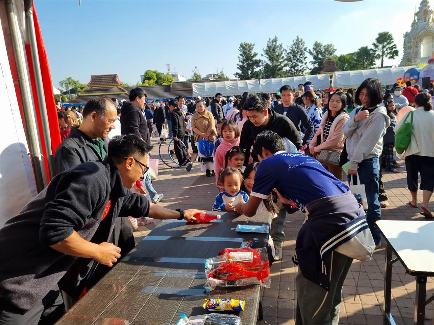 ศูนย์ปฏิบัติการจิตอาสา กองกิจการนิสิต ร่วมจัดกิจกรรมวันเด็กแห่งชาติ ปี 2569 กับเทศบาลเมืองพะเยา ในวันเสาร์ที่ 10 มกราคม 2569 ณ ลานอนุสาวรีย์พ่อขุนงำเมือง จังหวัดพะเยา โดยมีนางสาวอรอาภา โล่ห์วีระ ผู้ว่าราชการจังหวัดพะเยา เป็นประธานในพิธี การจัดงานวันเด็กแห่งชาติในครั้งนี้ มีวัตถุประสงค์เพื่อส่งเสริมให้เด็กและเยาวชนได้รับการพัฒนาอย่างรอบด้าน ทั้งด้านร่างกาย อารมณ์ สังคม และสติปัญญา ผ่านกิจกรรมการเรียนรู้ที่หลากหลาย เพื่อเสริมสร้างพัฒนาการและพัฒนาทักษะชีวิต ภายใต้แนวคิด “Play and Learn : เพลย์แอนด์เลิร์น” ที่เน้นการเรียนรู้ผ่านการเล่น การลงมือปฏิบัติจริง และการมีส่วนร่วมอย่างสร้างสรรค์ร่วมกับครอบครัวและเด็กเยาวชนจากหลากหลายพื้นที่ ทั้งนี้มหาวิทยาลัยพะเยา นำโดย ศูนย์ปฏิบัติการจิตอาสา กองกิจการนิสิต และชมรมนิสิตจิตอาสามหาวิทยาลัยพะเยา ได้ร่วมออกบูธกิจกรรม โดยมีเกมส์เสริมทักษะ ตอบคำถาม และมีของรางวัลแจกจ่ายให้กับเด็กๆที่ร่วมกิจกรรมกว่า 500 ชิ้น และมีสมุดระบายสีทำมือ ที่นิสิตจิตอาสา ม.พะเยา ร่วมทำเพื่อนำมาแจกจ่ายให้แก่เด็กๆในวันเด็กแห่งชาติอีกกว่า 200 เล่ม