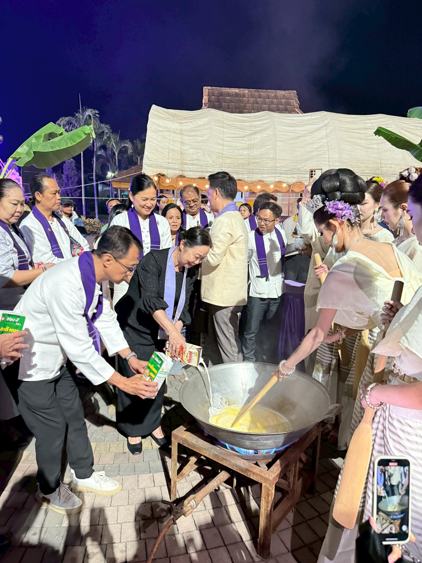 กิจกรรมวันนี้ประกอบด้วยพิธีเจริญพระพุทธมนต์เพื่อความเป็นสิริมงคลแก่บ้านเมืองและประชาชน และพิธีกวนข้าวทิพย์ตามขนบธรรมเนียมโบราณ อันเป็นกระบวนการที่สะท้อนถึงพลังความร่วมมือของชุมชน ความศรัทธาในพระพุทธศาสนา และการสืบทอดภูมิปัญญาท้องถิ่นจากรุ่นสู่รุ่น โดยมีผู้ว่าราชการจังหวัดพะเยา คณะผู้บริหารมหาวิทยาลัยพะเยา หัวหน้าส่วนราชการ ผู้นำท้องที่ ผู้นำท้องถิ่น ตลอดจนประชาชนและนิสิตเข้าร่วมกิจกรรมอย่างพร้อมเพรียง