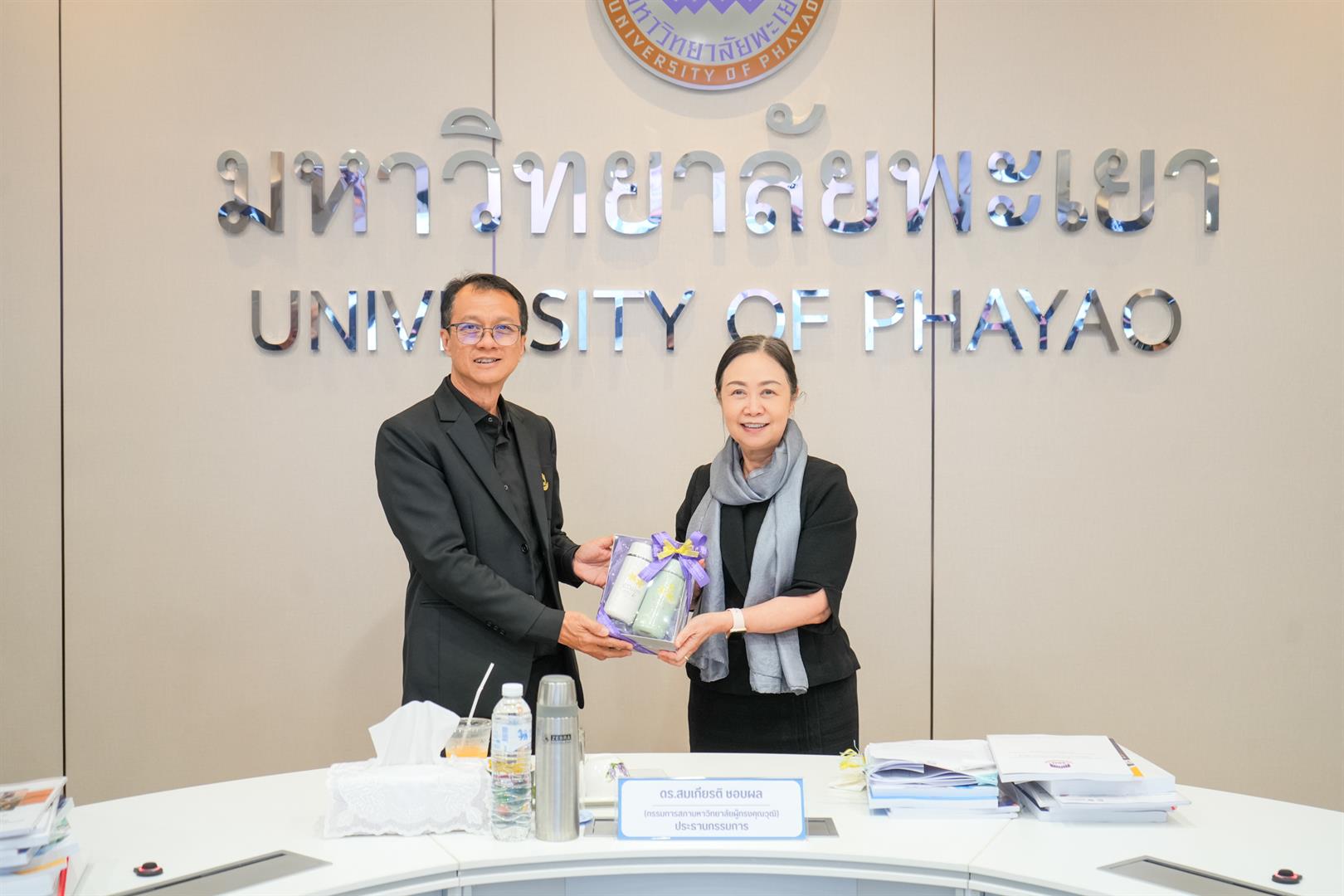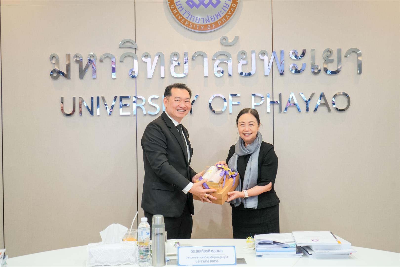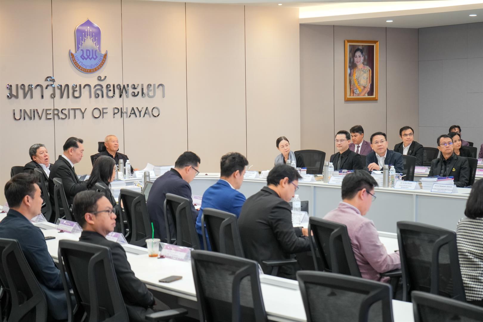 วันพฤหัสบดีที่ 22 มกราคม 2569 รองศาสตราจารย์ ดร.สุภกร พงศบางโพธิ์ อธิการบดีมหาวิทยาลัยพะเยา พร้อมด้วยผู้บริหาร เข้าร่วมการติดตามและประเมินผลการดำเนินงานของหัวหน้าส่วนงาน ประจำปีงบประมาณ 2568 โดยมี ดร.สมเกียรติ ชอบผล อุปนายกสภามหาวิทยาลัยพะเยา เป็นประธานกรรมการ การติดตามและประเมินผลในครั้งนี้ ได้รับเกียรติจากคณะกรรมการติดตามและประเมินผลการดำเนินงานของหัวหน้าส่วนงาน ประกอบด้วยกรรมการสภามหาวิทยาลัยผู้ทรงคุณวุฒิ ผู้ทรงคุณวุฒิจากภายนอกมหาวิทยาลัย อธิการบดีมหาวิทยาลัยพะเยา และประธานสภาพนักงานมหาวิทยาลัยพะเยา จัดขึ้น ณ ห้องประชุมบวร รัตนประสิทธิ์ อาคารสำนักงานอธิการบดี มหาวิทยาลัยพะเยา