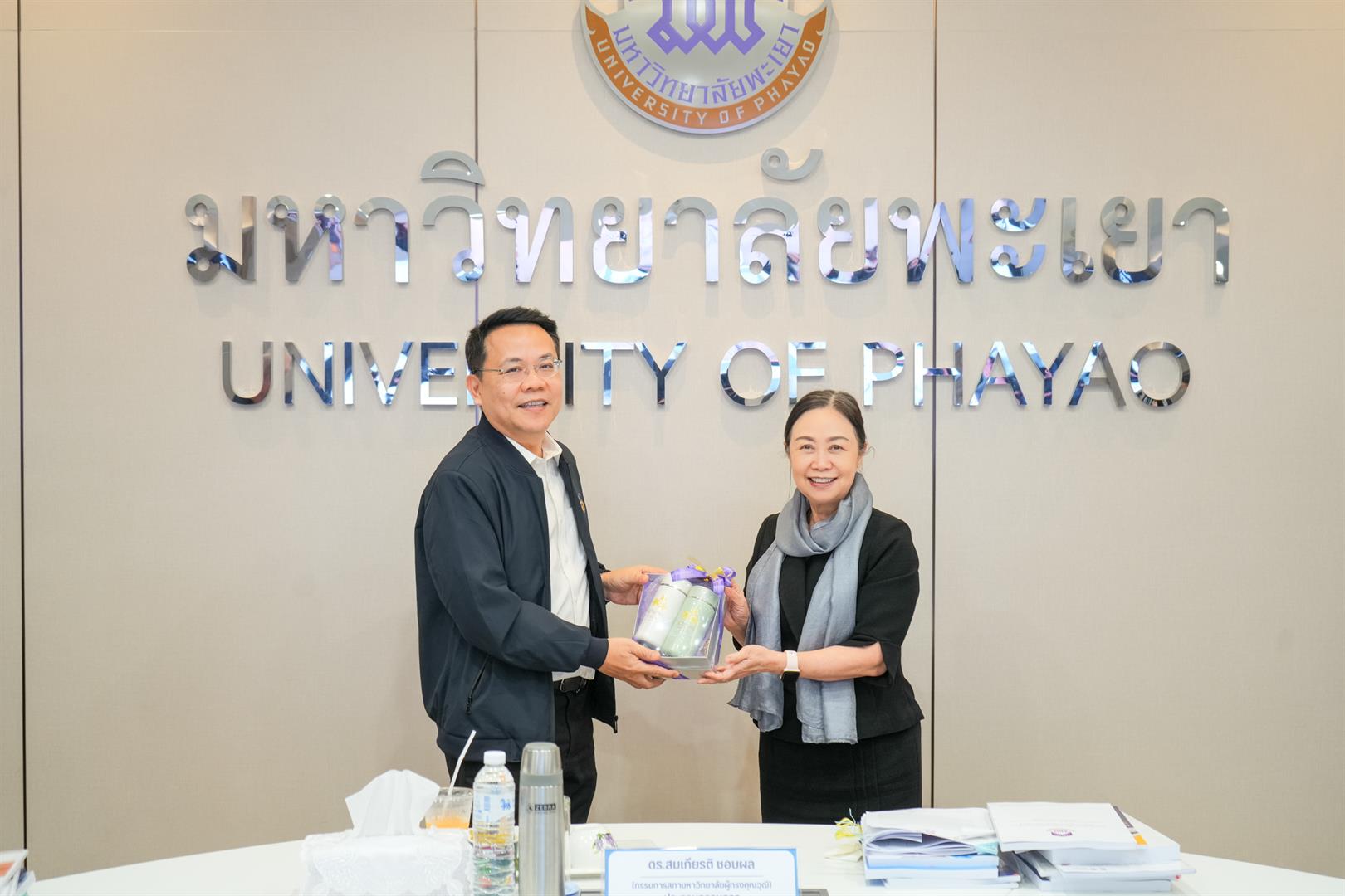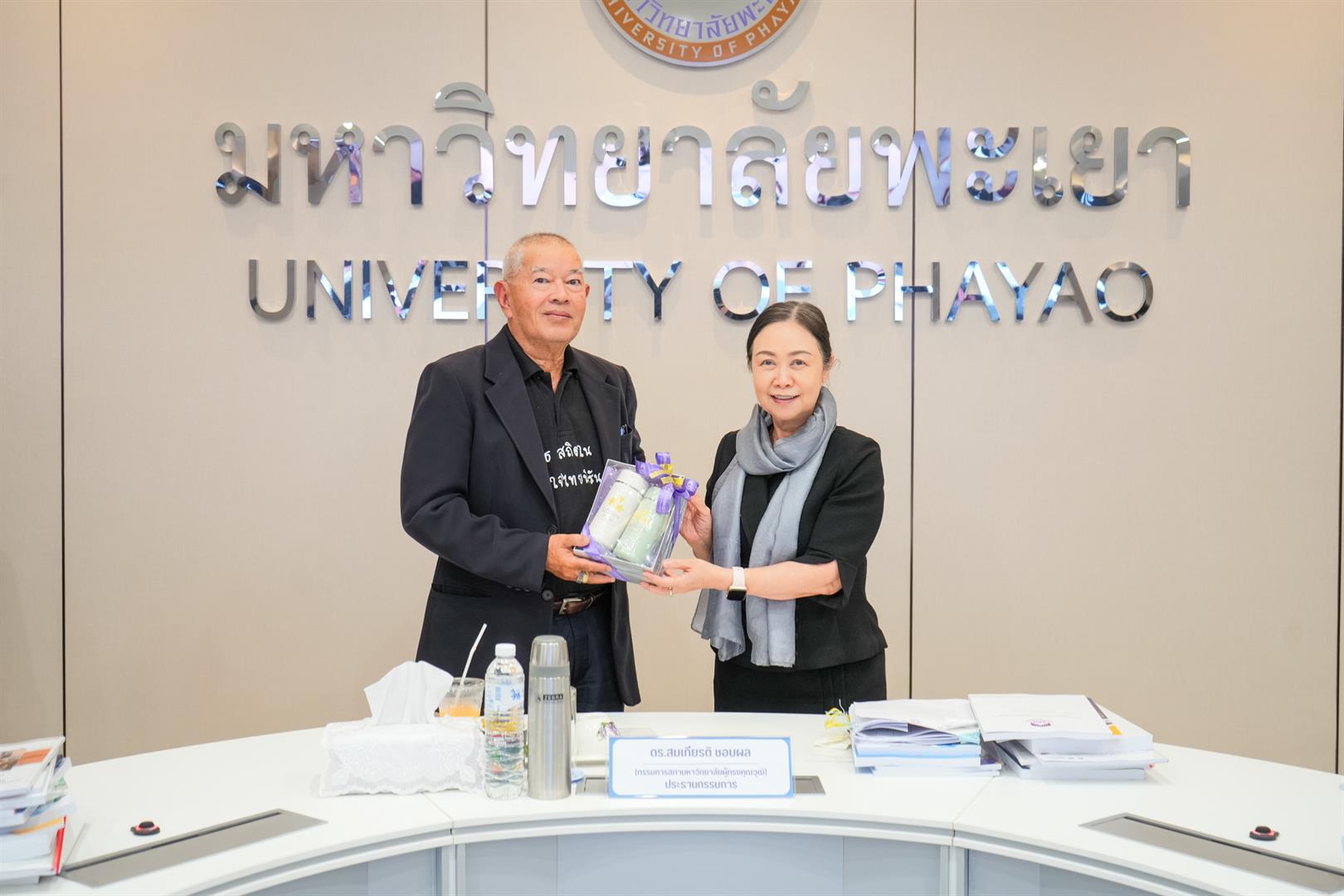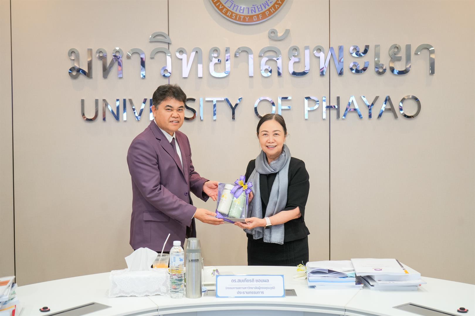 วันพฤหัสบดีที่ 22 มกราคม 2569 รองศาสตราจารย์ ดร.สุภกร พงศบางโพธิ์ อธิการบดีมหาวิทยาลัยพะเยา พร้อมด้วยผู้บริหาร เข้าร่วมการติดตามและประเมินผลการดำเนินงานของหัวหน้าส่วนงาน ประจำปีงบประมาณ 2568 โดยมี ดร.สมเกียรติ ชอบผล อุปนายกสภามหาวิทยาลัยพะเยา เป็นประธานกรรมการ การติดตามและประเมินผลในครั้งนี้ ได้รับเกียรติจากคณะกรรมการติดตามและประเมินผลการดำเนินงานของหัวหน้าส่วนงาน ประกอบด้วยกรรมการสภามหาวิทยาลัยผู้ทรงคุณวุฒิ ผู้ทรงคุณวุฒิจากภายนอกมหาวิทยาลัย อธิการบดีมหาวิทยาลัยพะเยา และประธานสภาพนักงานมหาวิทยาลัยพะเยา จัดขึ้น ณ ห้องประชุมบวร รัตนประสิทธิ์ อาคารสำนักงานอธิการบดี มหาวิทยาลัยพะเยา