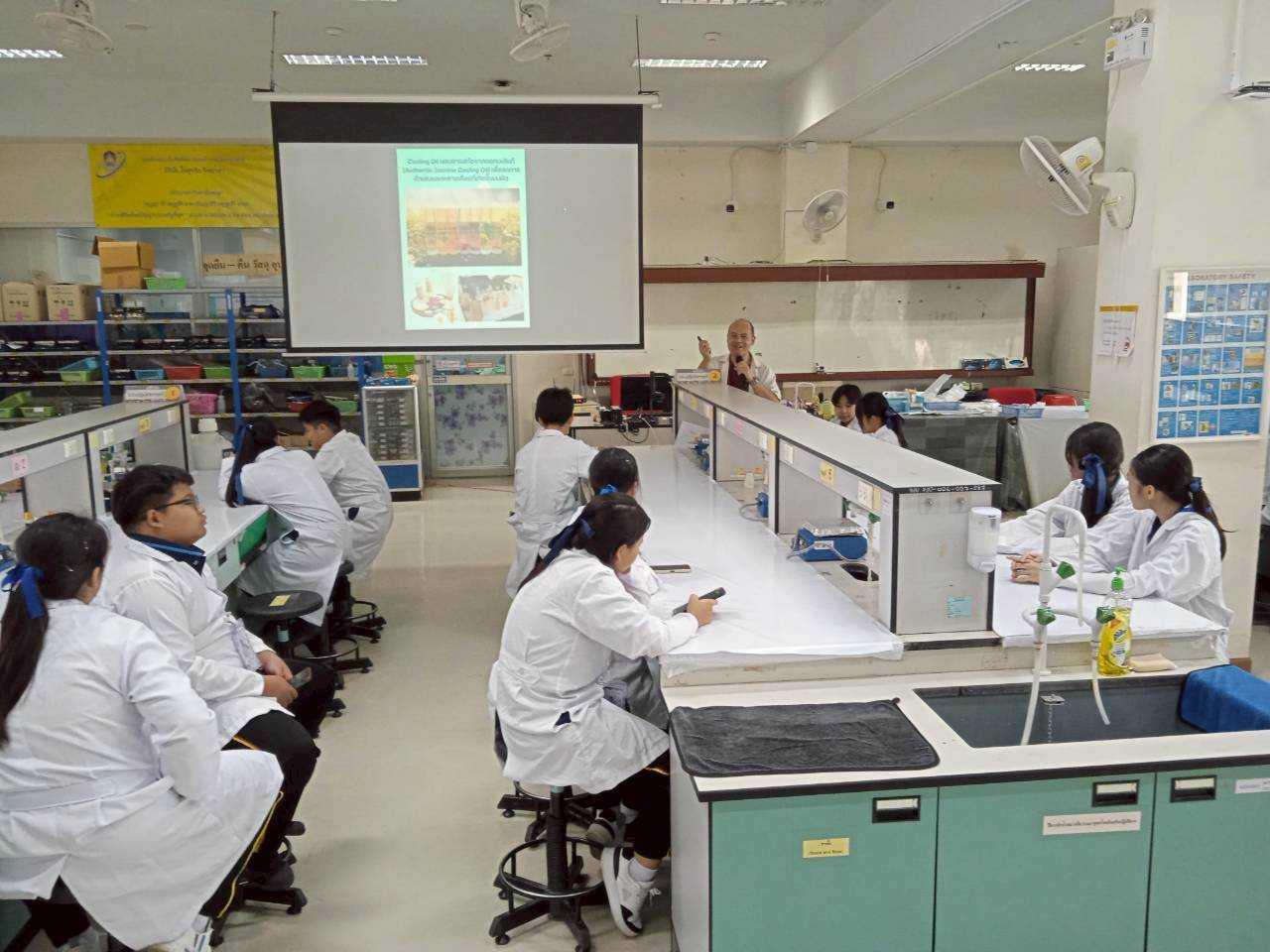 วันเสาร์ที่ 24 มกราคม 2569 คณะวิทยาศาสตร์ดำเนินกิจกรรมบริการวิชาการโรงเรียนประชารัฐธรรมคุณ อำเภองาว จังหวัดลำปาง กิจกรรมปฏิบัติการทางวิทยาศาสตร์ สำหรับนักเรียนห้องเรียนวิทยาศาสตร์พลังสิบ ระดับชั้นมัธยมศึกษาปีที่ 1 ประจำภาคเรียนที่ 2 ปีการศึกษา 2568 จำนวน 34 คน เข้าร่วมกิจกรรมปฏิบัติการทางเคมี “cooling oil ผสมสารสกัดจากดอกมะลิแท้” และกิจกรรมปฏิบัติการทางชีววิทยา “การสังเคราะห์ด้วยแสงเบื้องต้น”