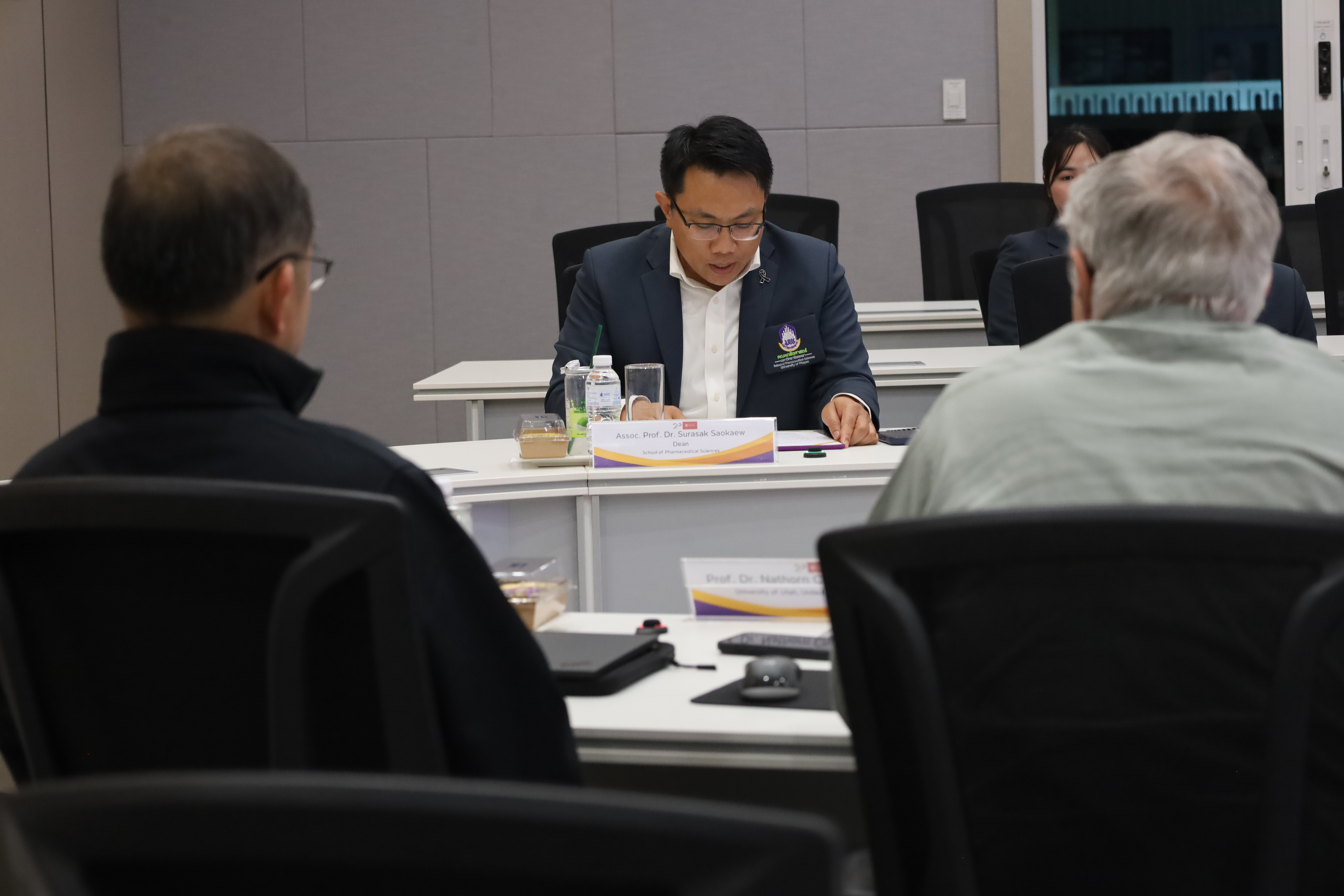 รองศาสตราจารย์ ดร. เภสัชกรสุรศักดิ์ เสาแก้ว คณบดีคณะเภสัชศาสตร์ กล่าวถึงวัตถุประสงค์ของการจัดกิจกรรครั้งนี้ว่า คณะเภสัชศาสตร์ มหาวิทยาลัยพะเยา ได้ดำเนินโครงการแลกเปลี่ยนทางวิชาการ (Academic Exchange Program) ระหว่างวันที่ 24–29 มกราคม 2569 โดยมี Prof. Gary Oderda, Professor Lynda Oderda, Professor Nathorn Chaiyakunapruk พร้อมด้วยนักศึกษาเภสัชศาสตร์จำนวน 9 คน จาก College of Pharmacy, University of Utah เข้าร่วมกิจกรรม เพื่อแลกเปลี่ยนองค์ความรู้ ประสบการณ์ และมุมมองทางวิชาการด้านเภสัชศาสตร์ร่วมกับคณาจารย์และบุคลากรของคณะเภสัชศาสตร์ มหาวิทยาลัยพะเยา ตลอดจนเสริมสร้างเครือข่ายความร่วมมือทางวิชาการกับหน่วยงานภายนอก