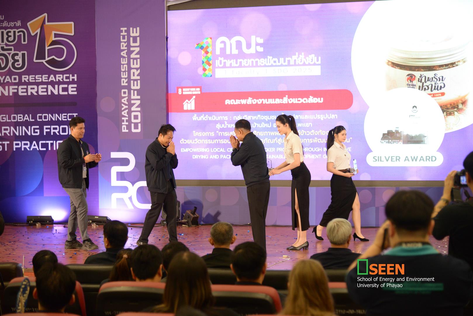 On January 27, 2026, Dr. Poramate Sittisun, a lecturer at the School of Energy and Environment - SEEN, University of Phayao, and head of the project “Enhancing the Capacity of Local Rice Cracker Products through Drying and Packaging Innovations toward the Sustainable Development Goals,” received a Silver Award at the 15th Phayao Research National Academic Conference.
