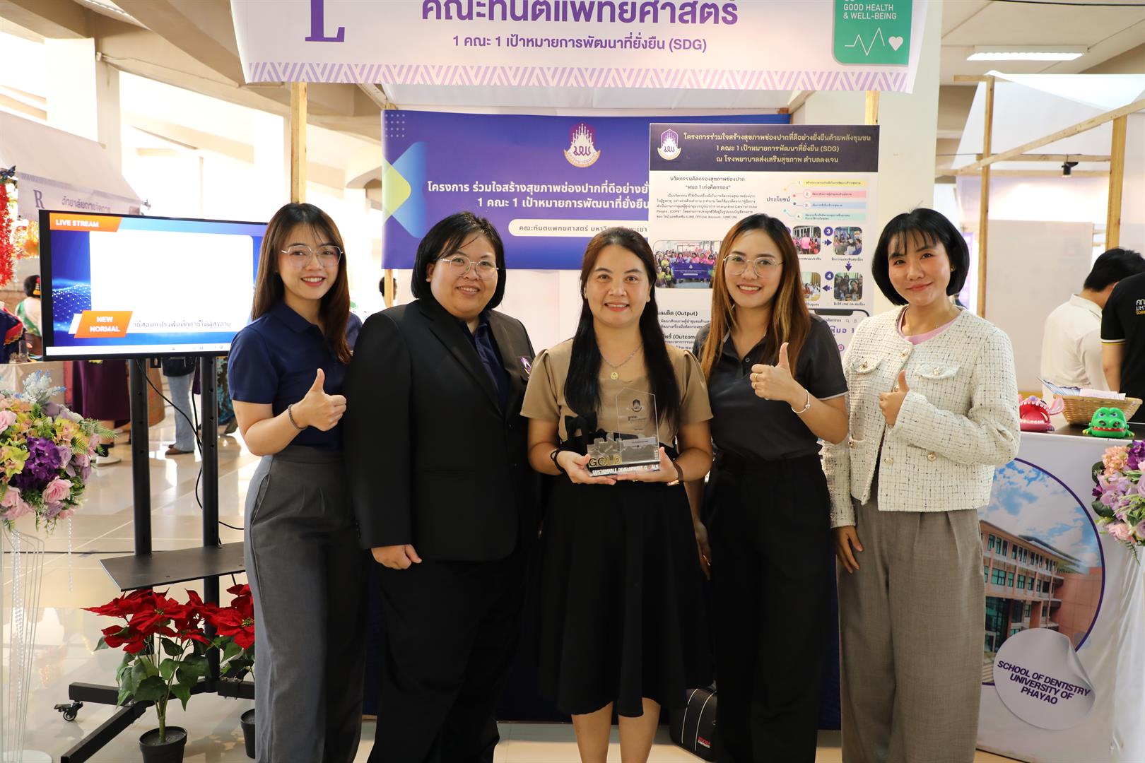 คณะทันตแพทยศาสตร์ มหาวิทยาลัยพะเยา ขอแสดงความยินดีกับความสำเร็จอันน่าภาคภูมิใจ จากการได้รับรางวัลระดับ Gold Award จากการเข้าร่วมกิจกรรมประกวด “นิทรรศการ 1 คณะ 1 SDG” ระหว่างวันที่ 26–27 มกราคม พ.ศ. 2569 ซึ่งสะท้อนถึงศักยภาพด้านวิชาการ การพัฒนางานวิจัยอย่างเป็นระบบ และความเข้มแข็งของการดำเนินงานเชิงบูรณาการของคณะได้อย่างชัดเจน