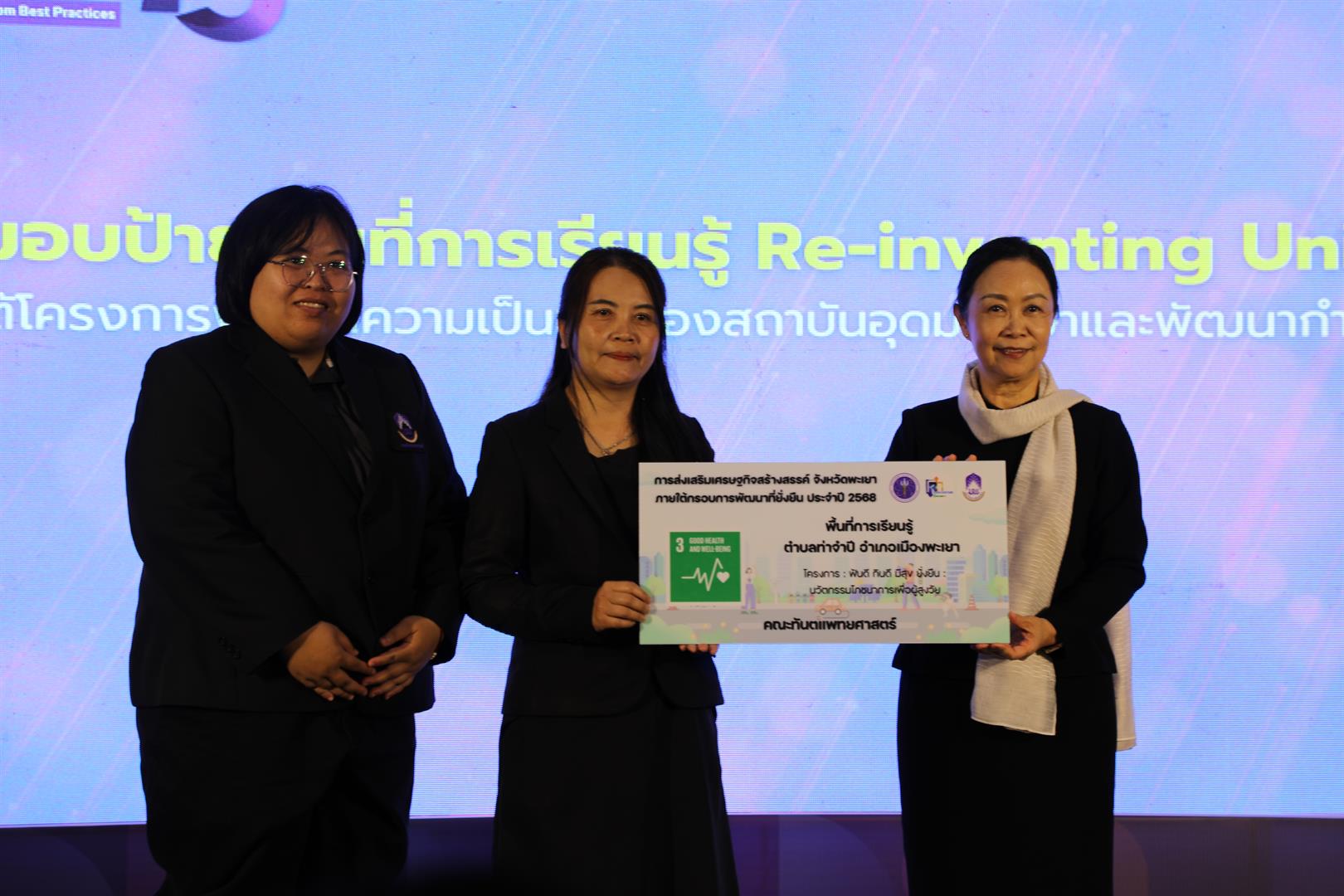 นอกจากนี้ คณะทันตแพทยศาสตร์ยังได้รับมอบป้ายพื้นที่การเรียนรู้ ณ ตำบลท่าจำปี อำเภอเมือง จังหวัดพะเยา ภายใต้โครงการส่งเสริมเศรษฐกิจสร้างสรรค์ จังหวัดพะเยา ตามกรอบการพัฒนาที่ยั่งยืน ประจำปี พ.ศ. 2568 ในชื่อโครงการ “ฟันดี กินดี มีสุข ยั่งยืน นวัตกรรมโภชนาการเพื่อผู้สูงวัย” ซึ่งดำเนินการในพื้นที่โรงเรียนผู้สูงอายุตำบลท่าจำปี สะท้อนถึงบทบาทของมหาวิทยาลัยในการขยายพื้นที่การเรียนรู้ตลอดชีวิต และการยกระดับคุณภาพชีวิตของประชาชนในทุกช่วงวัย