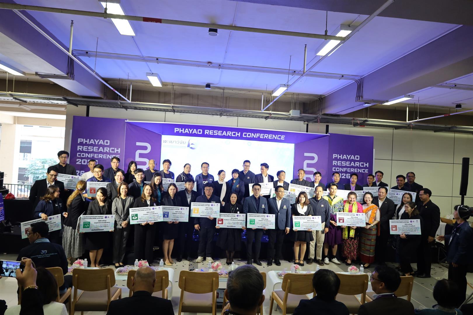 วันอังคารที่ 27 มกราคม 2569 มหาวิทยาลัยพะเยา จัดการประชุมวิชาการระดับชาติ “พะเยาวิจัย ครั้งที่ 15” ภายใต้หัวข้อ “SDG Global Connect : Learning from Best Practices” โดย ศาสตราจารย์พิเศษ อรรถพล ใหญ่สว่าง นายกสภามหาวิทยาลัยพะเยา เป็นประธานในพิธีเปิด และ รองศาสตราจารย์ ดร.สุภกร พงศบางโพธิ์ อธิการบดีมหาวิทยาลัยพะเยา กล่าวรายงานวัตถุประสงค์การจัดงาน ณ ห้อง UB002 อาคาร 99 ปี พระอุบาลีคุณูปมาจารย์ (ปวง ธมฺมปญฺโญ) มหาวิทยาลัยพะเยา