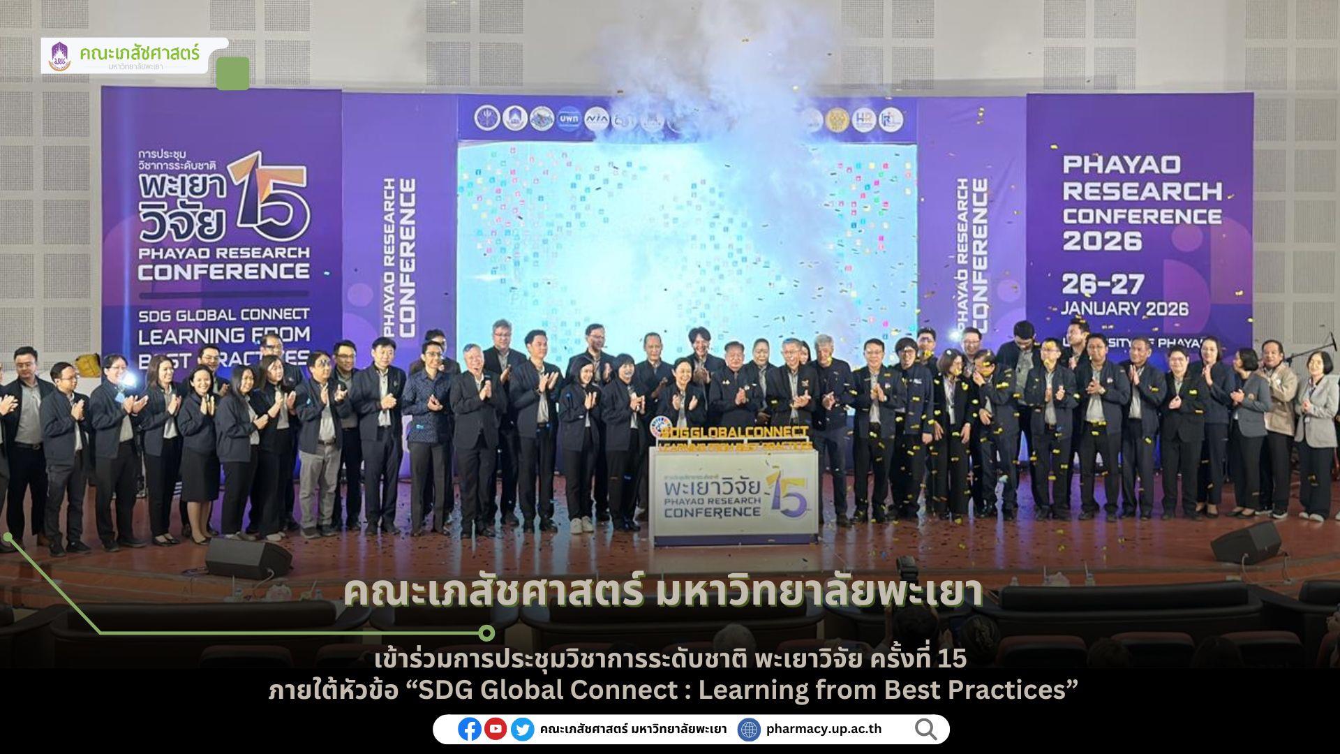 คณะเภสัชศาสตร์ เข้าร่วมการประชุมวิชาการระดับชาติ พะเยาวิจัย ครั้งที่ 15 ภายใต้หัวข้อ “SDG Global Connect : Learning from Best Practices”ระหว่างวันที่ 26-27 มกราคม 2569 ณ อาคาร 99 ปี พระอุบาลีคุณูปมาจารย์ มหาวิทยาลัยพะเยา